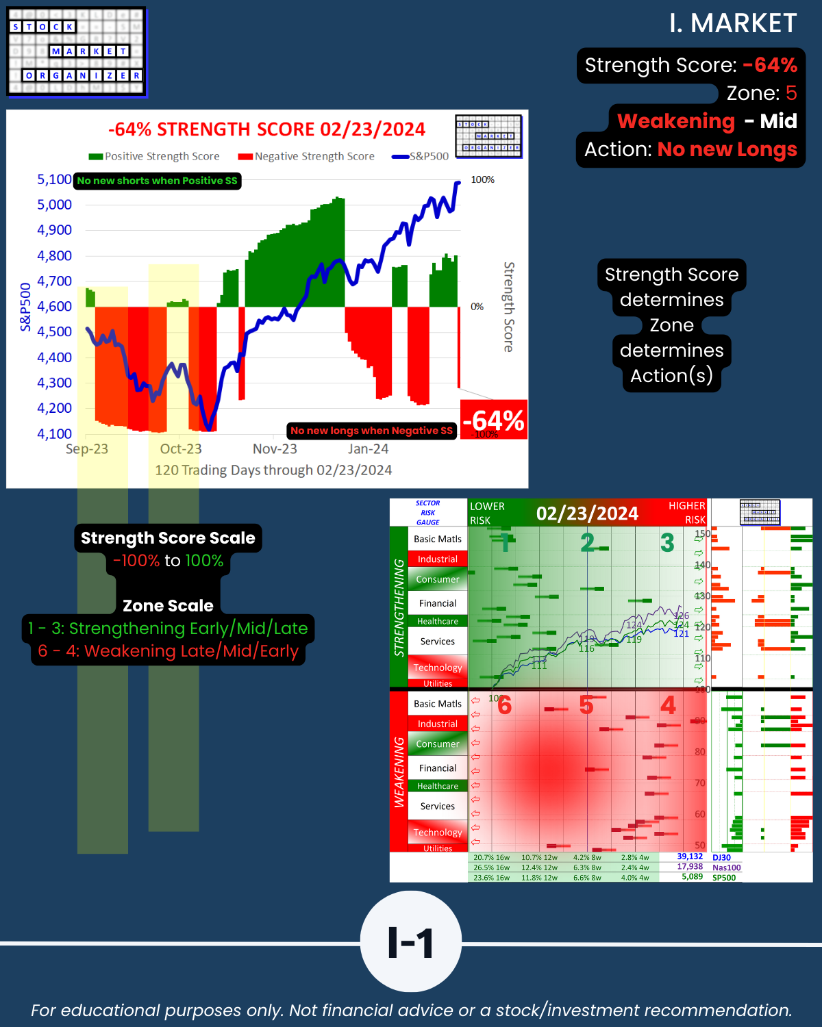 Want to QUICKLY understand the current market status 2/23/24? See attached. Short but meaningful (NVDA earnings) week led to a change in environment – NO NEW LONGS because as of today 2/23/24 the Market Strength Score has changed to negative at -64%.