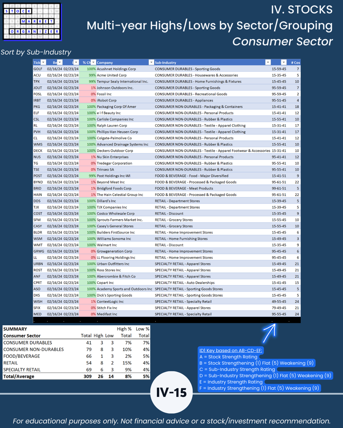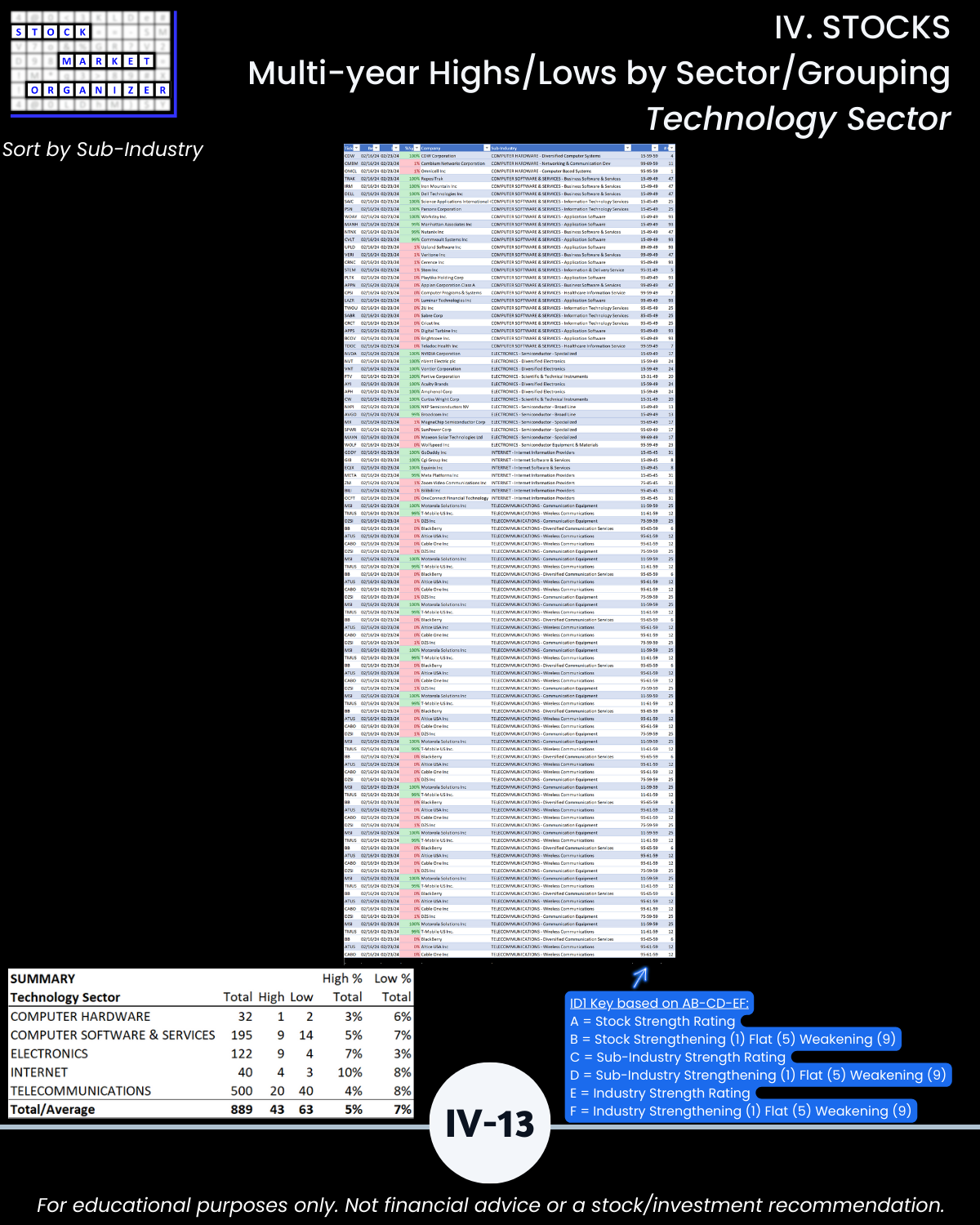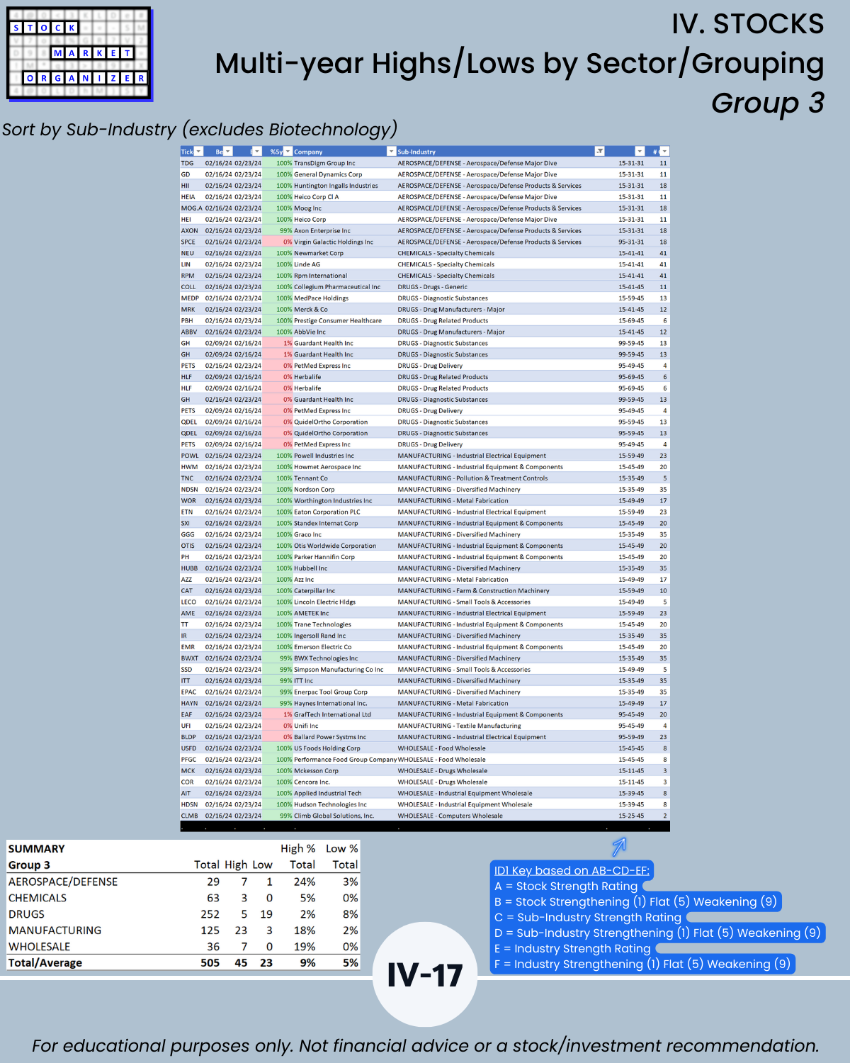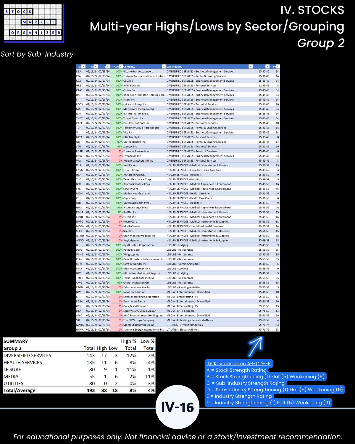 🔹 What stocks are at multi-year highs/lows, and how strong/weak are their sub-industries and industries?