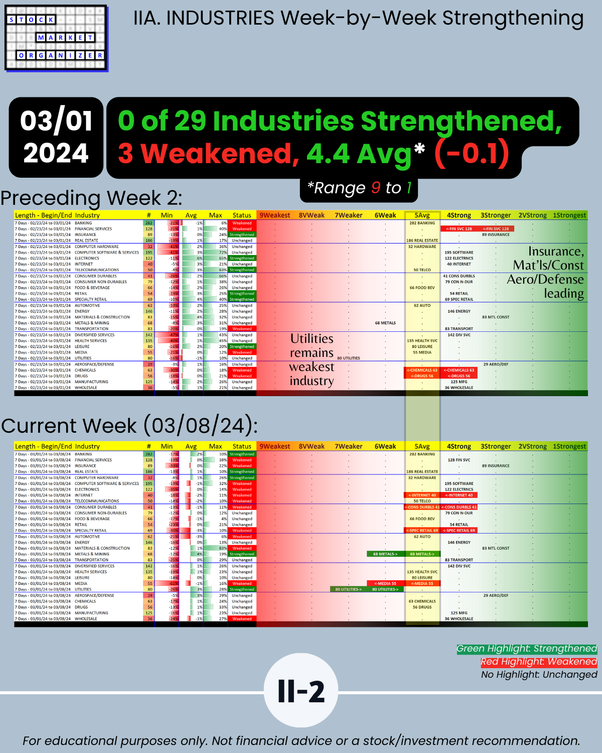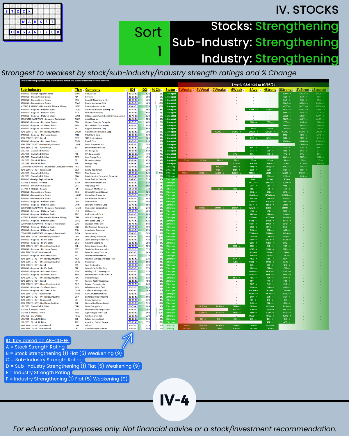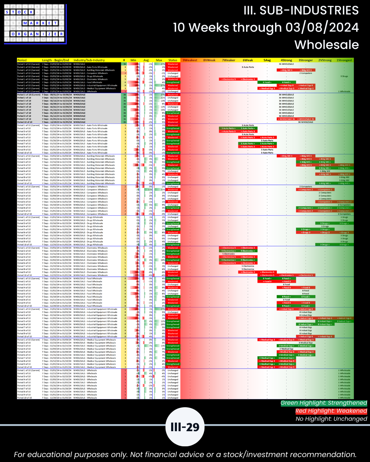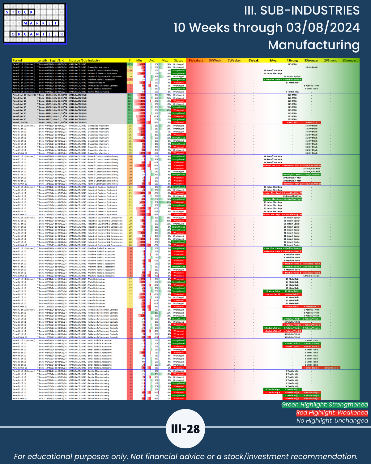 The detail underlying Section II. Meaningfully compare relative and absolute strength amongst/between all the 198 sub-industries, and clearly see how this comparative strength is changing. Know where to look, why, and when, depending on if you are looking for strengthening or weakening.