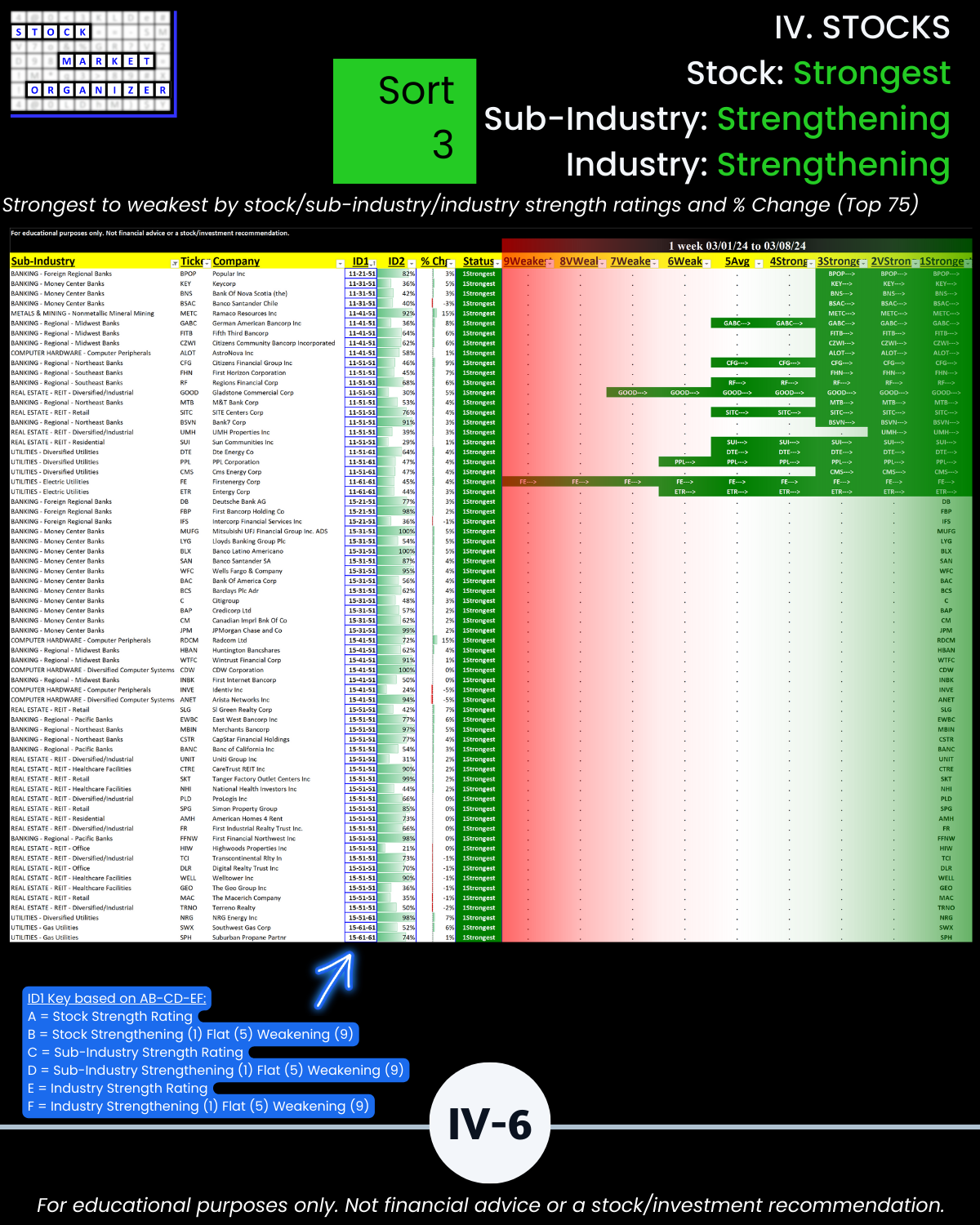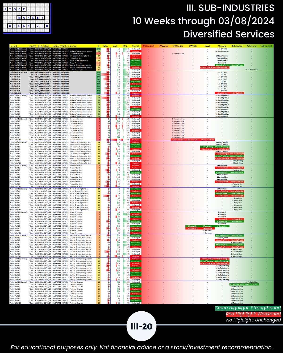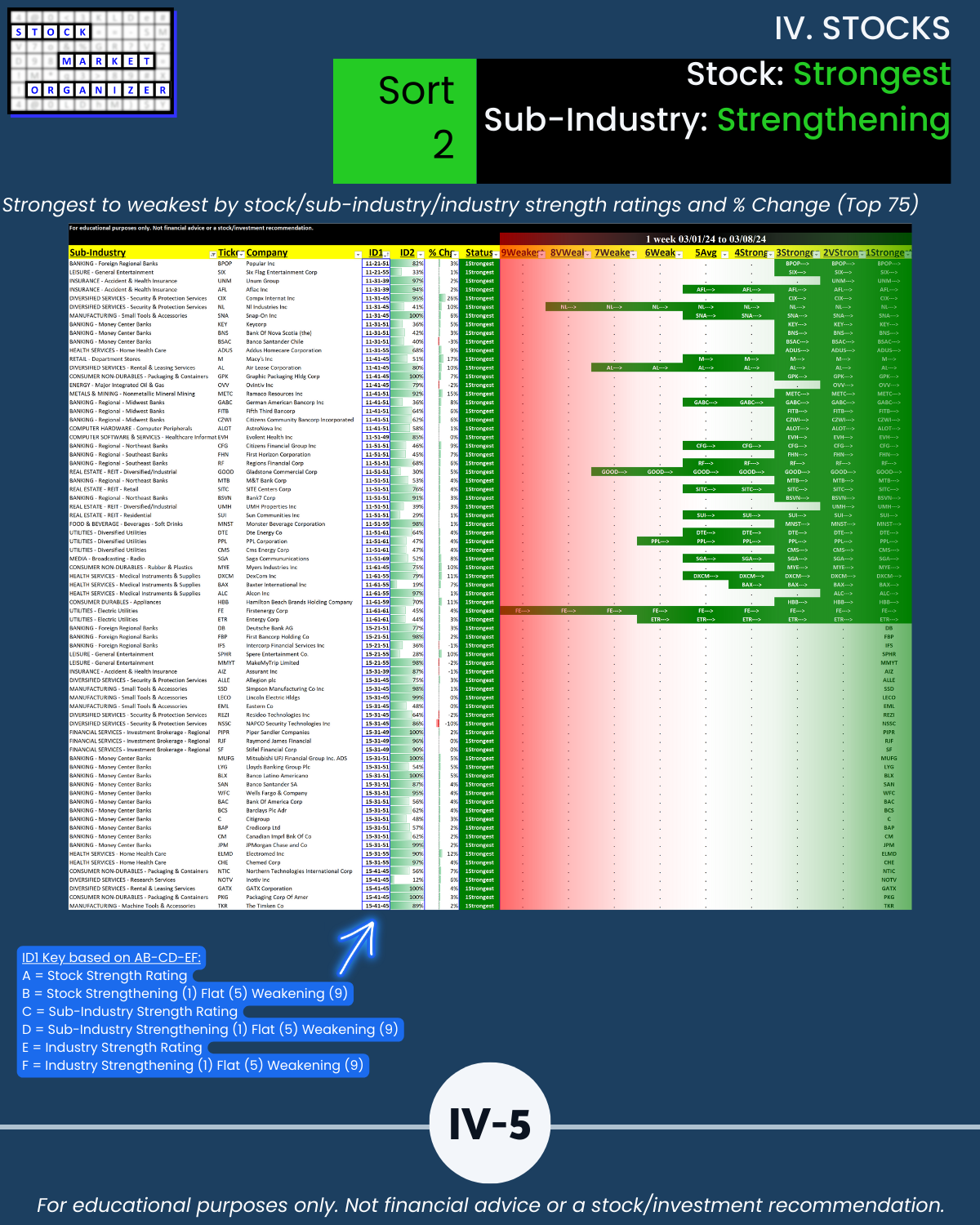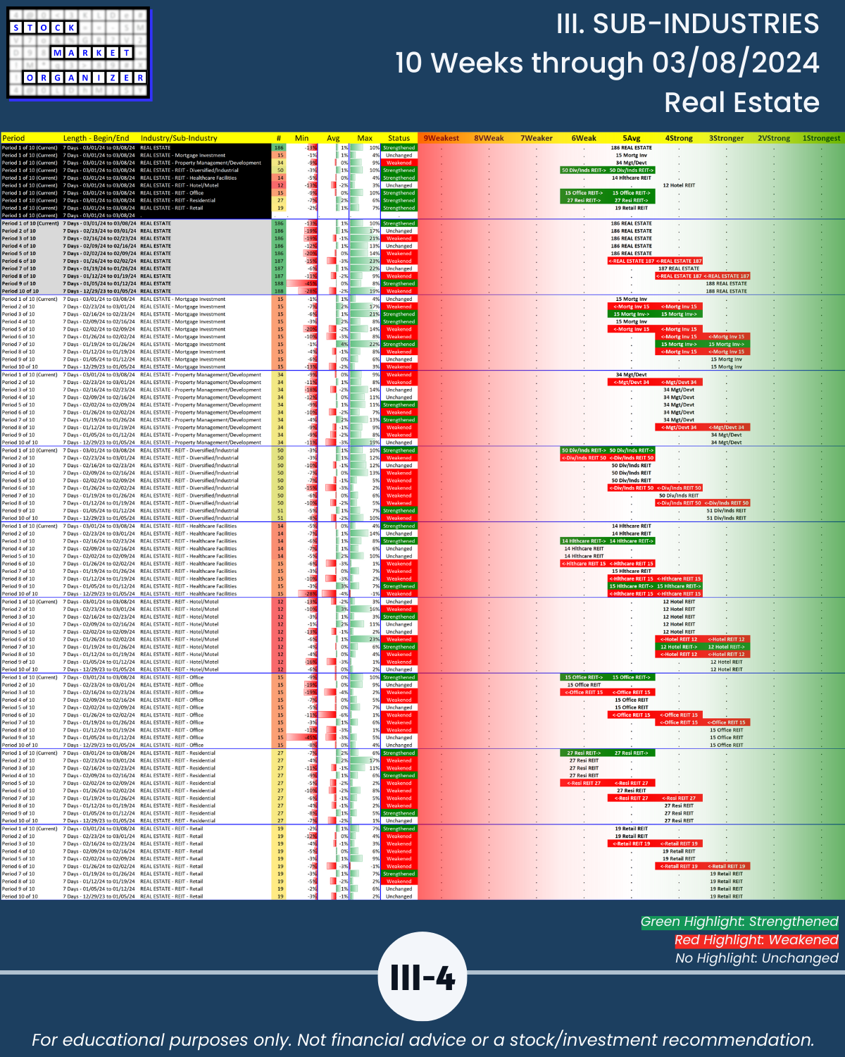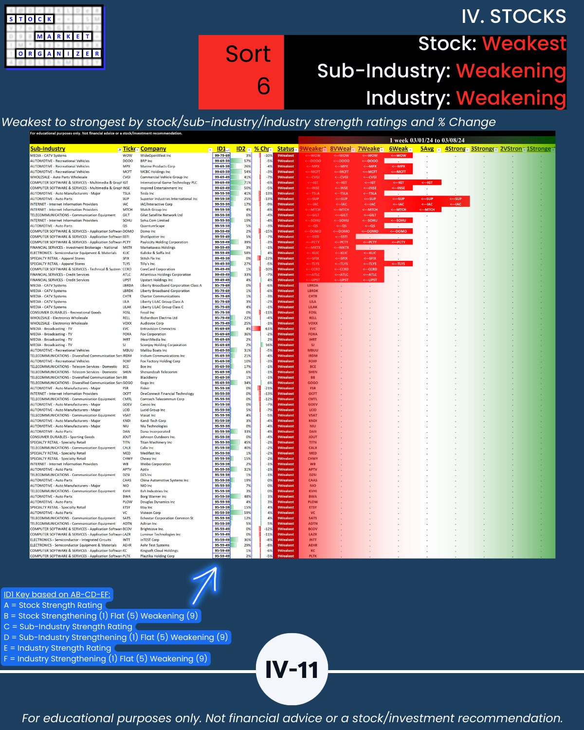The detail underlying Section II. Meaningfully compare relative and absolute strength amongst/between all the 198 sub-industries, and clearly see how this comparative strength is changing. Know where to look, why, and when, depending on if you are looking for strengthening or weakening.