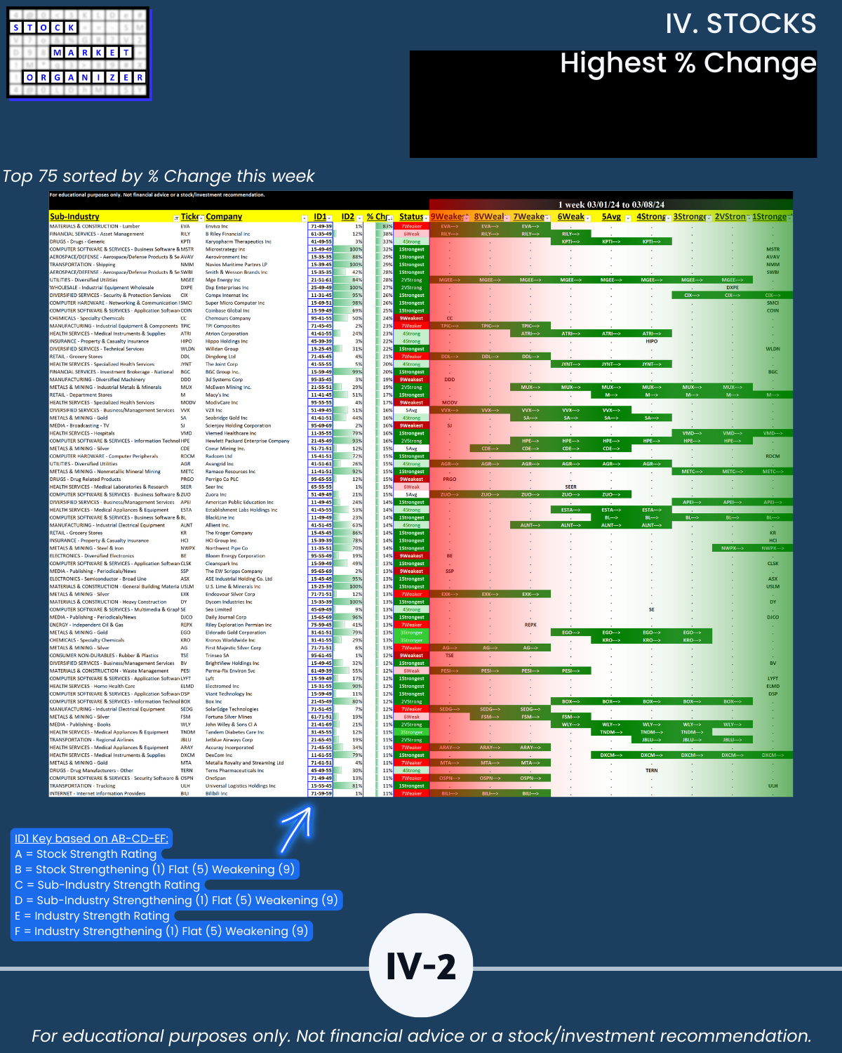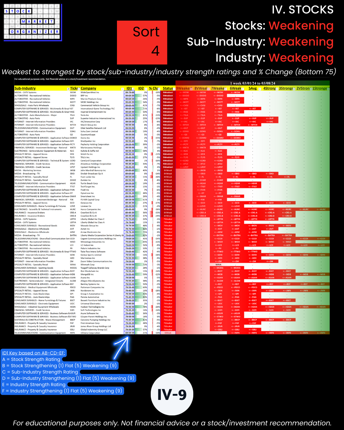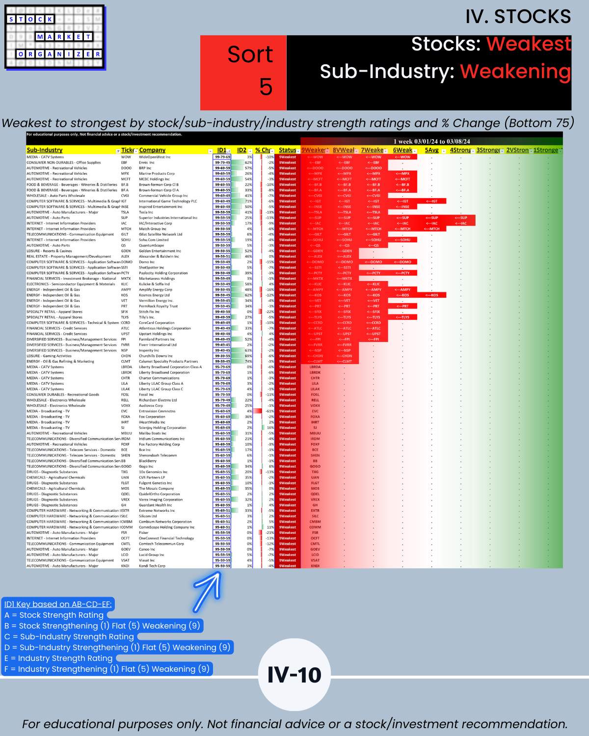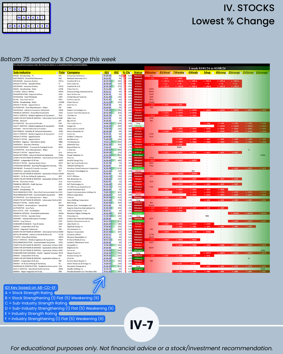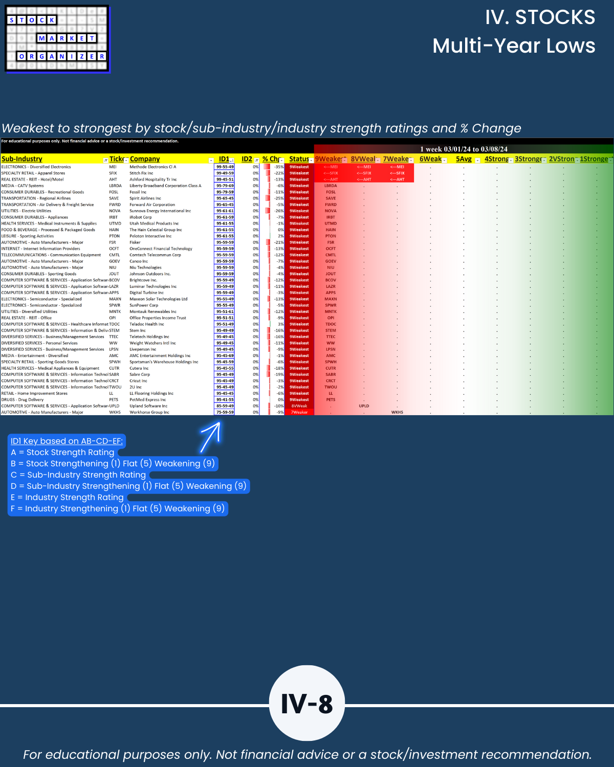 The detail underlying Section II. Meaningfully compare relative and absolute strength amongst/between all the 198 sub-industries, and clearly see how this comparative strength is changing. Know where to look, why, and when, depending on if you are looking for strengthening or weakening.