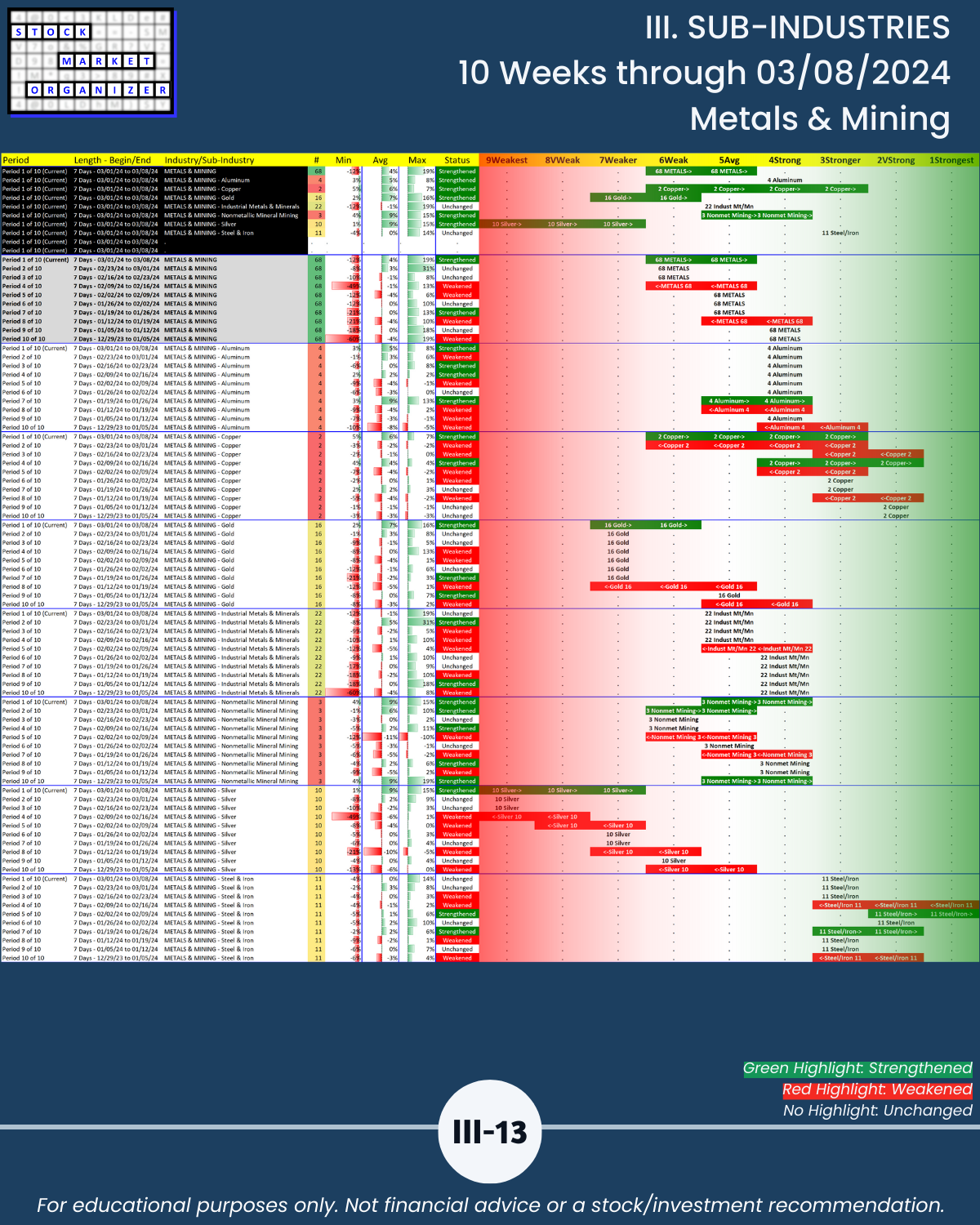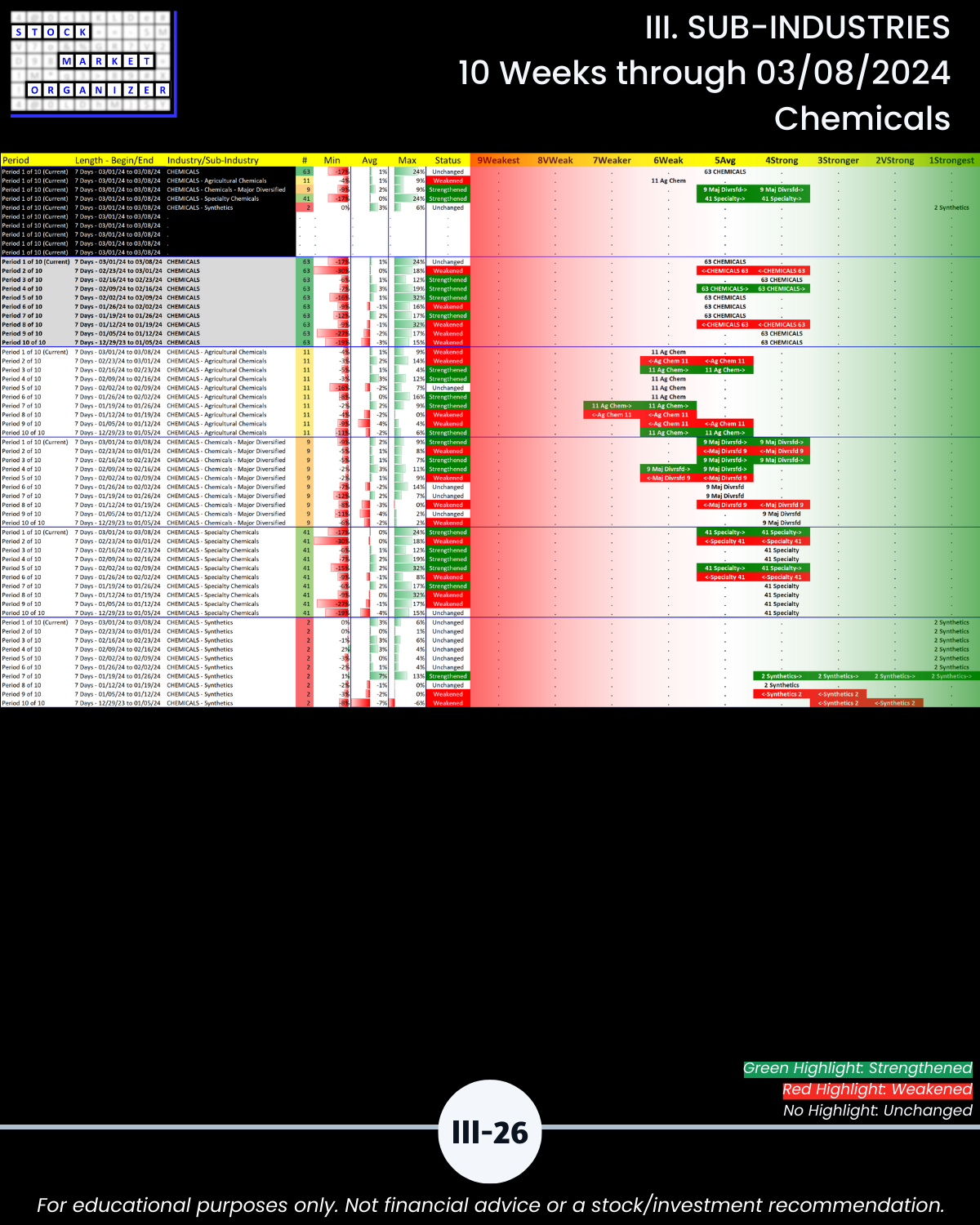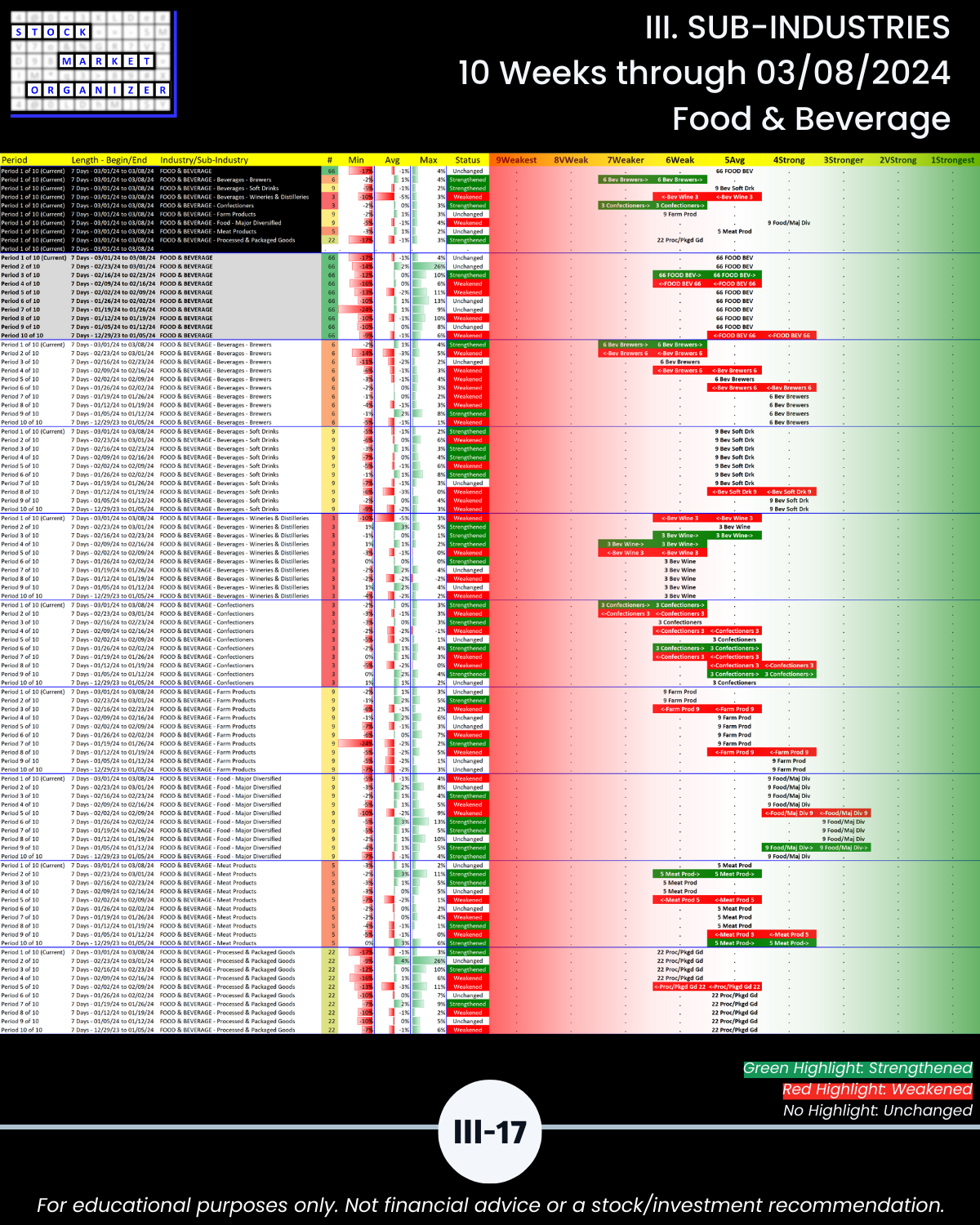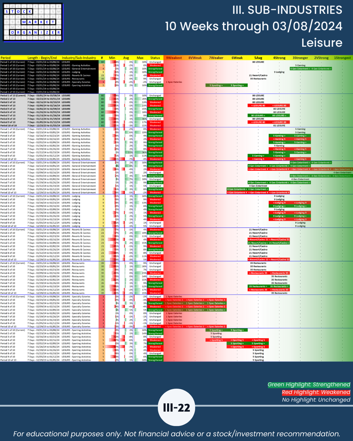 III. SUB-INDUSTRIES/10-Week Individual Sub-Industry Strength Reports