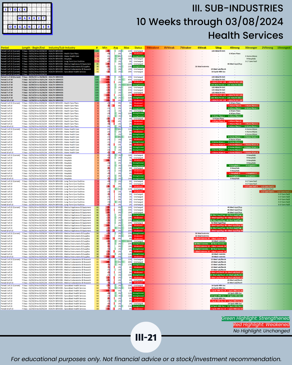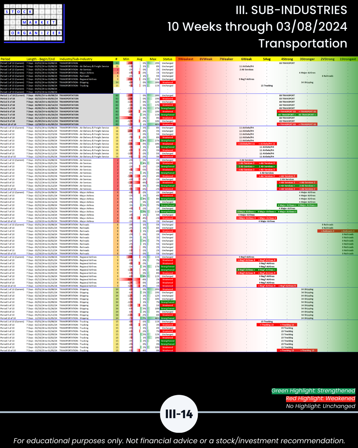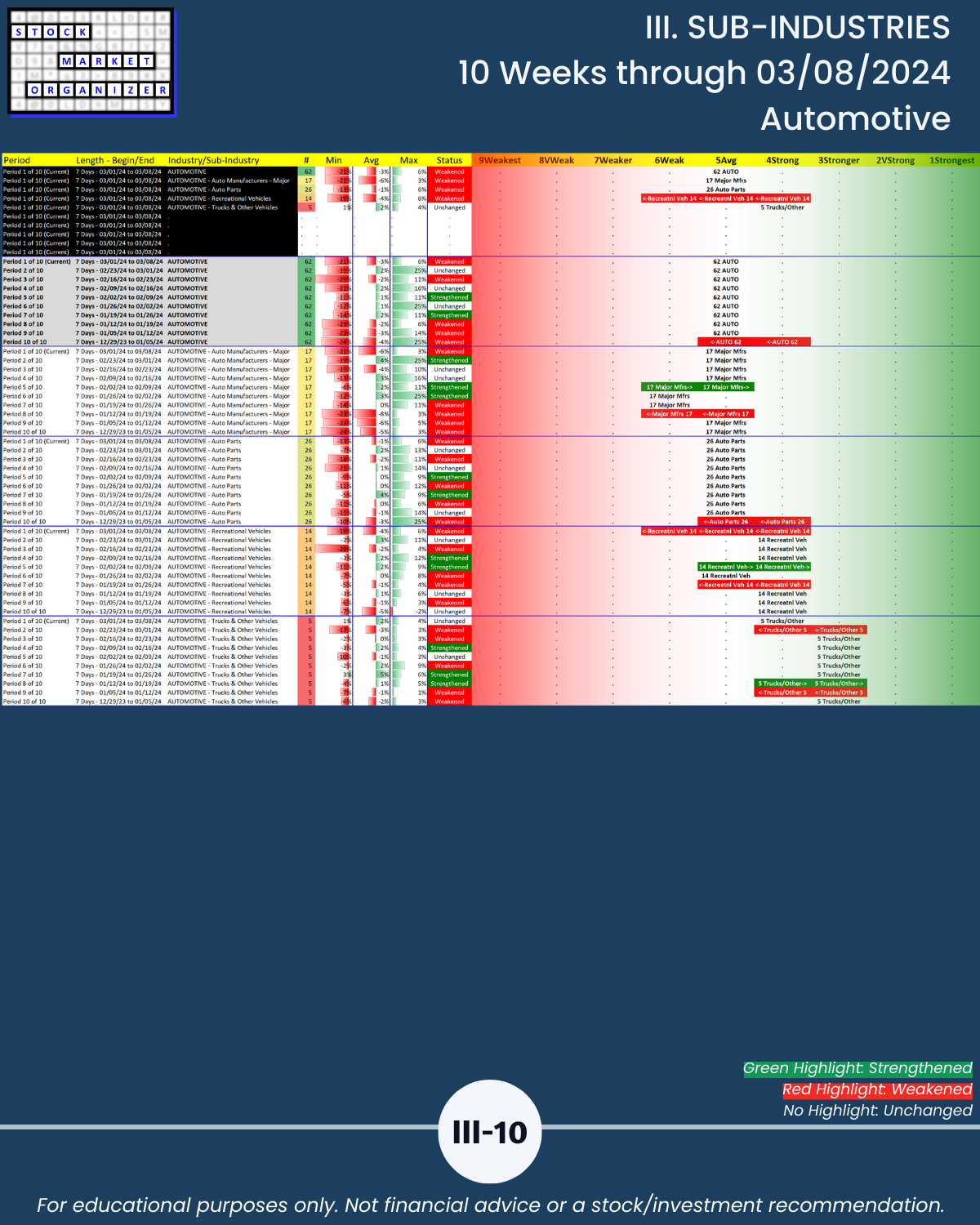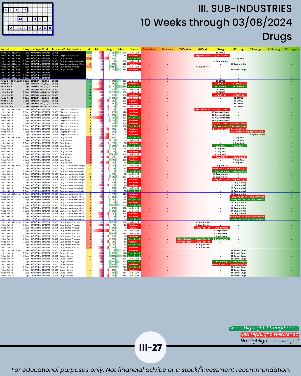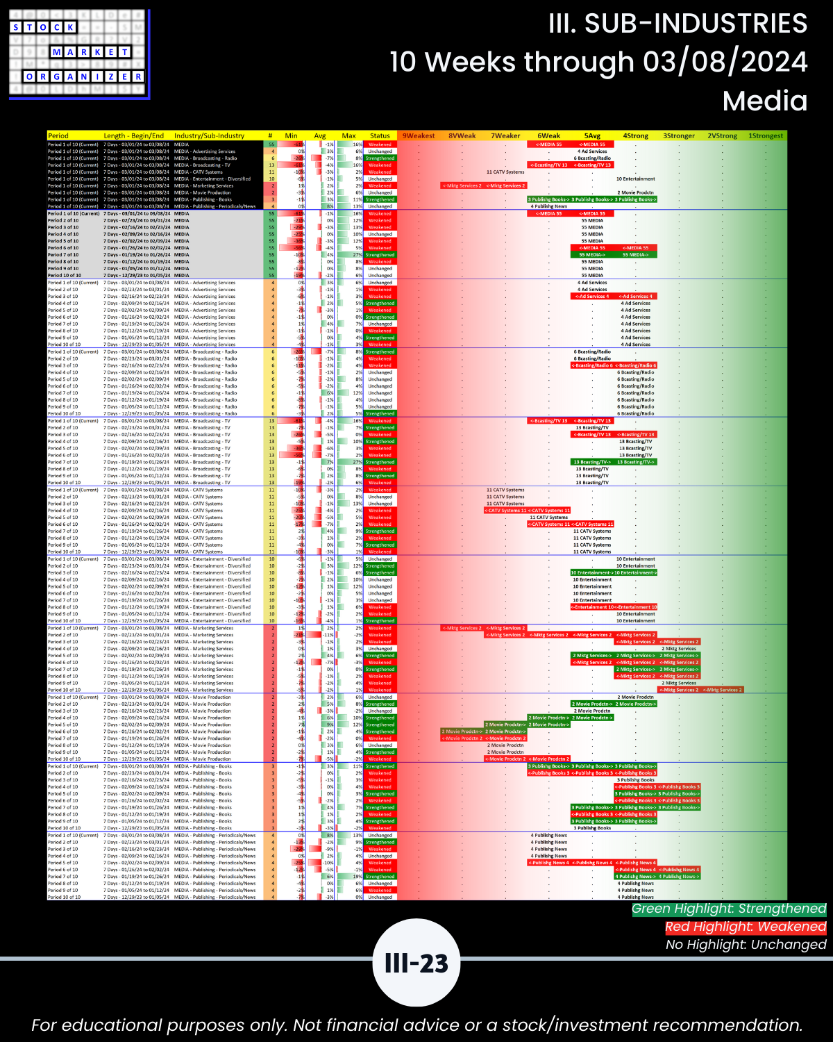 III. SUB-INDUSTRIES/10-Week Individual Sub-Industry Strength Reports