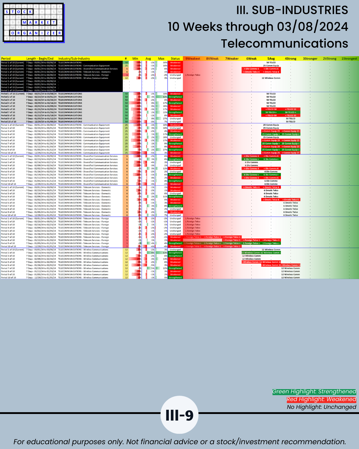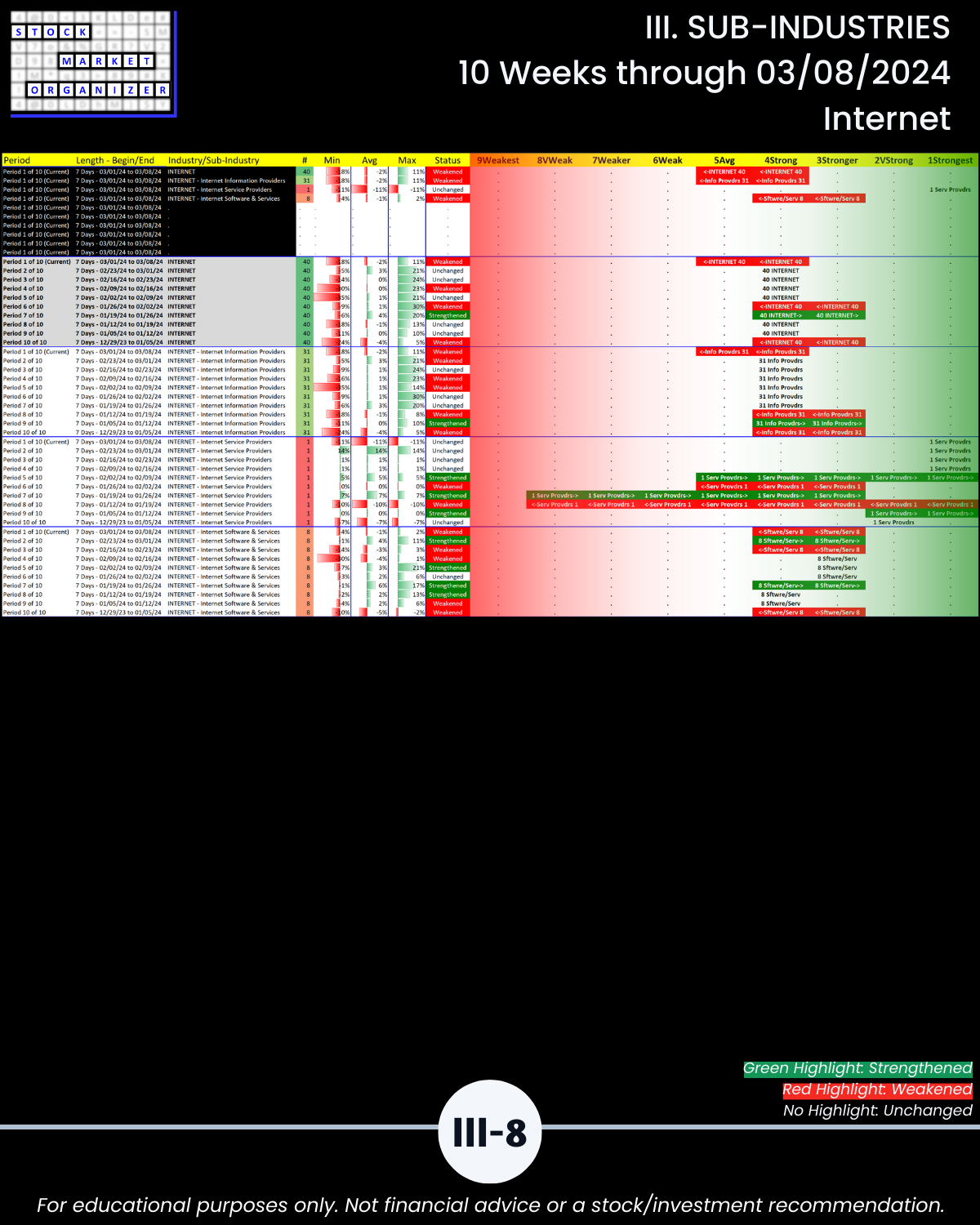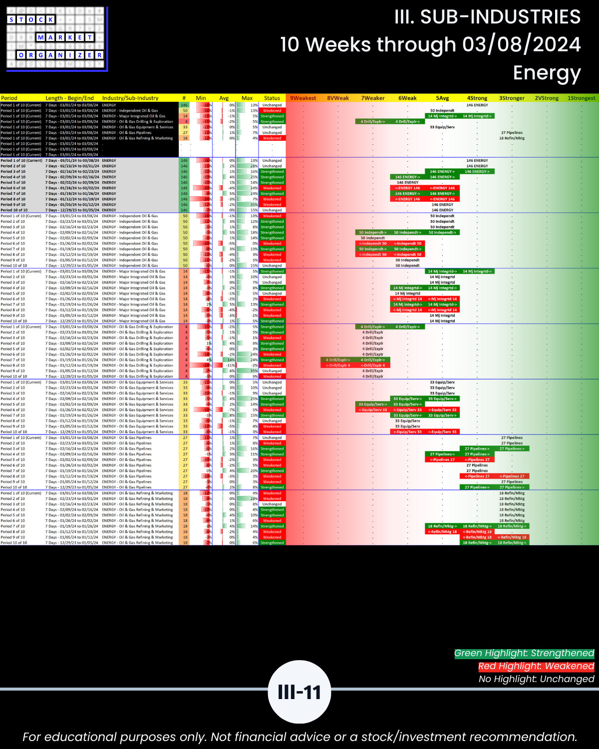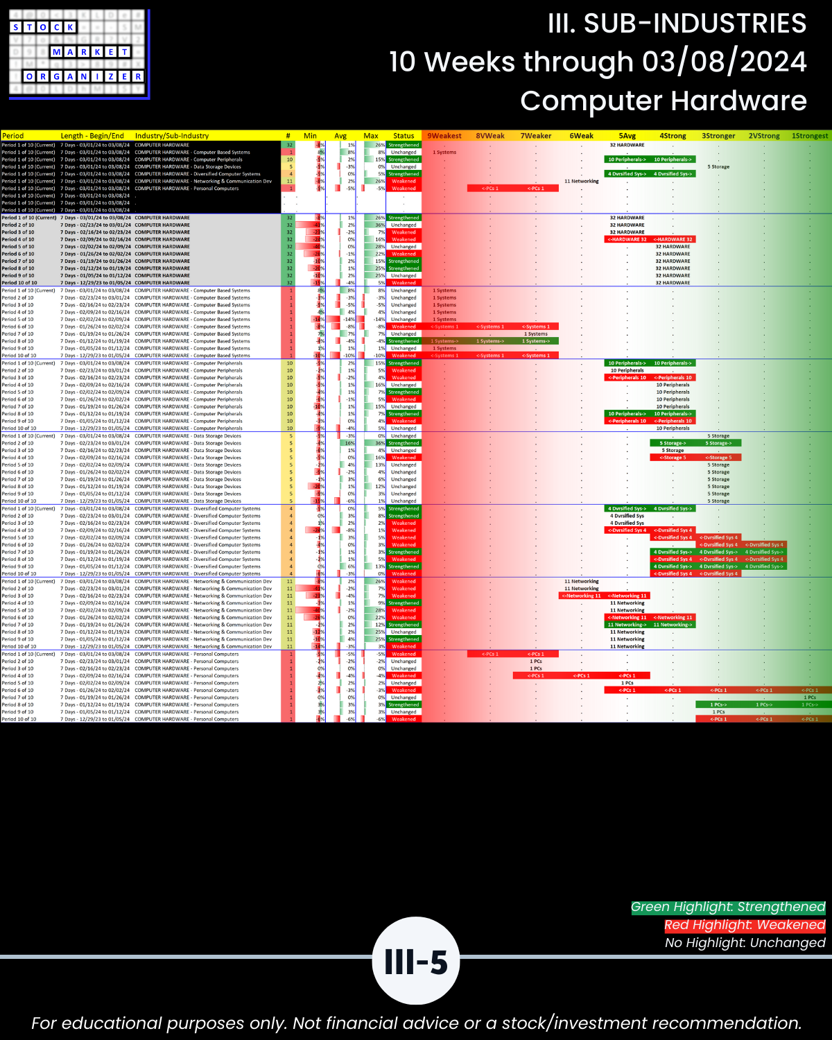 III. SUB-INDUSTRIES/10-Week Individual Sub-Industry Strength Reports