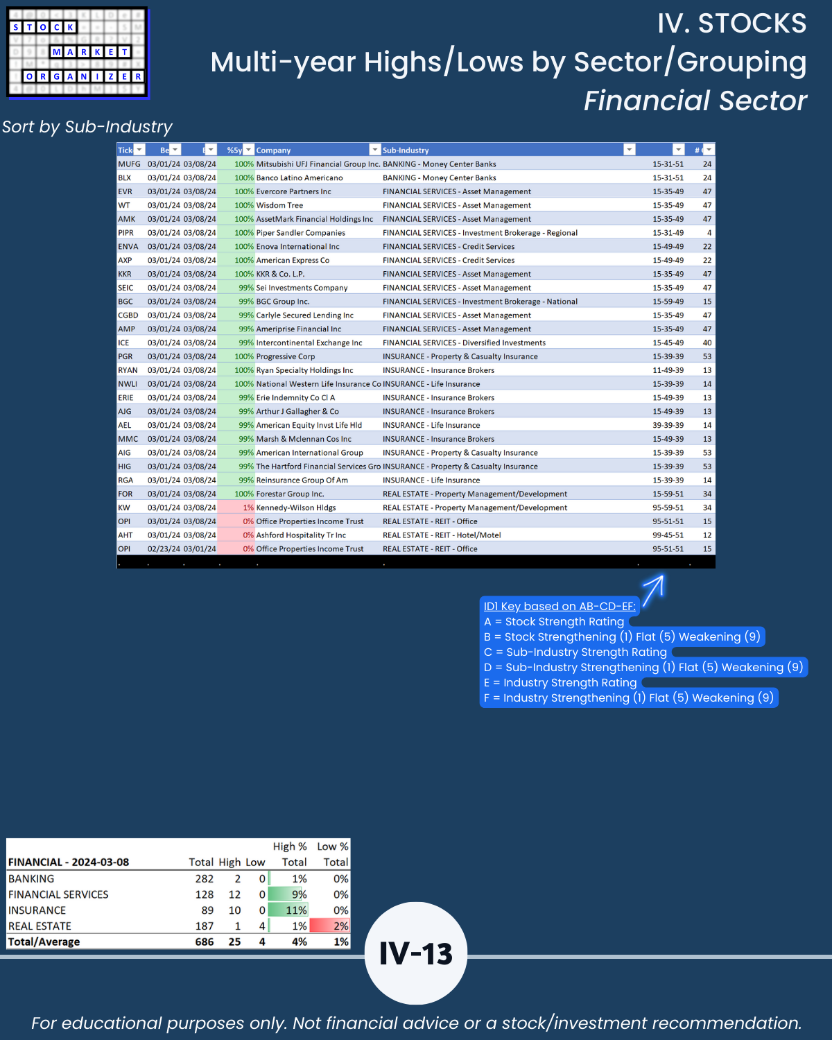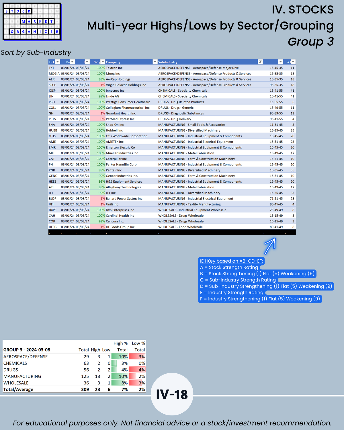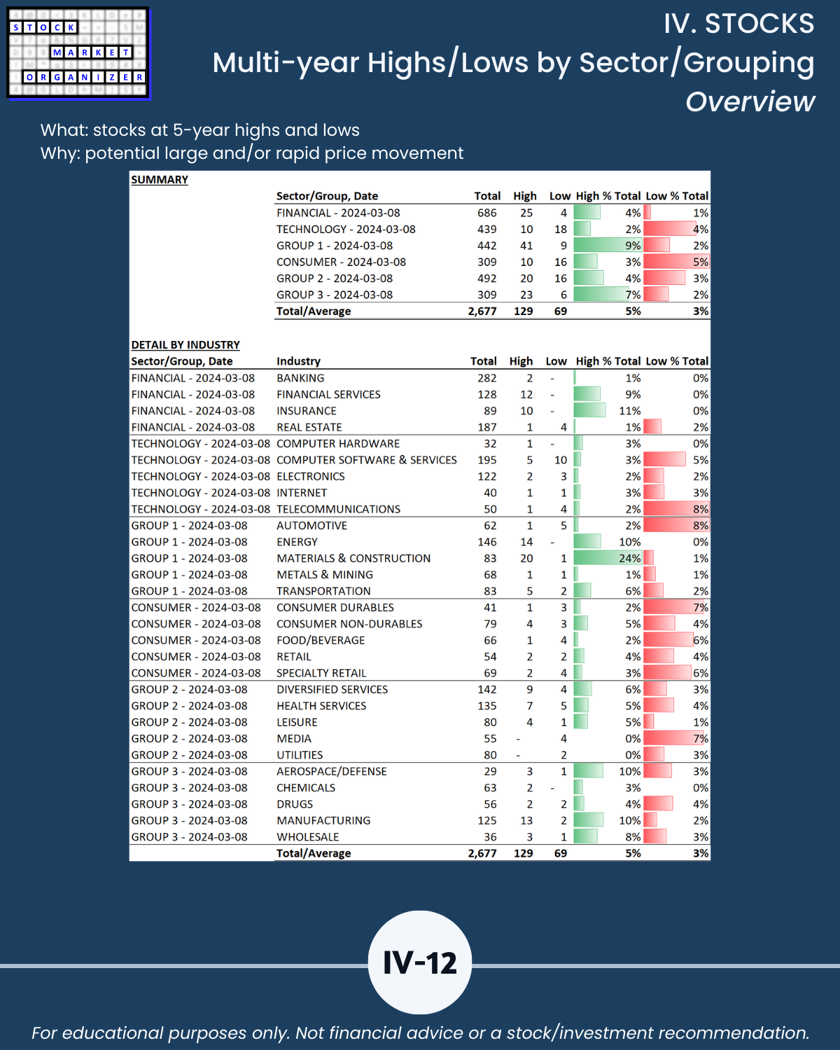 IV. STOCKS/Stock Sorts, Multi-Year Highs/Lows by Sector/Grouping