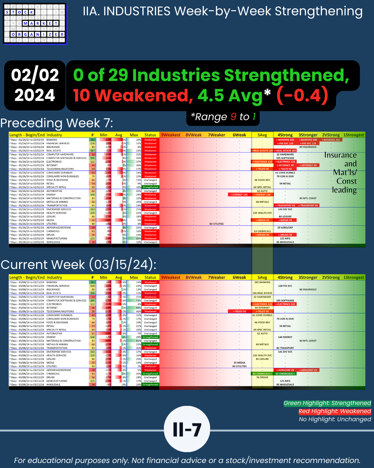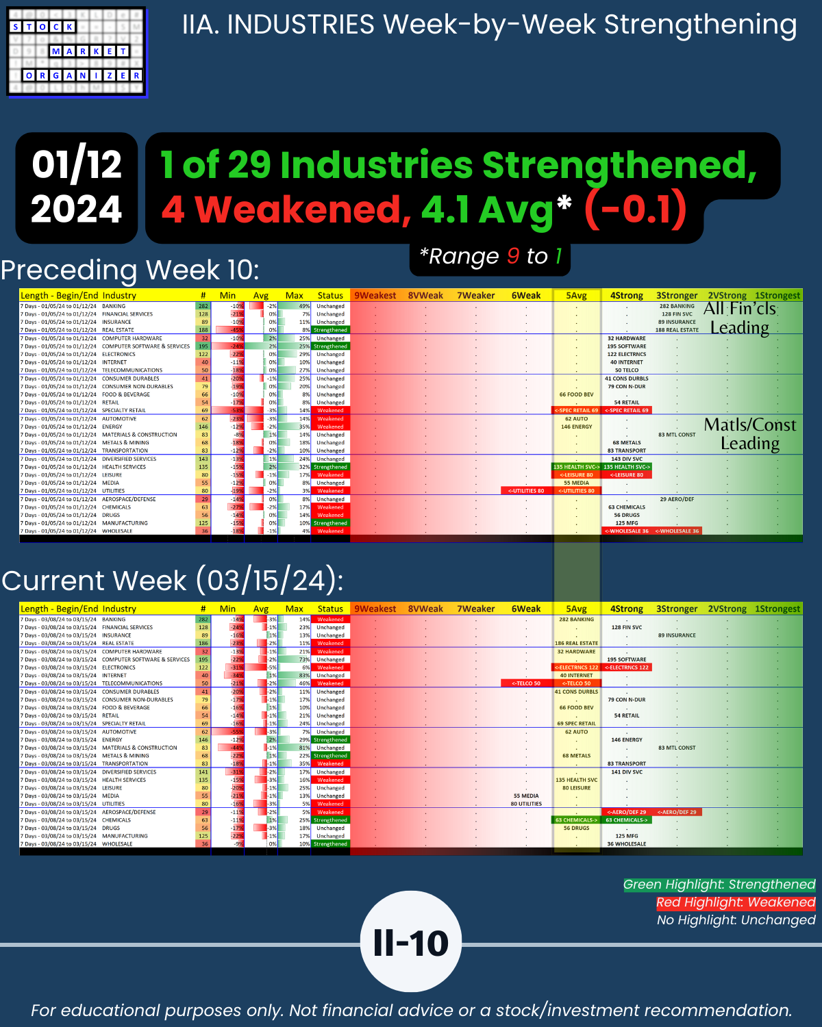IIA. INDUSTRIES/10-Week Week-by-Week Industry Strength
