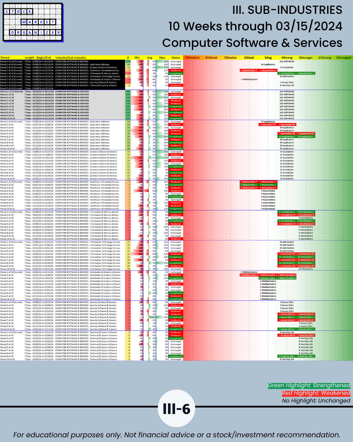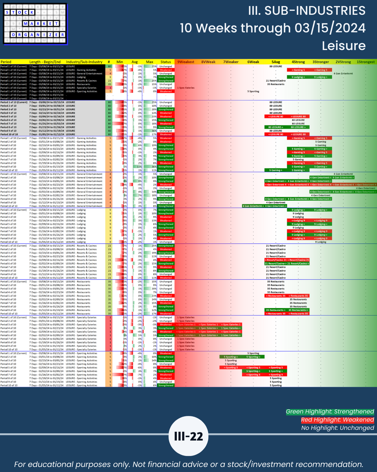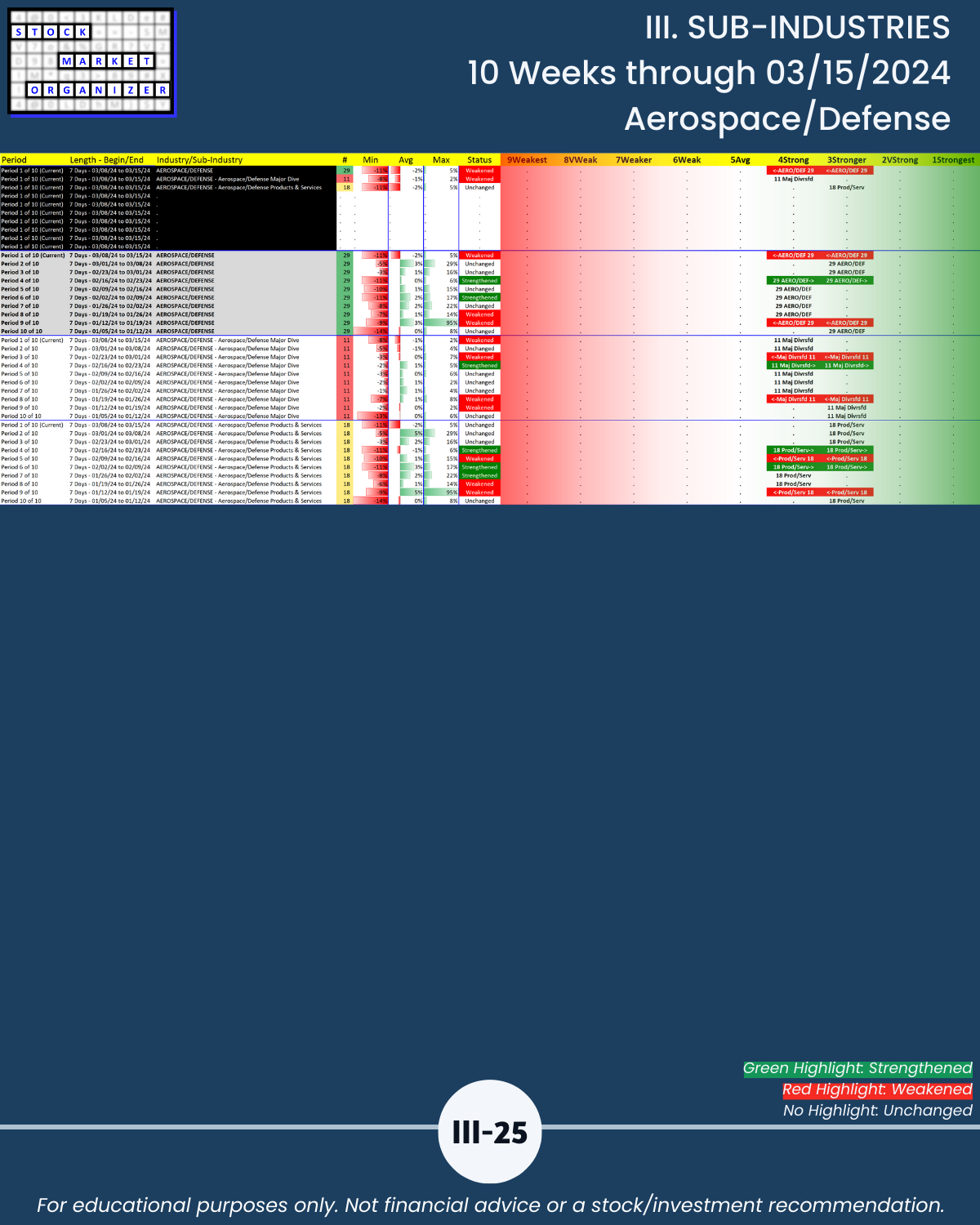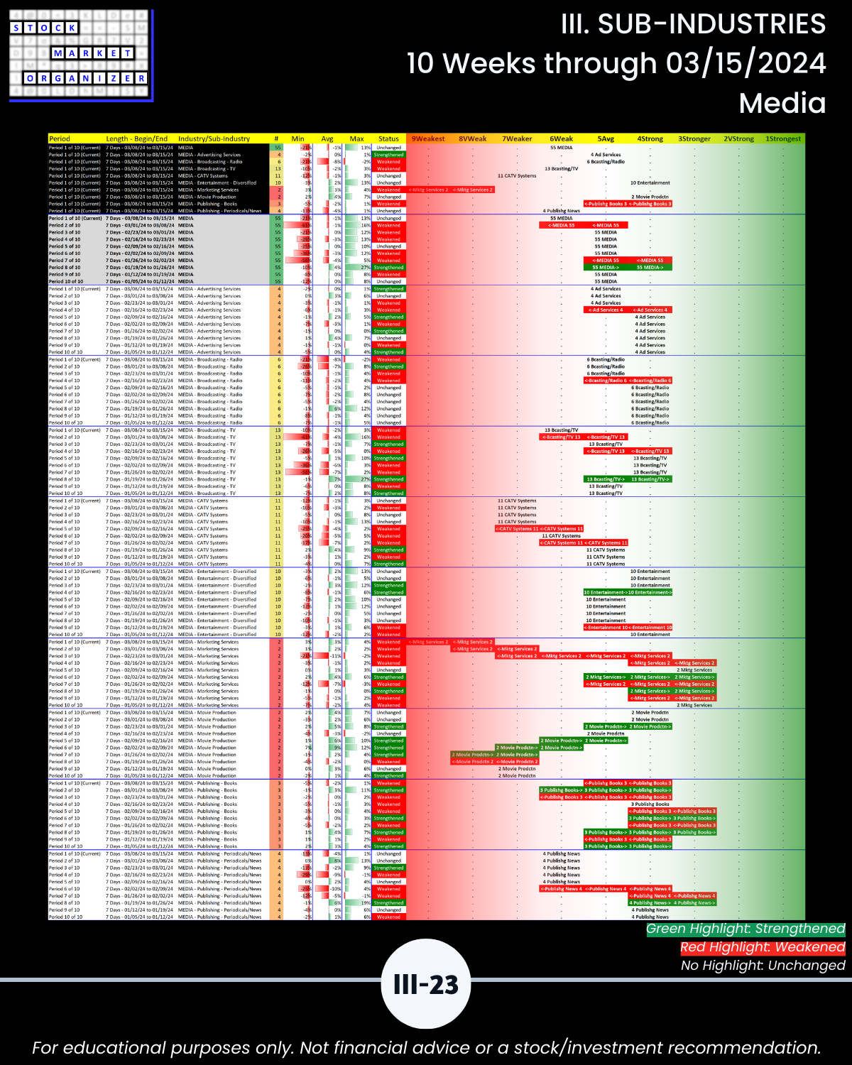 III. SUB-INDUSTRIES/10-Week Individual Sub-Industry Strength Reports