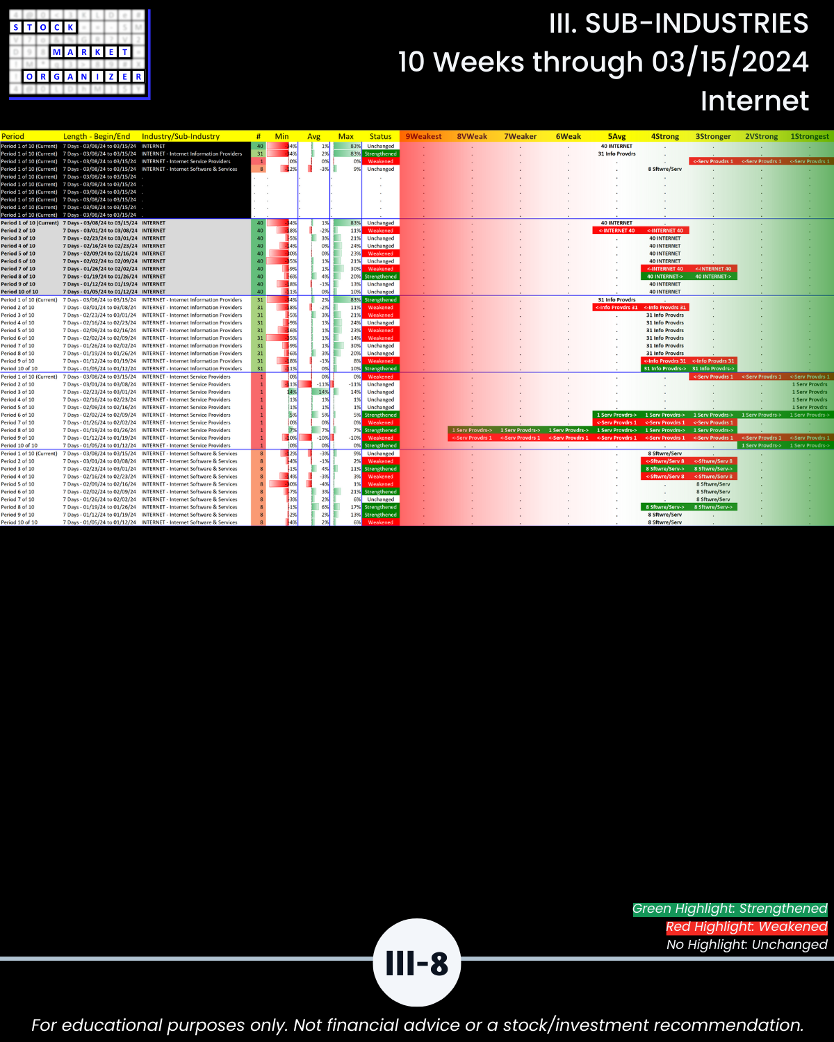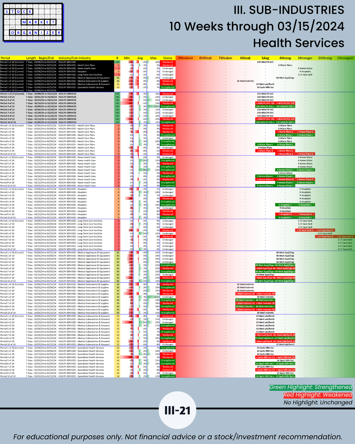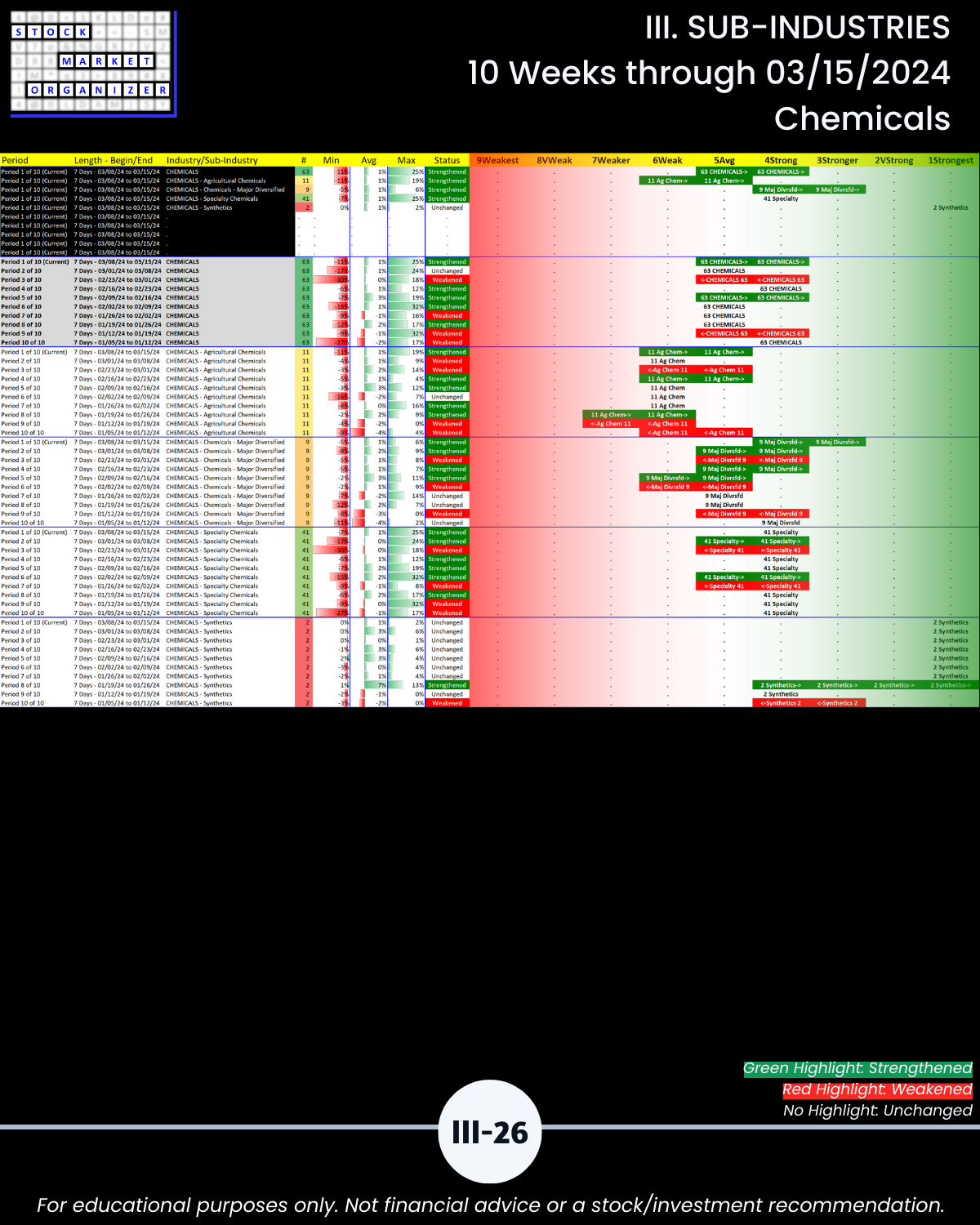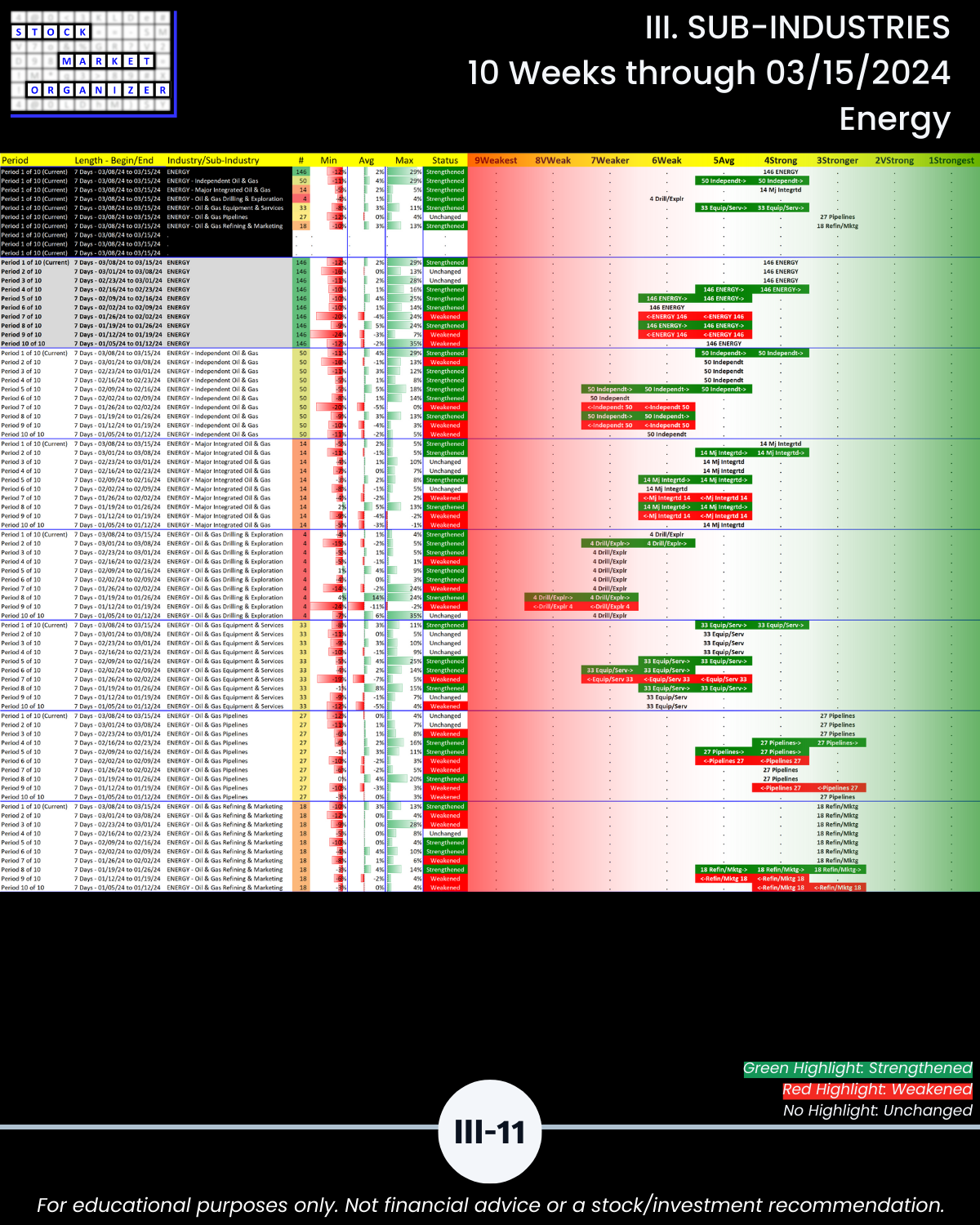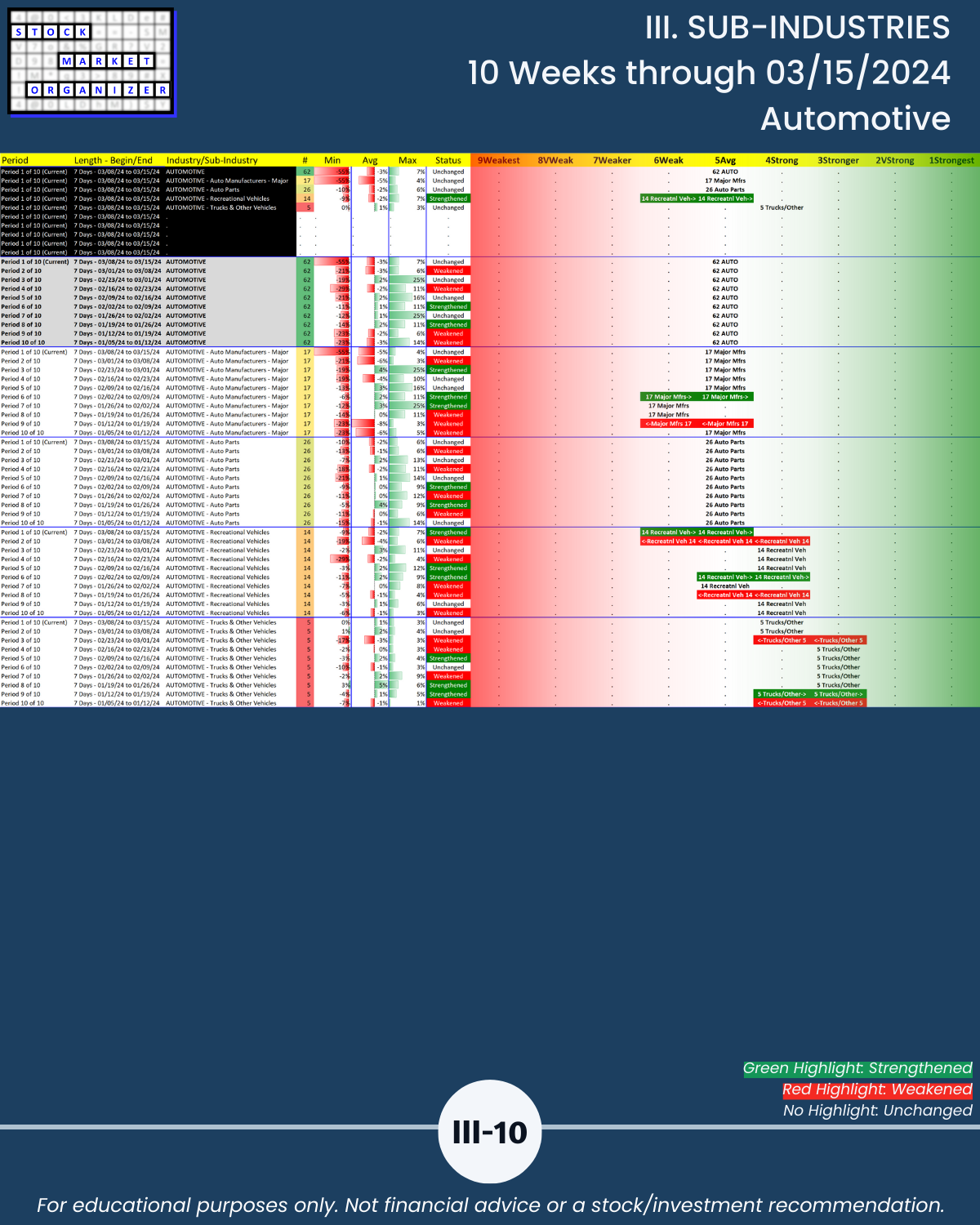 III. SUB-INDUSTRIES/10-Week Individual Sub-Industry Strength Reports