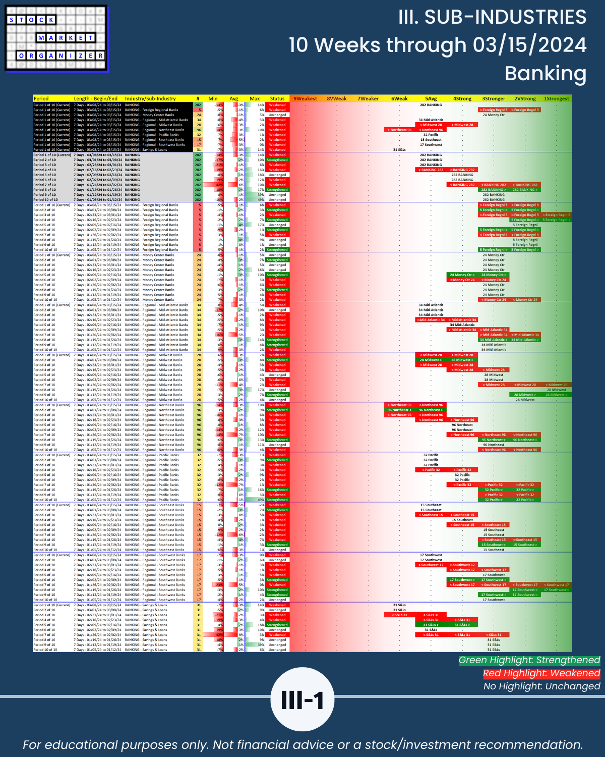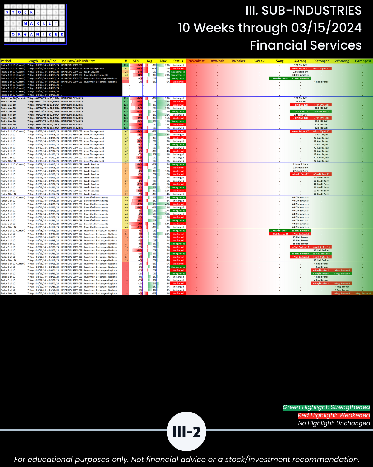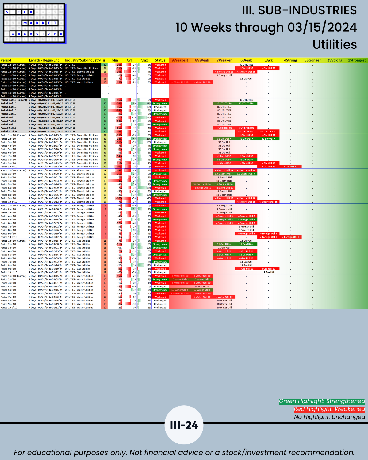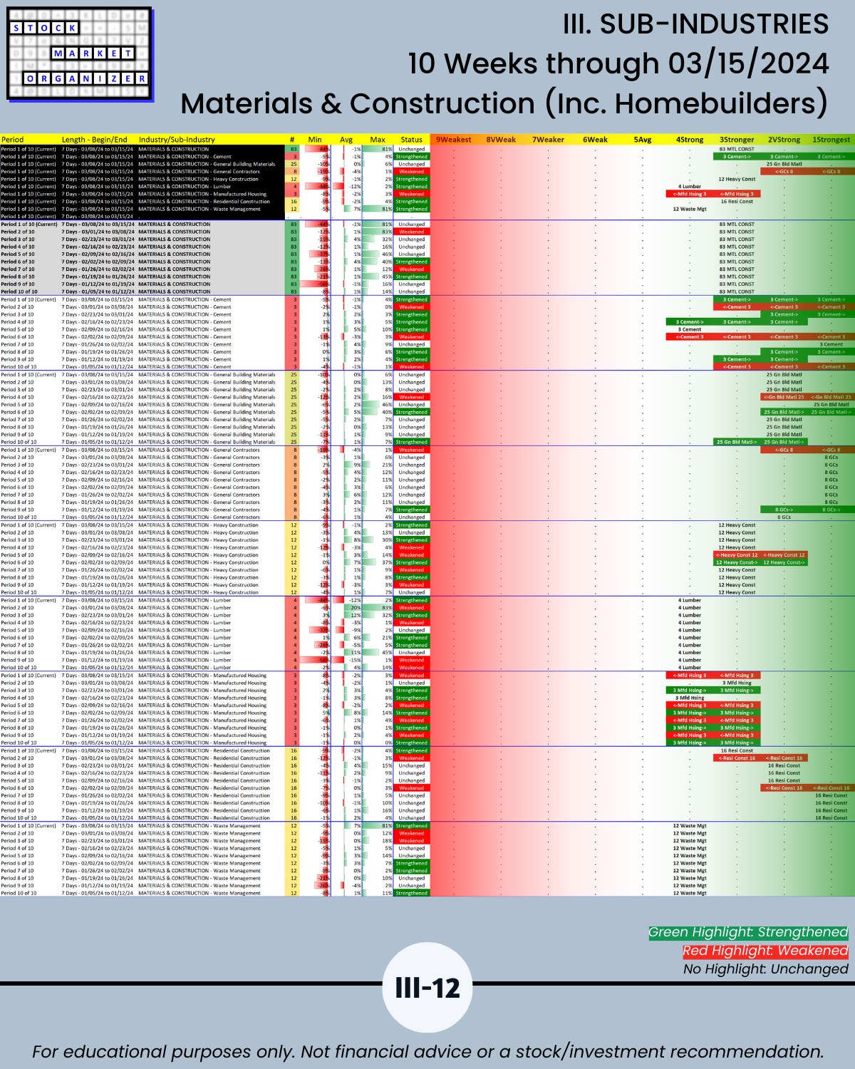 III. SUB-INDUSTRIES/10-Week Individual Sub-Industry Strength Reports