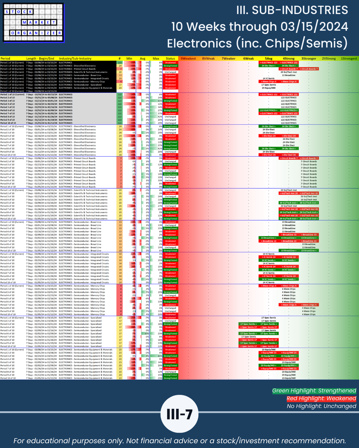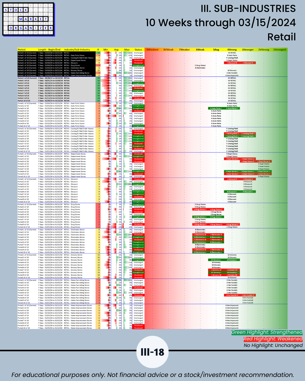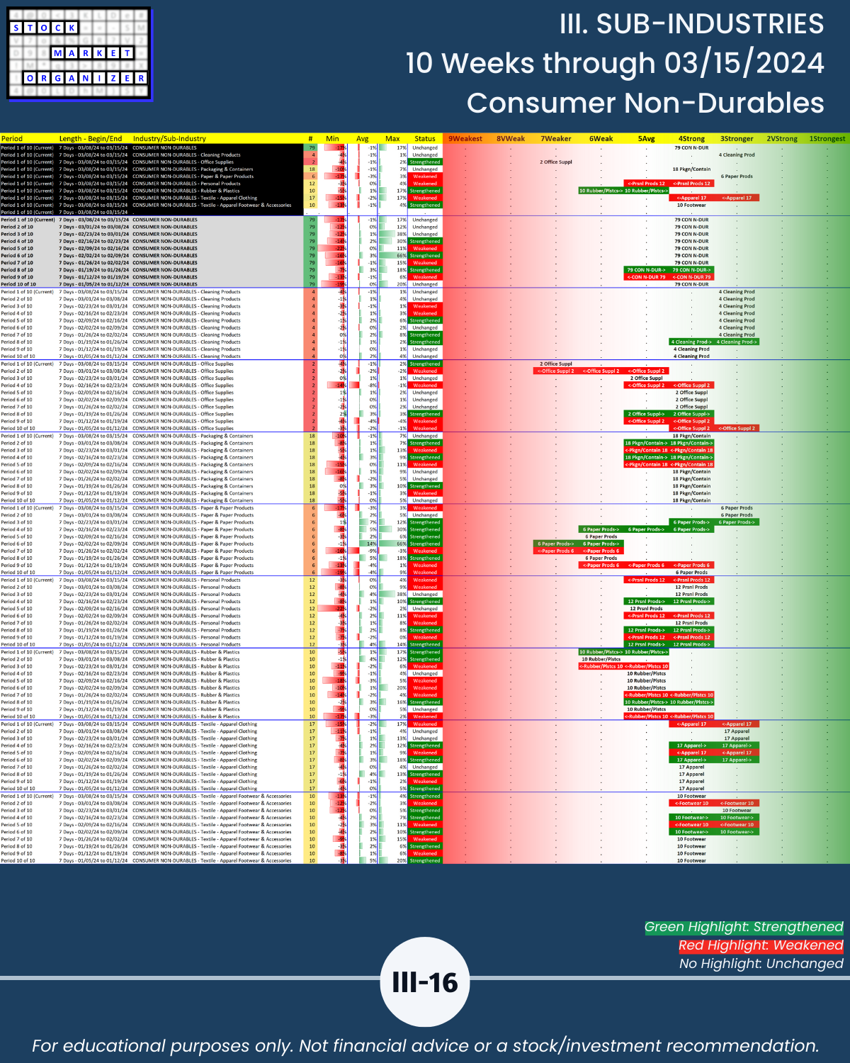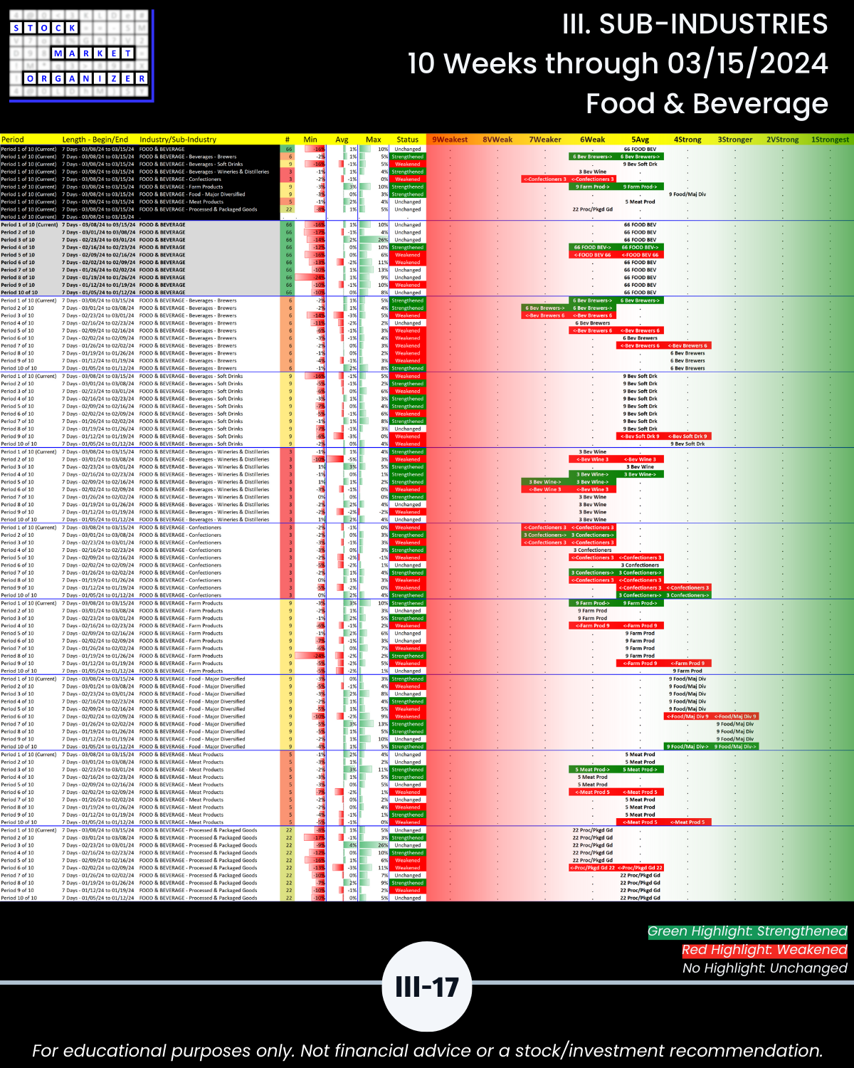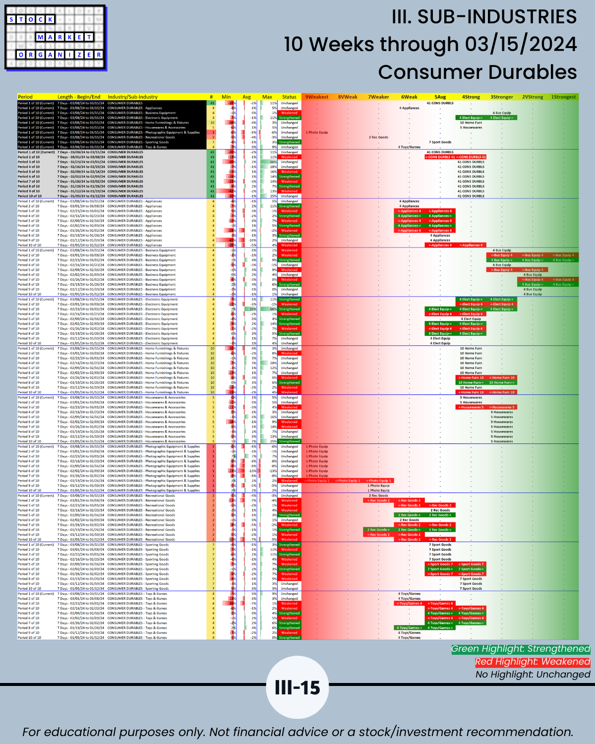 III. SUB-INDUSTRIES/10-Week Individual Sub-Industry Strength Reports