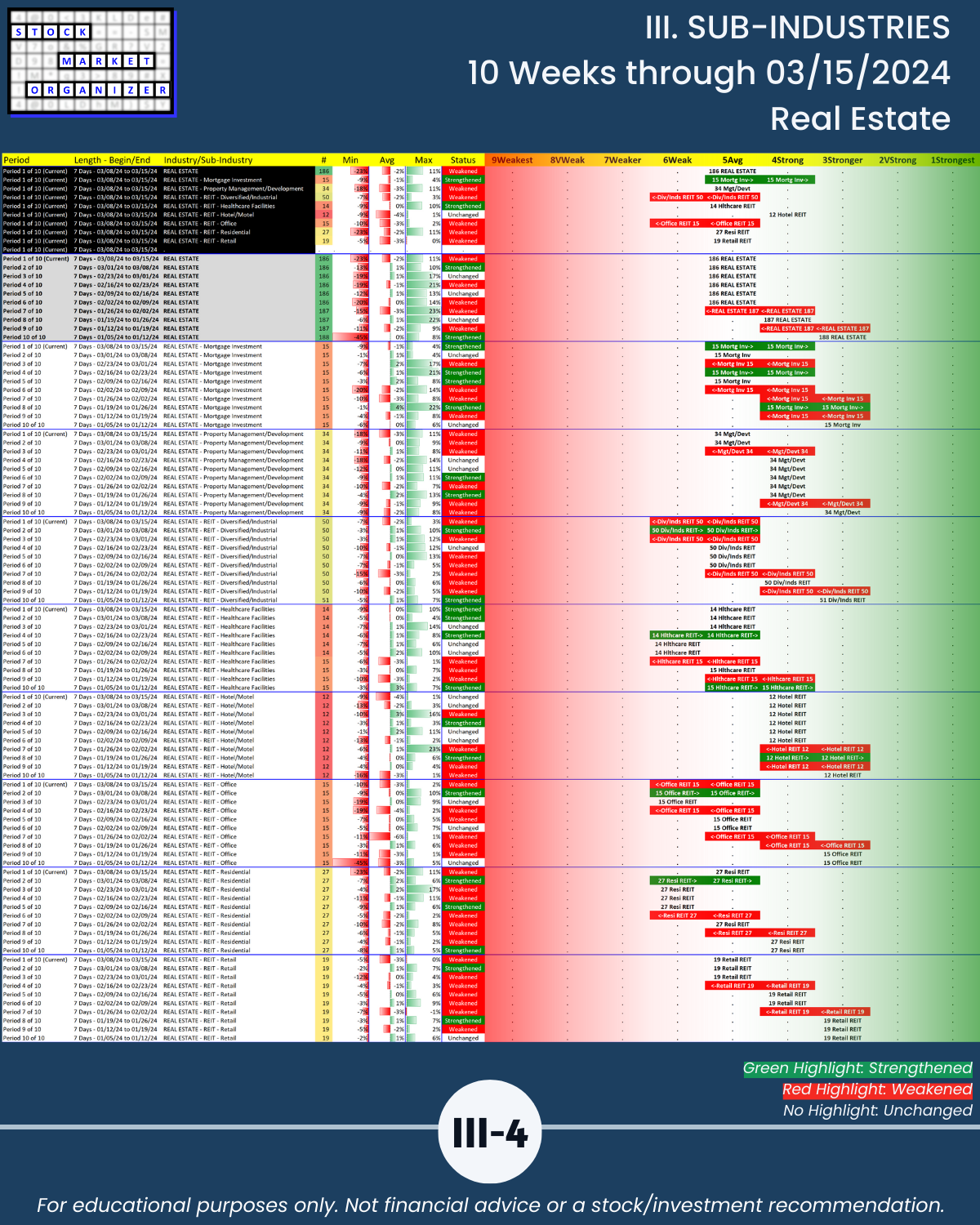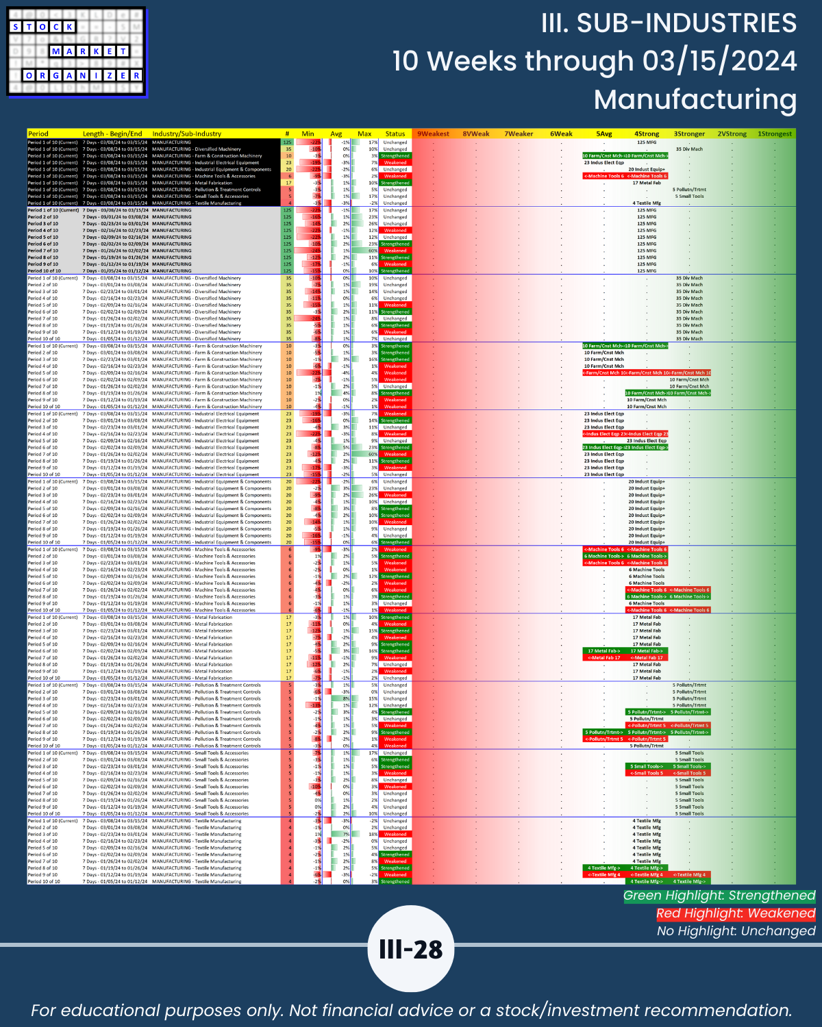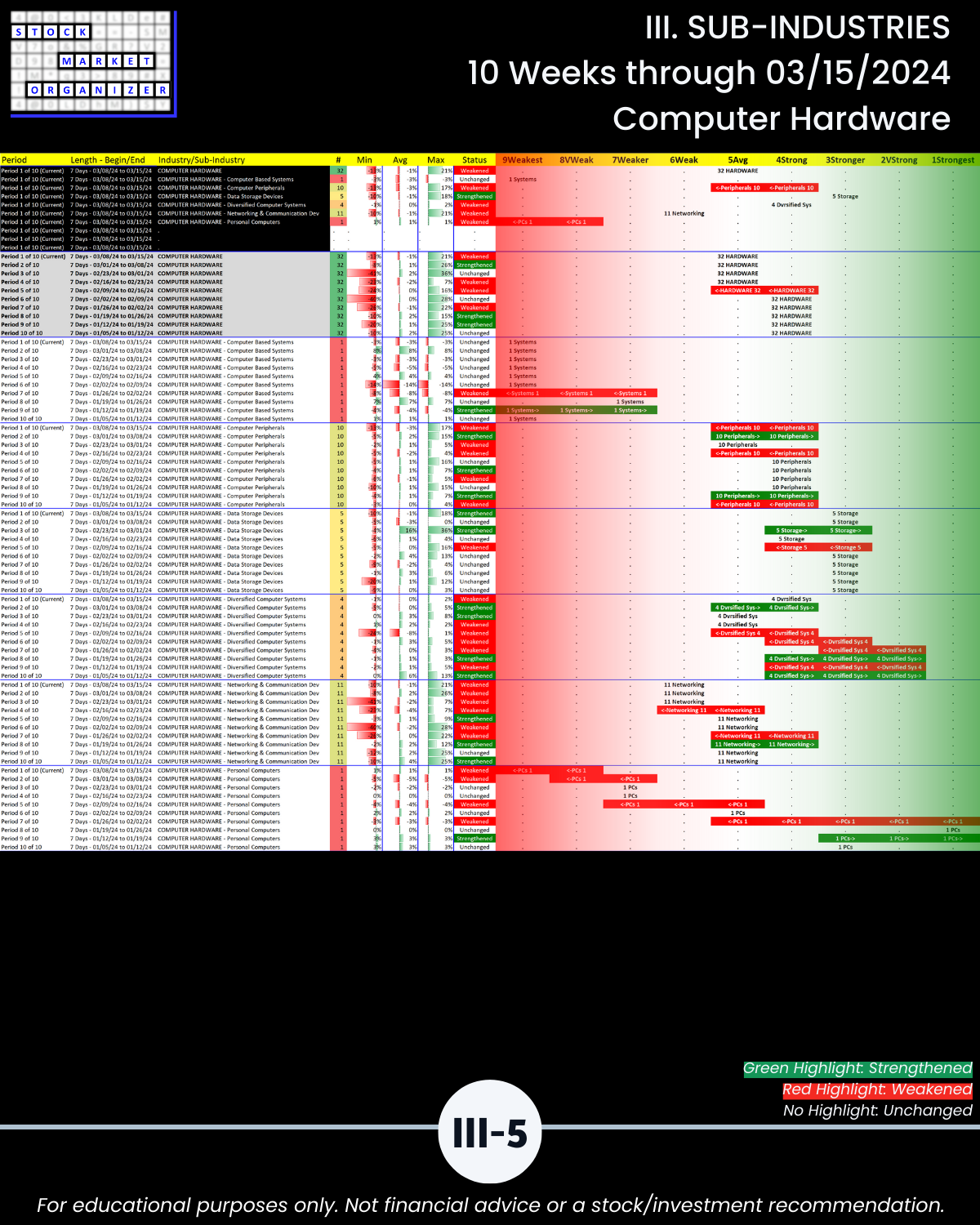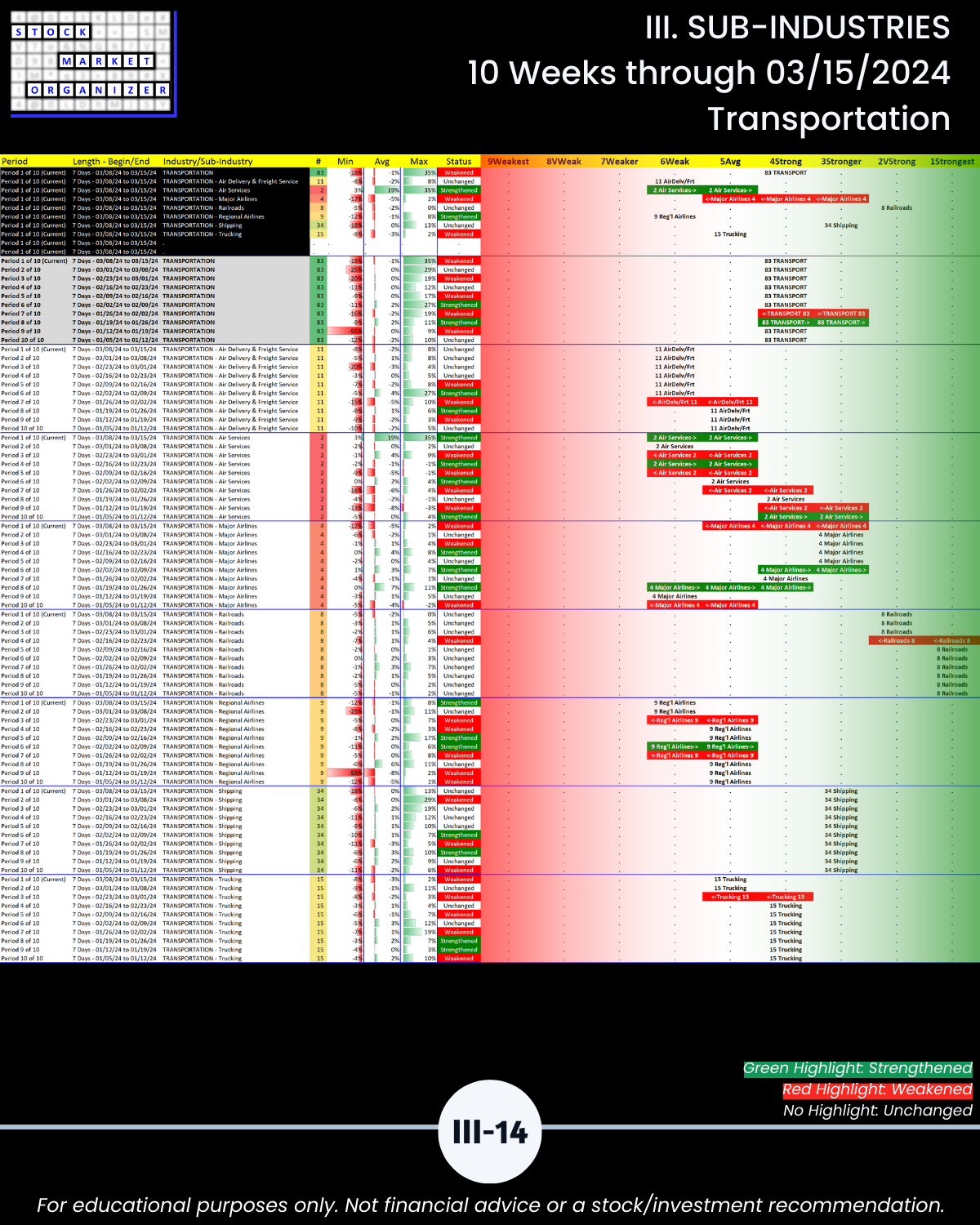 III. SUB-INDUSTRIES/10-Week Individual Sub-Industry Strength Reports