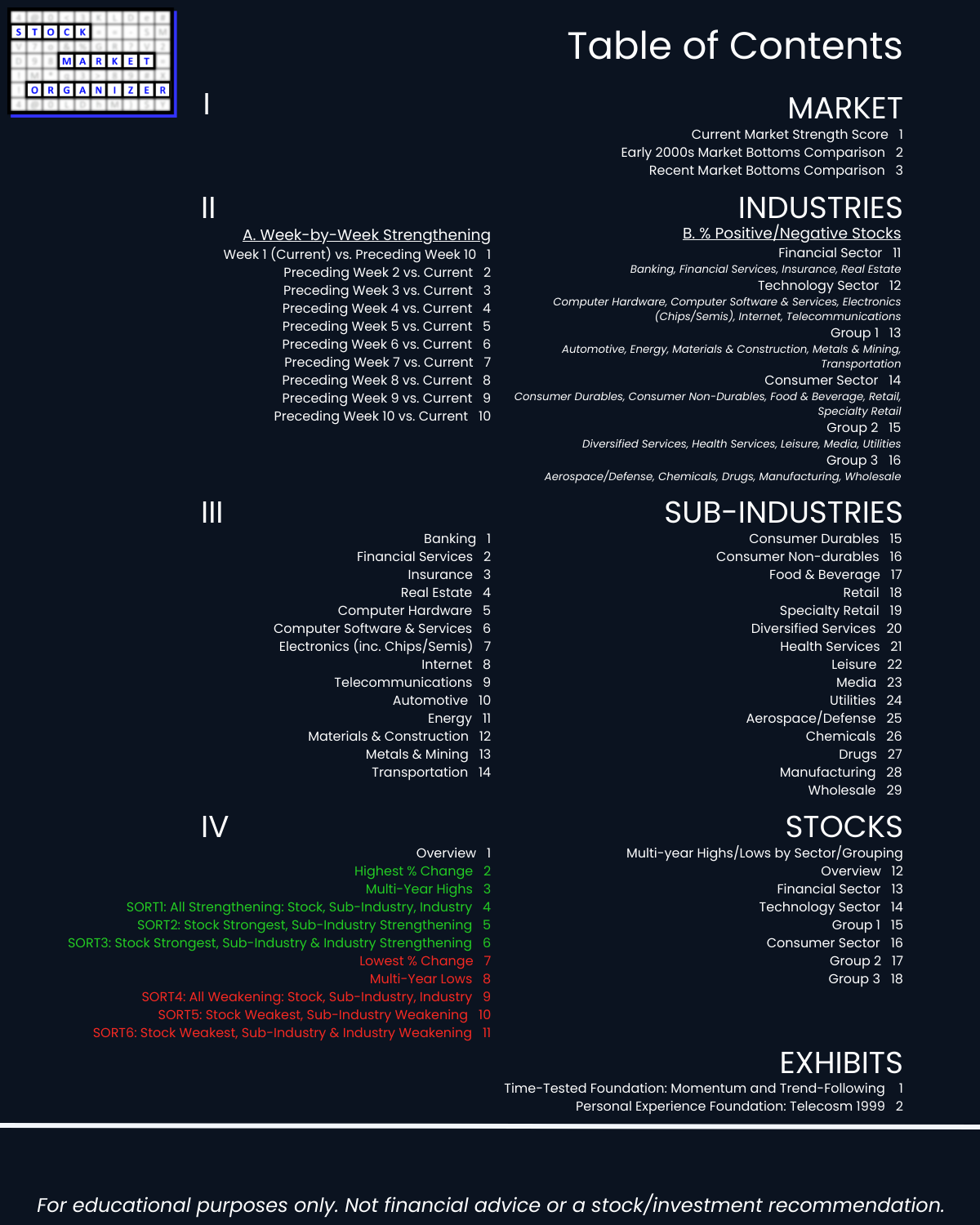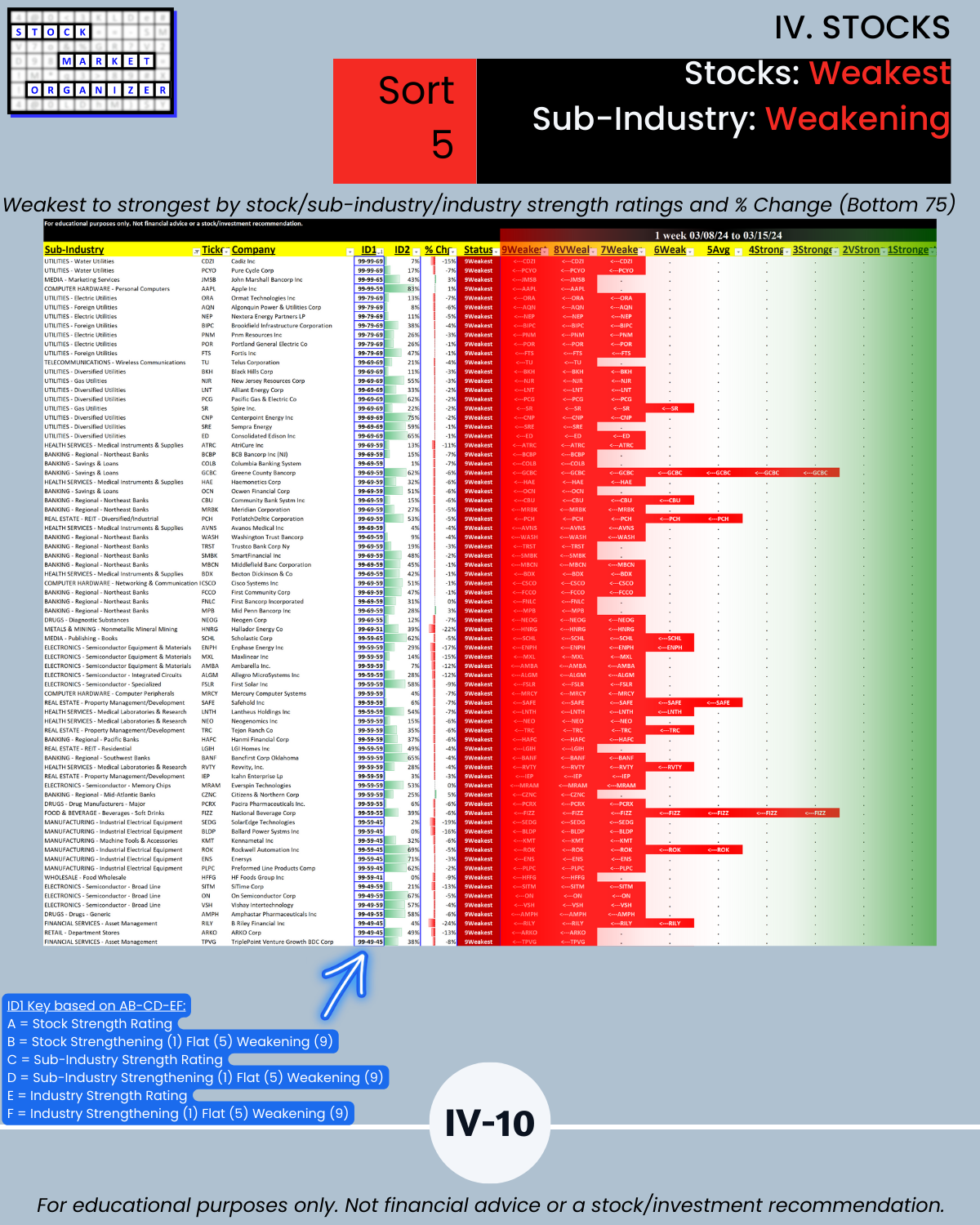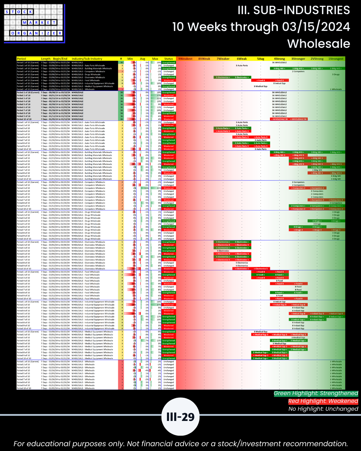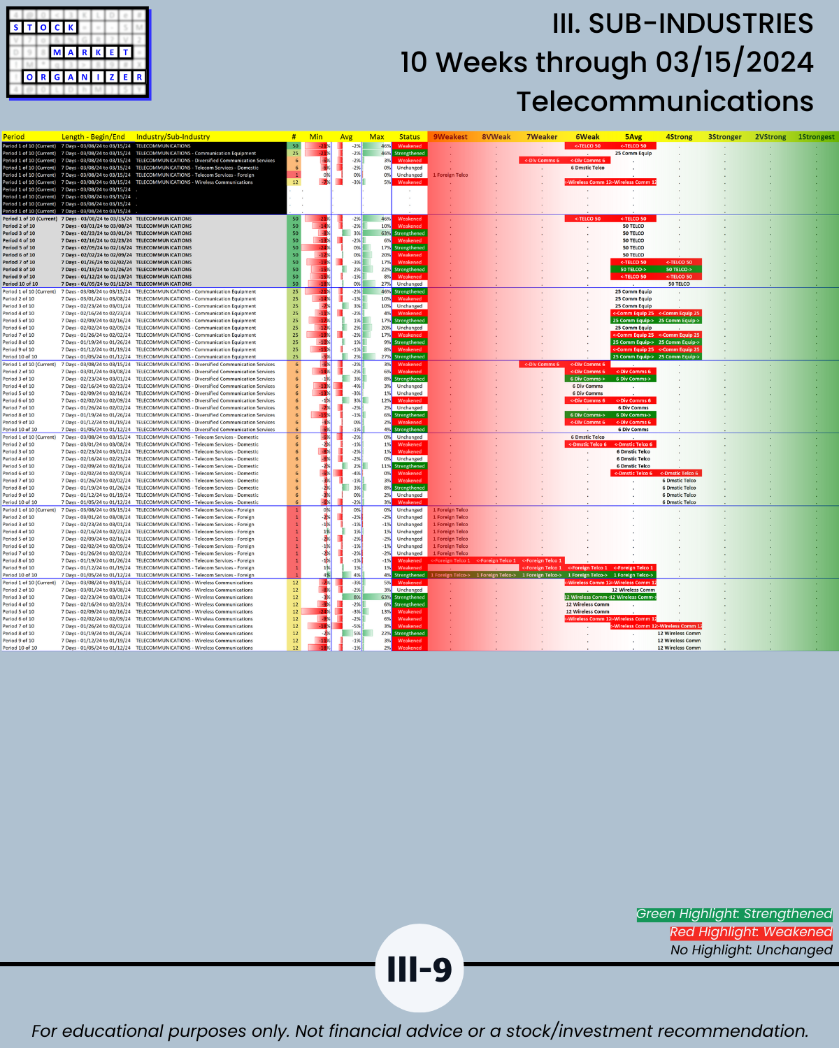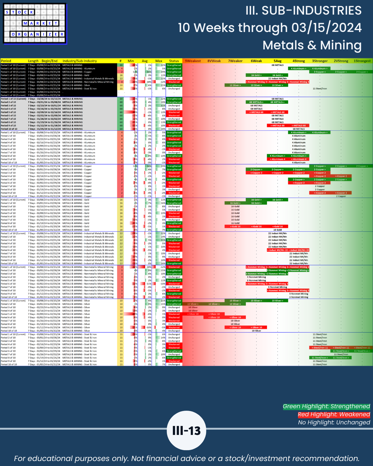 III. SUB-INDUSTRIES/10-Week Individual Sub-Industry Strength Reports