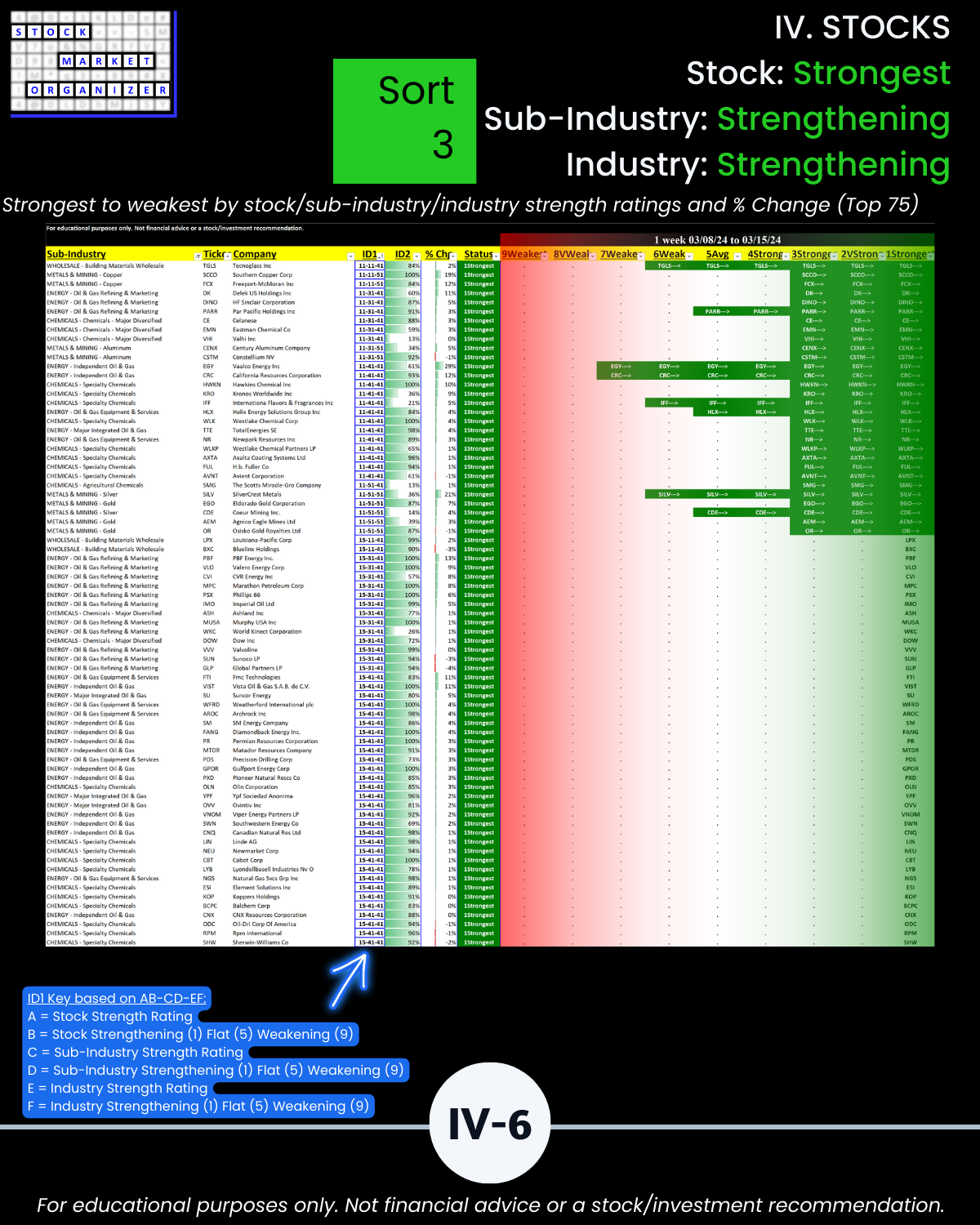 See what outlier stocks are worth exploring – long and short – based on their strength and that of their sub-industries and industries.