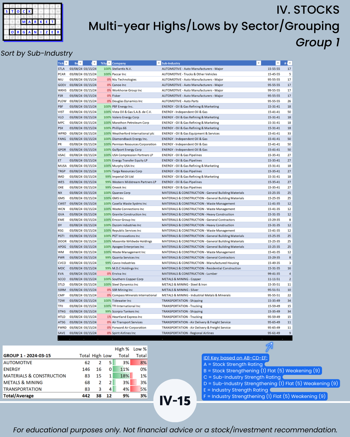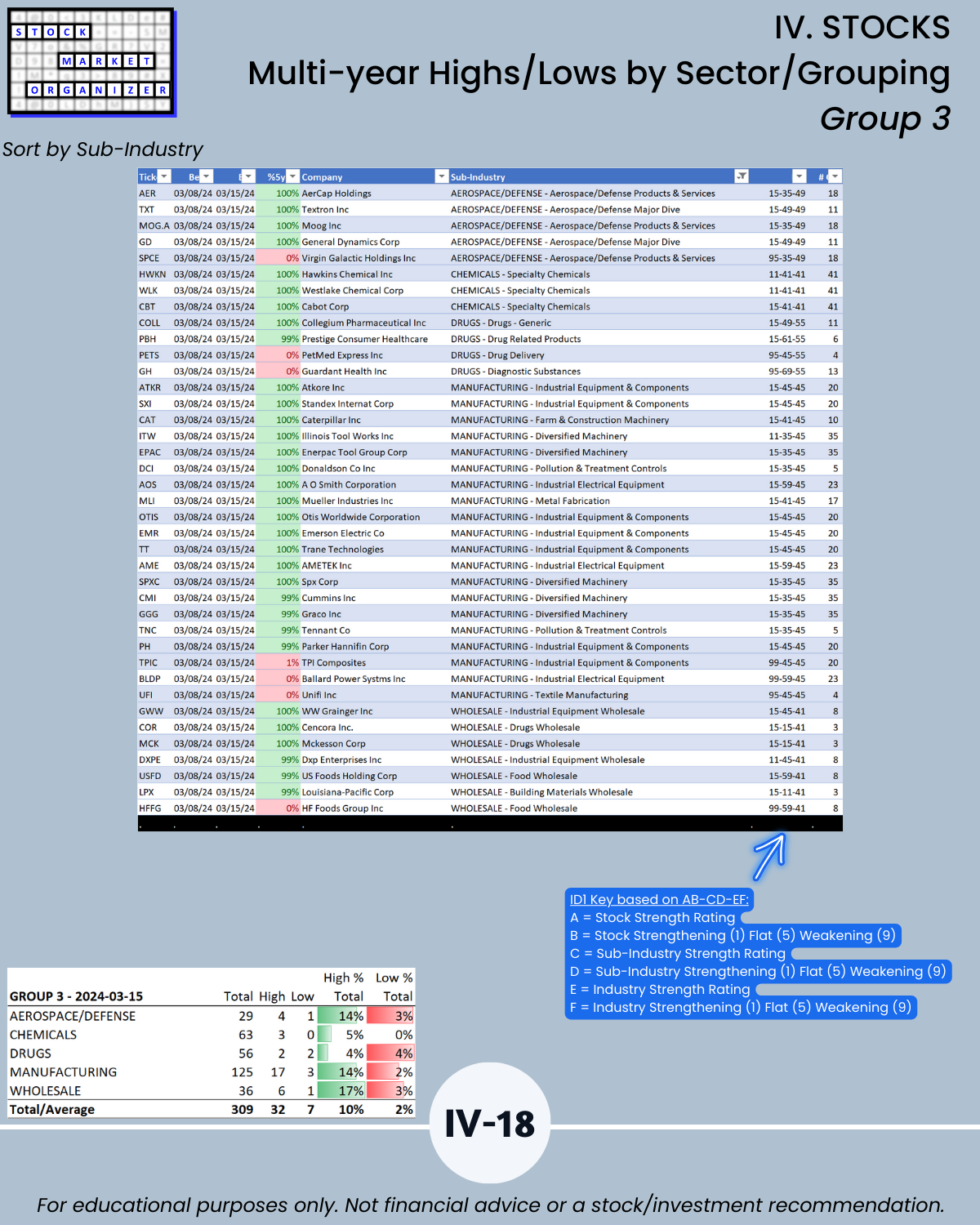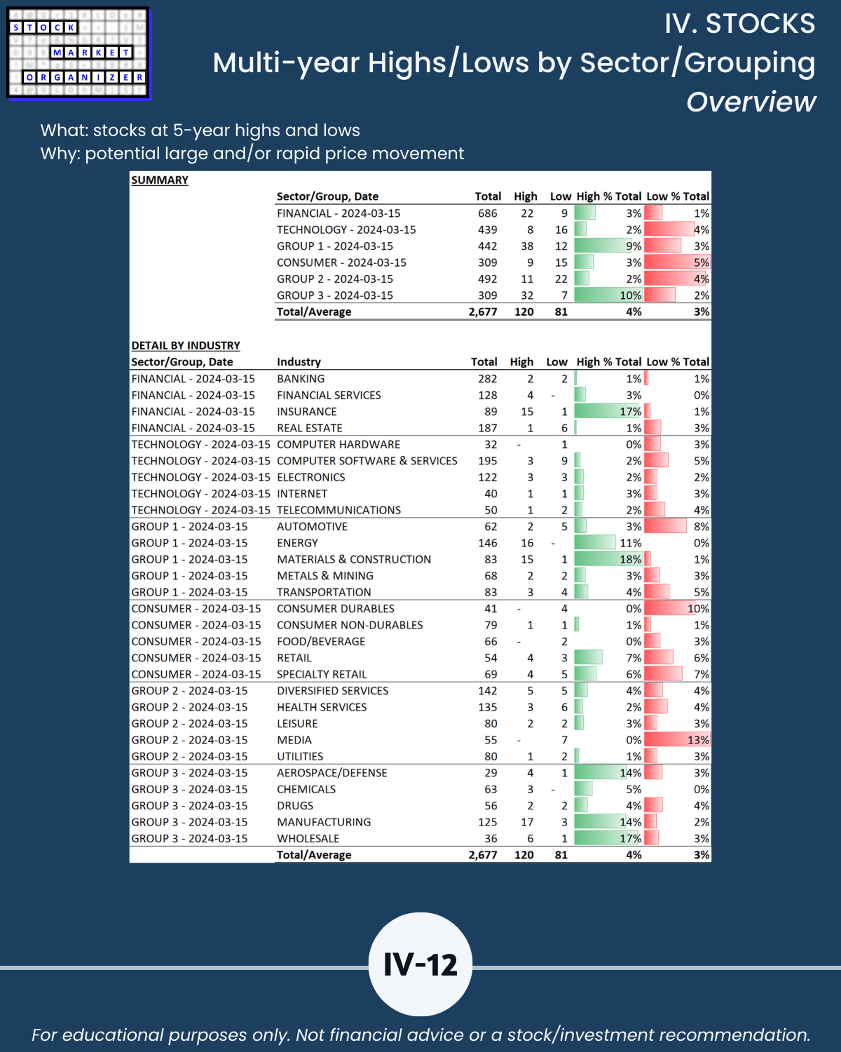 IV. STOCKS/Stock Sorts, Multi-Year Highs/Lows by Sector/Grouping