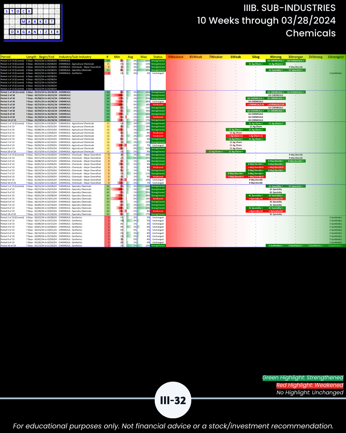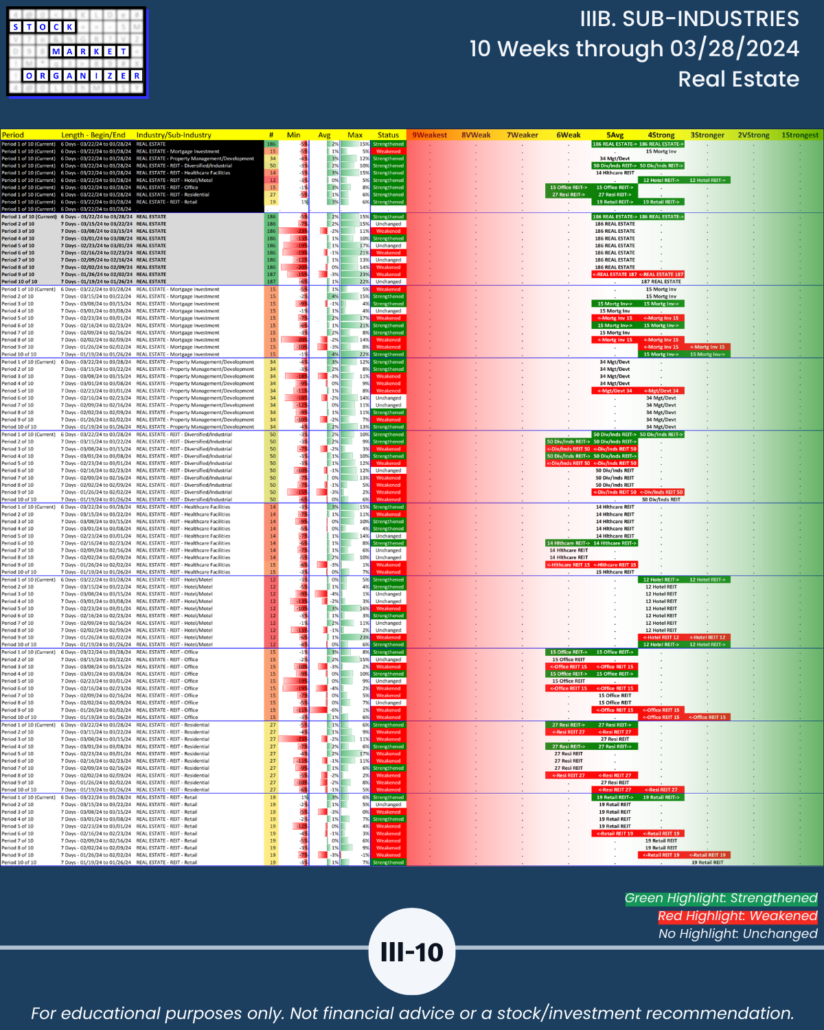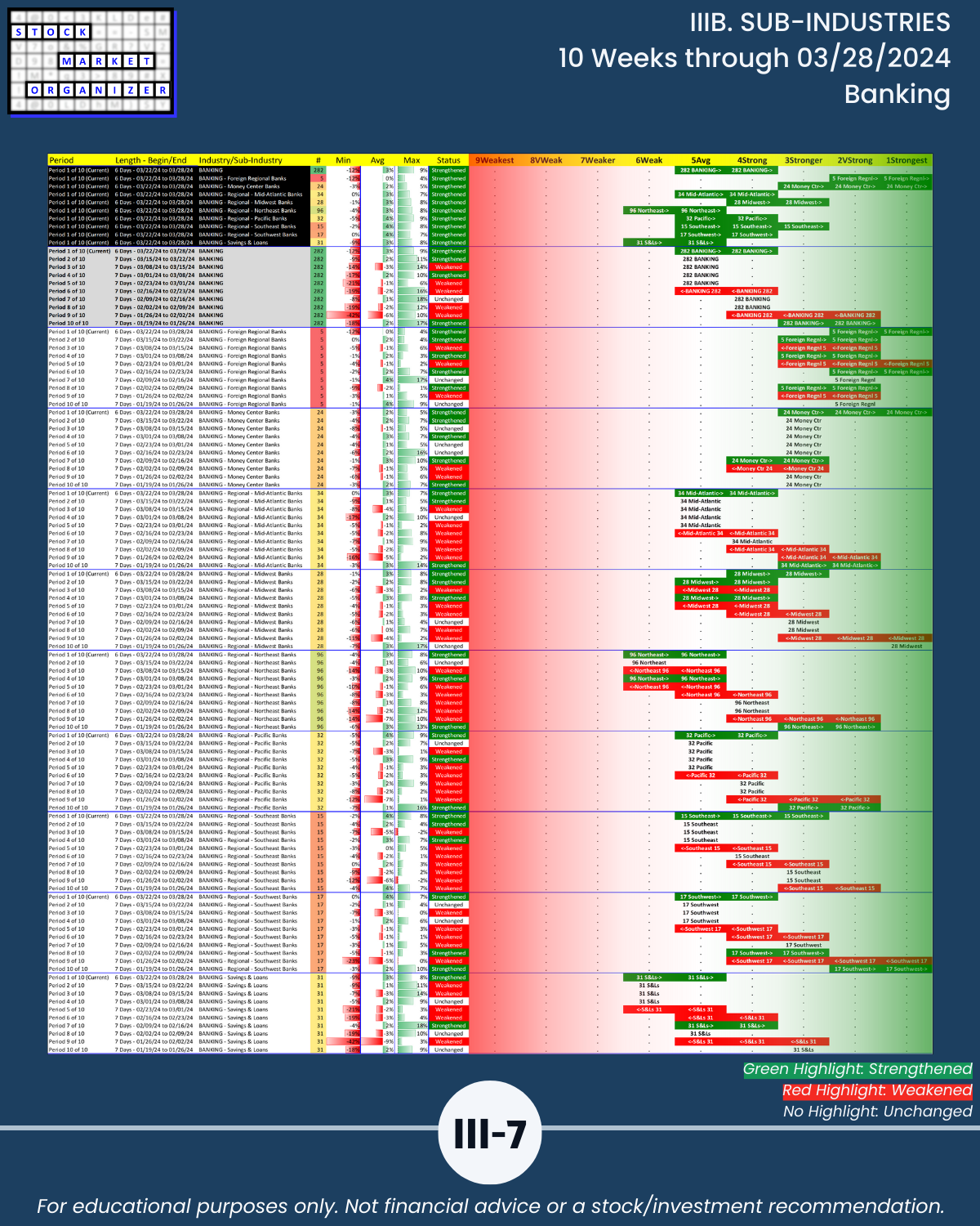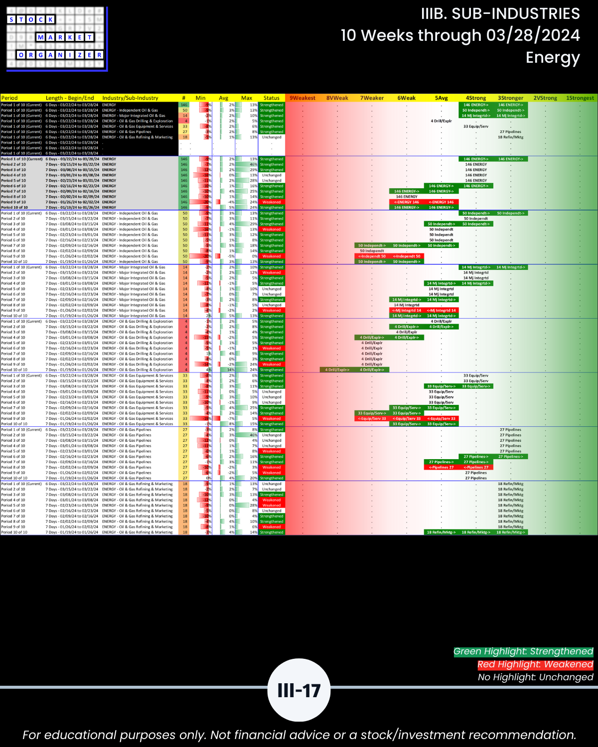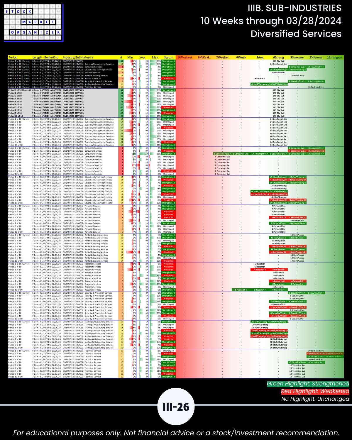 IIIB. SUB-INDUSTRIES 10-Week Strengthening/Weakening