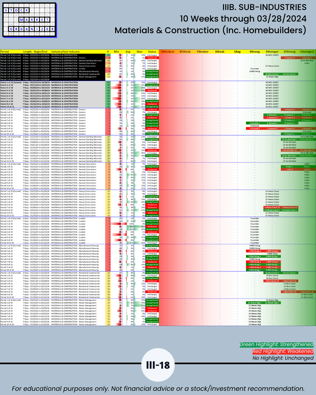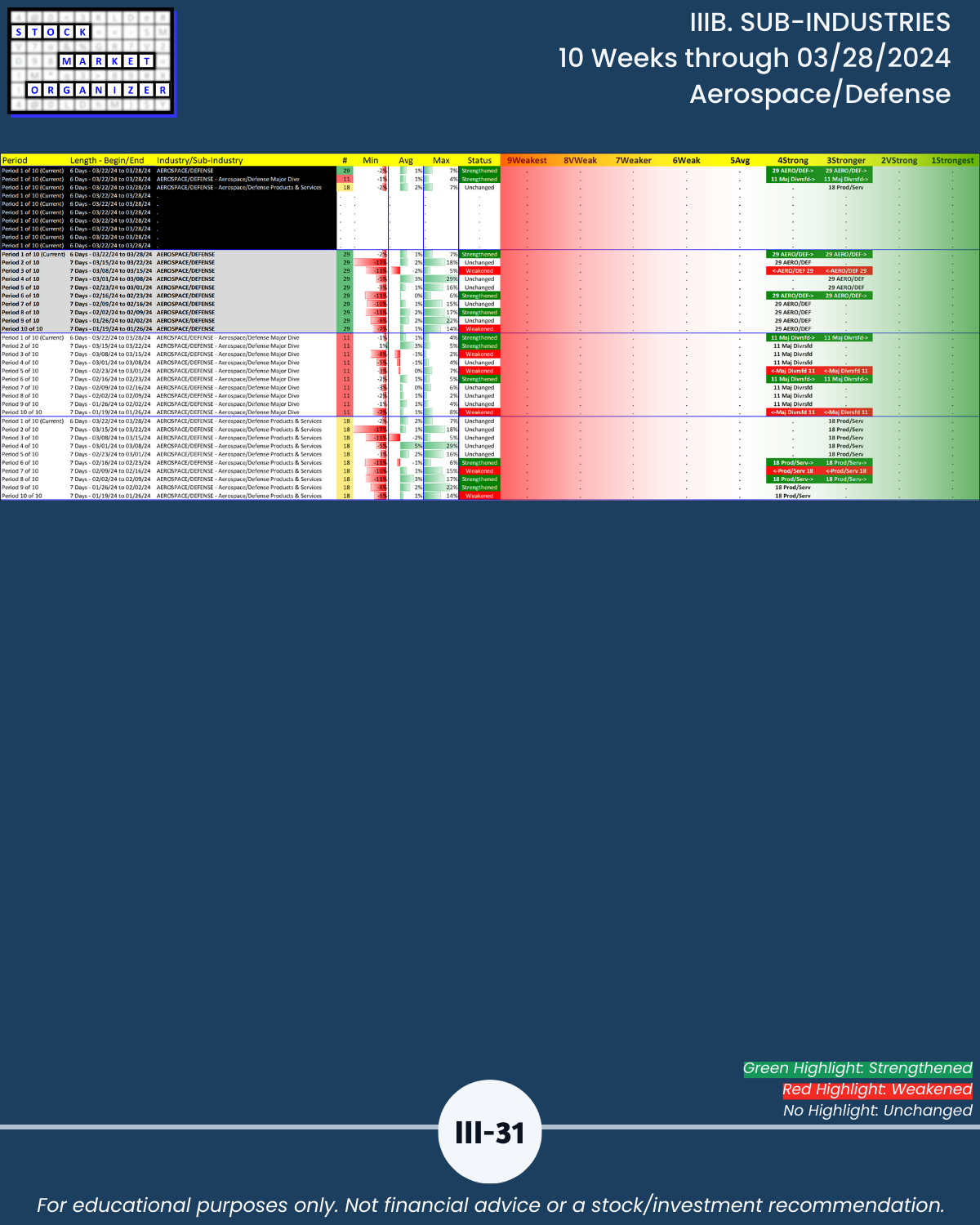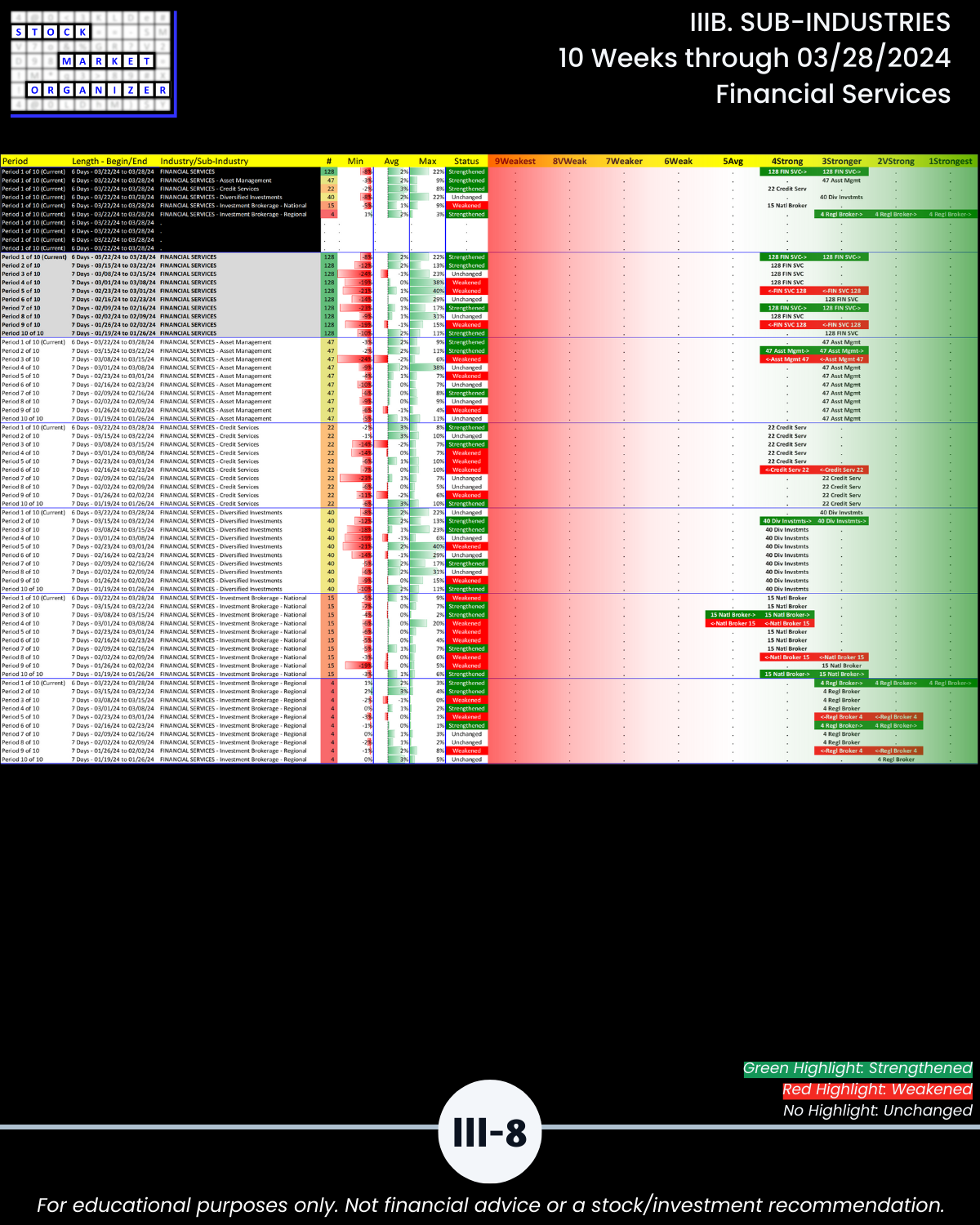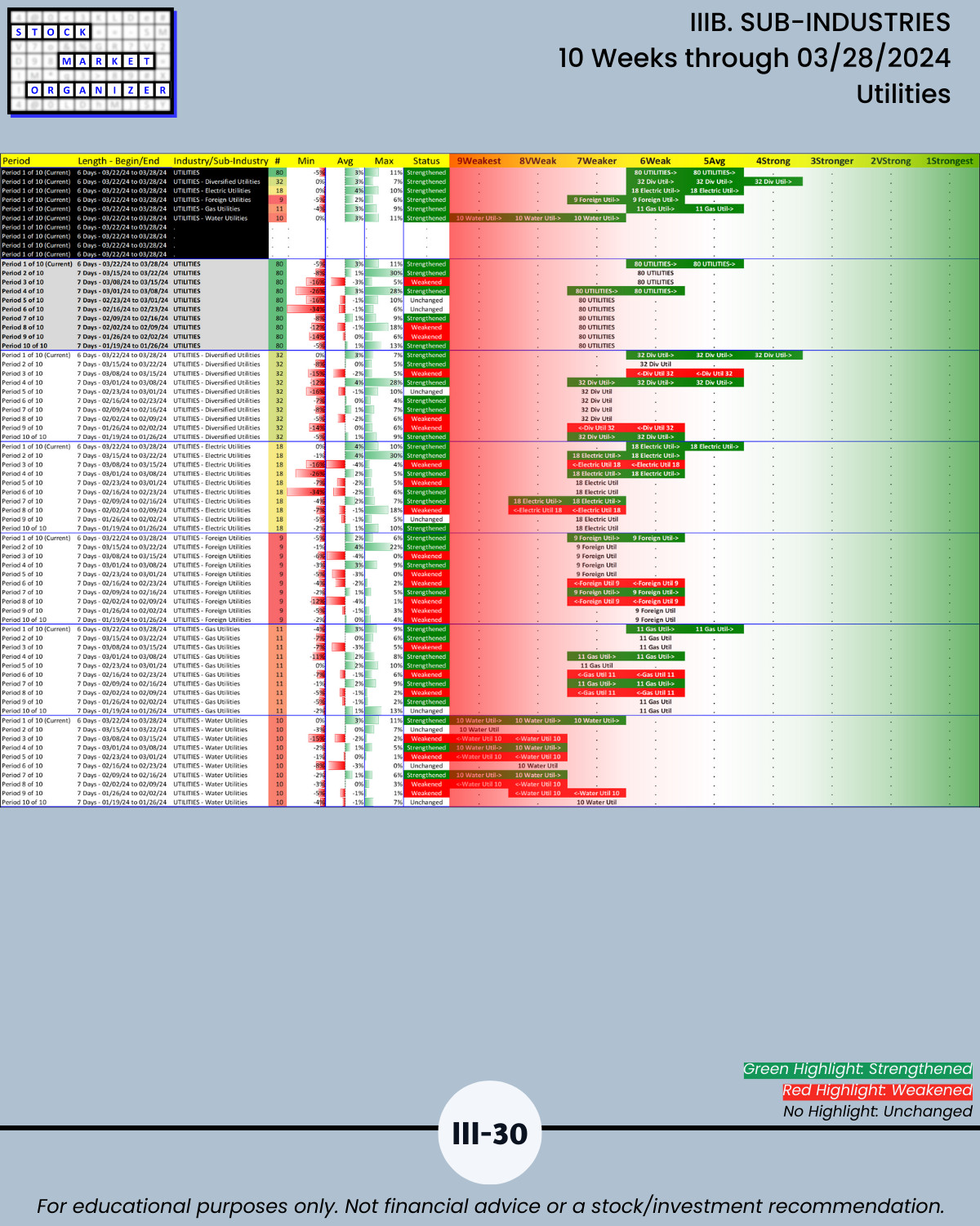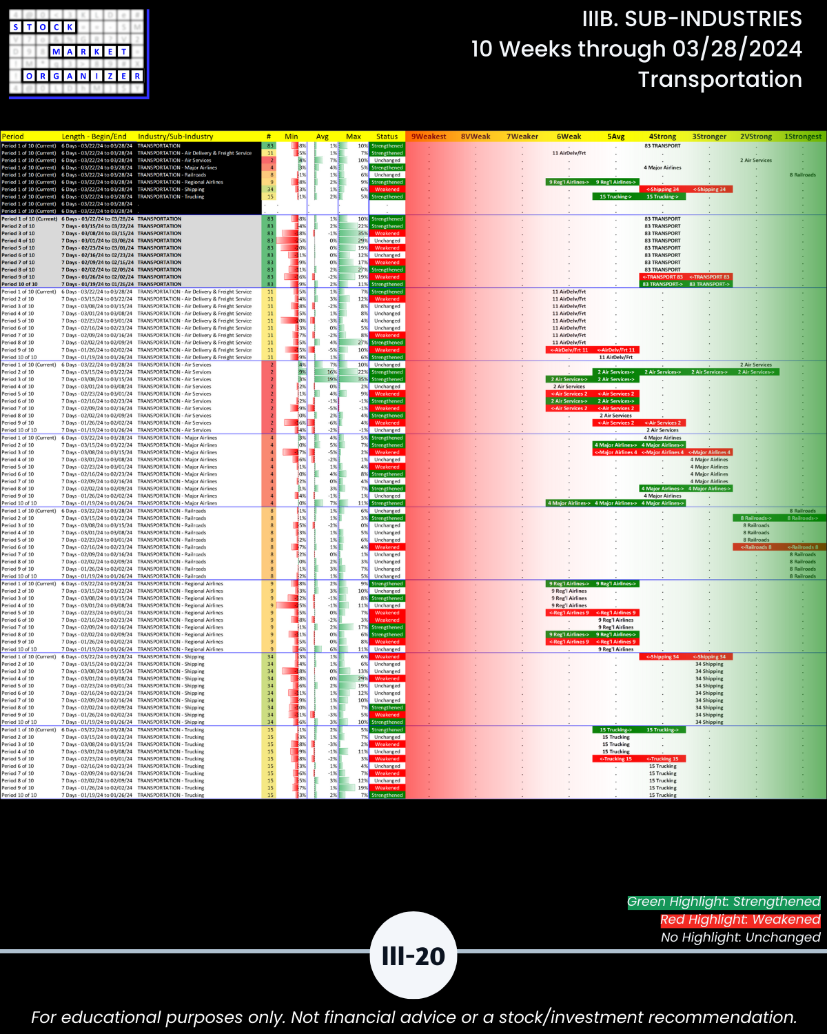 IIIB. SUB-INDUSTRIES 10-Week Strengthening/Weakening