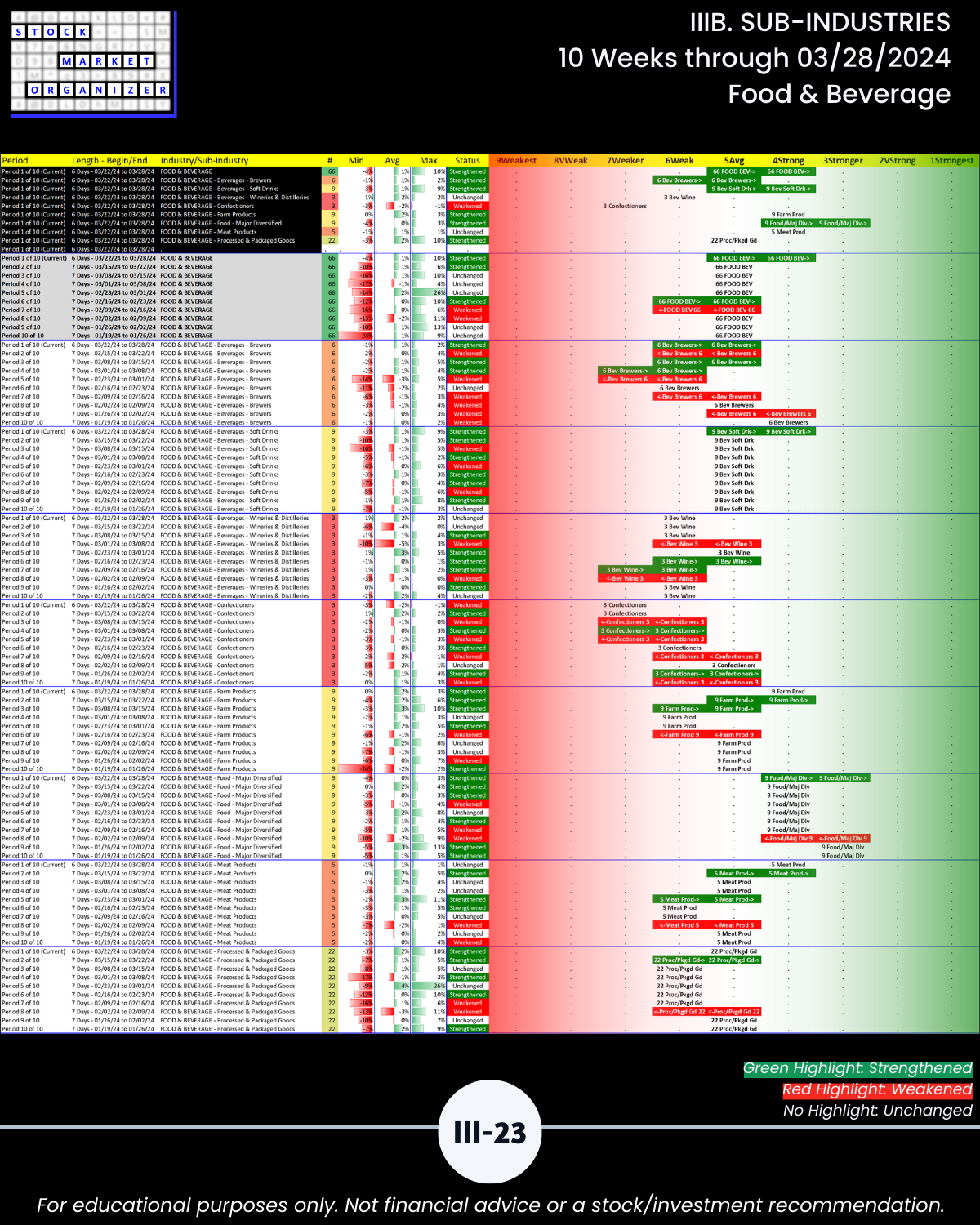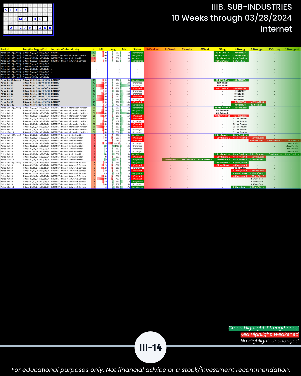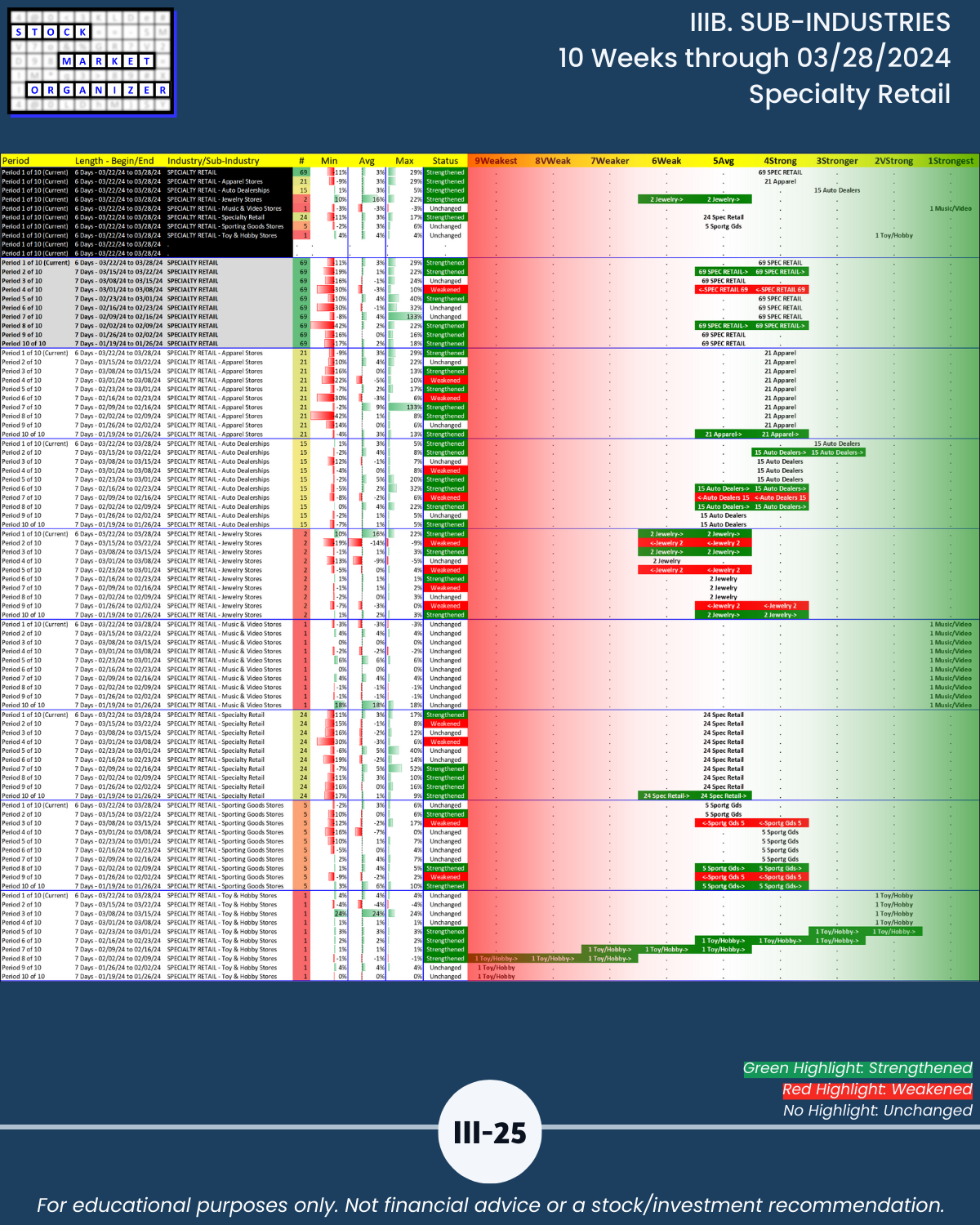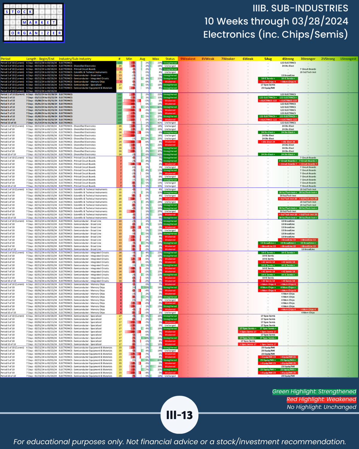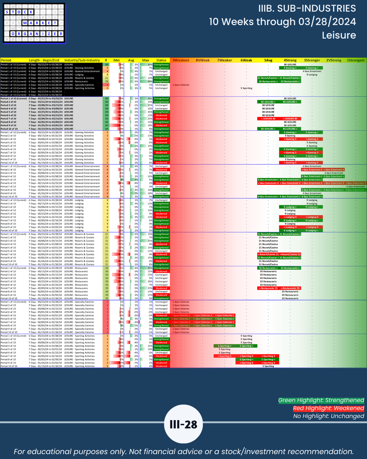 IIIB. SUB-INDUSTRIES 10-Week Strengthening/Weakening