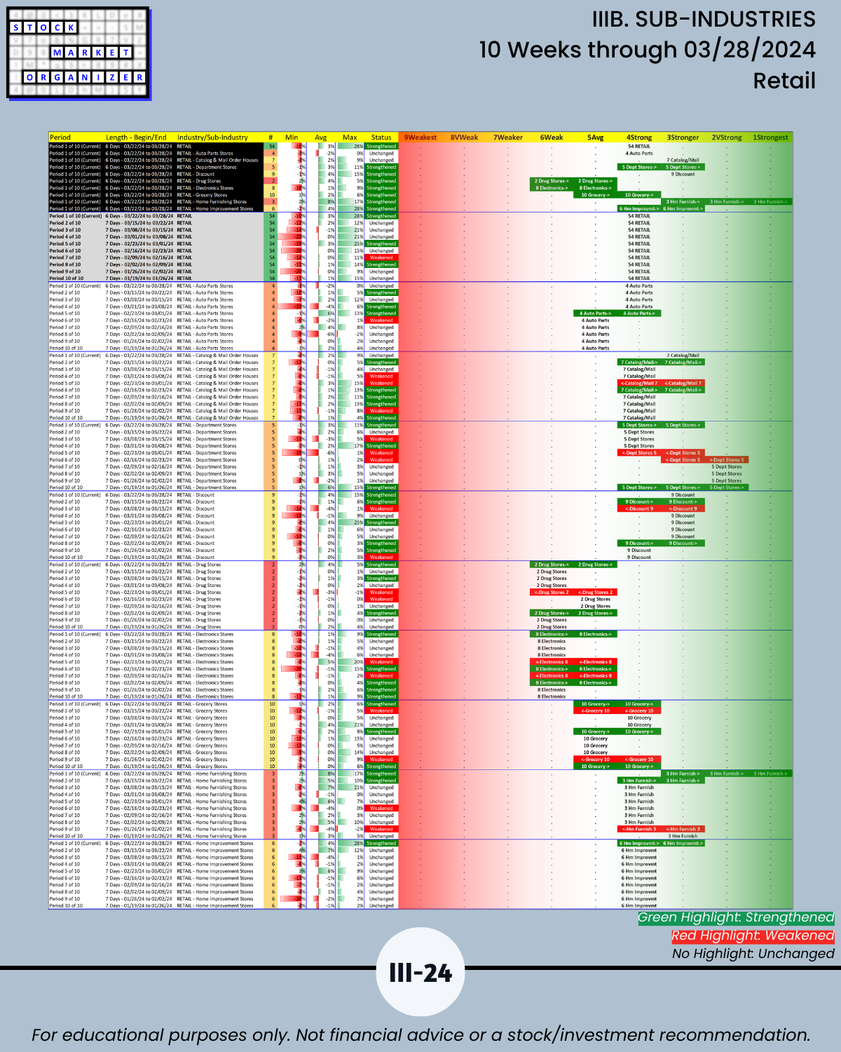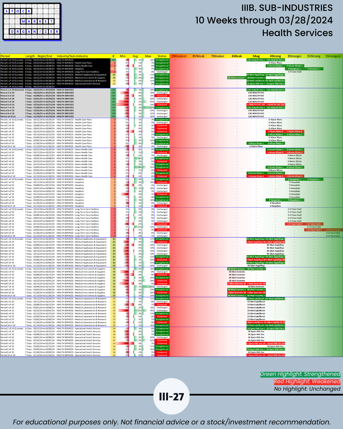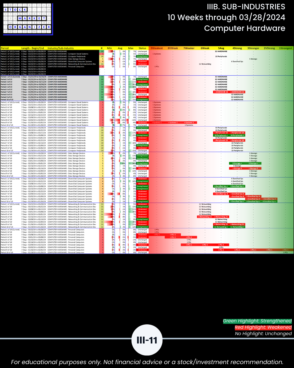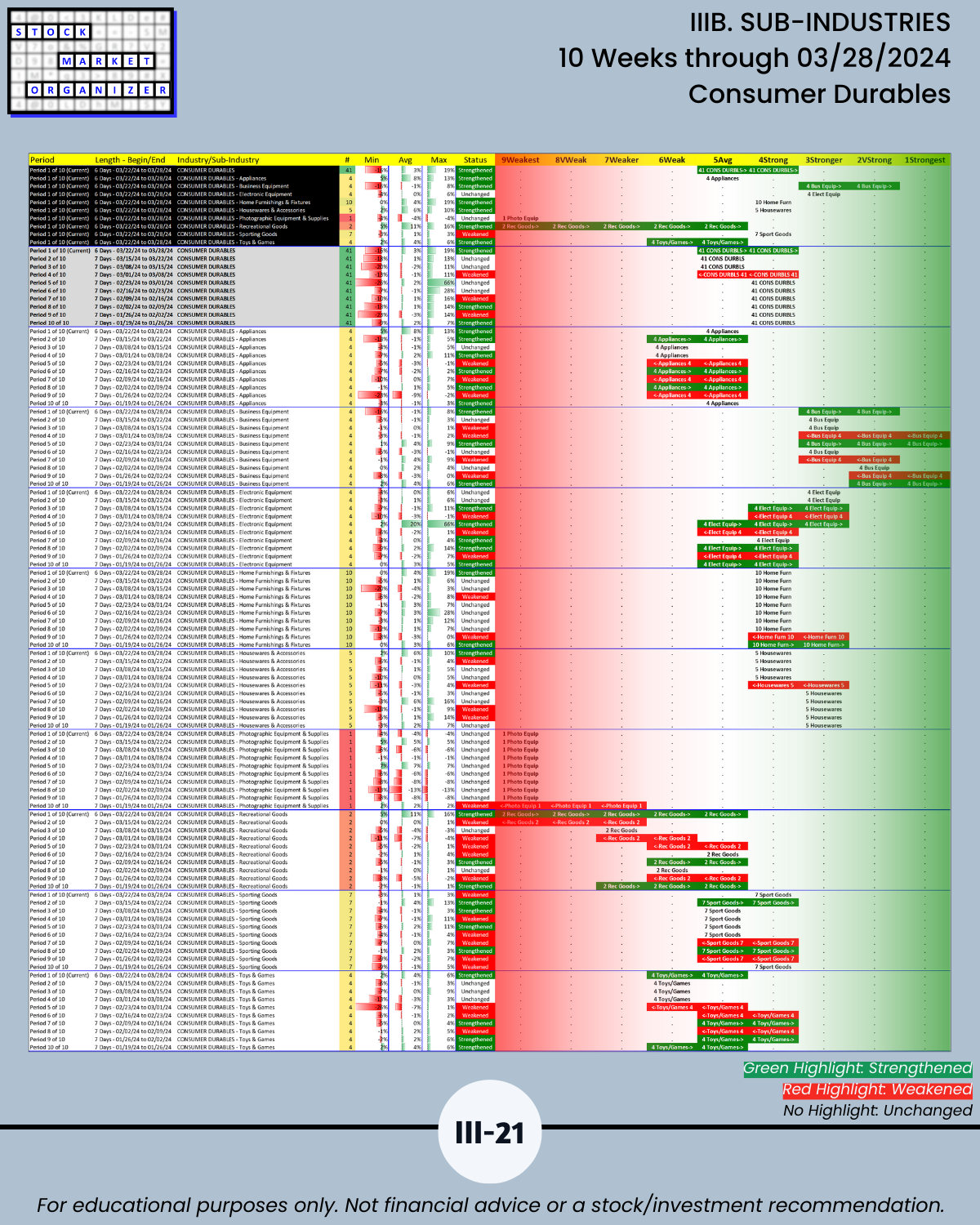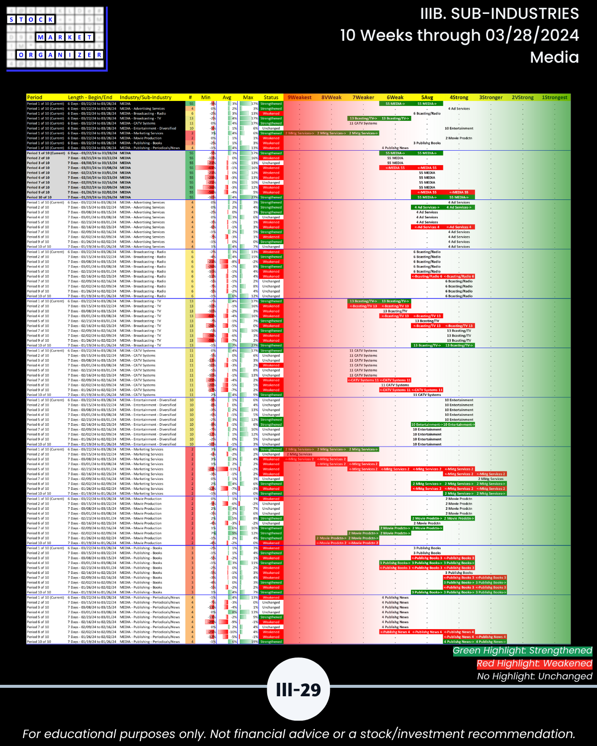 IIIB. SUB-INDUSTRIES 10-Week Strengthening/Weakening