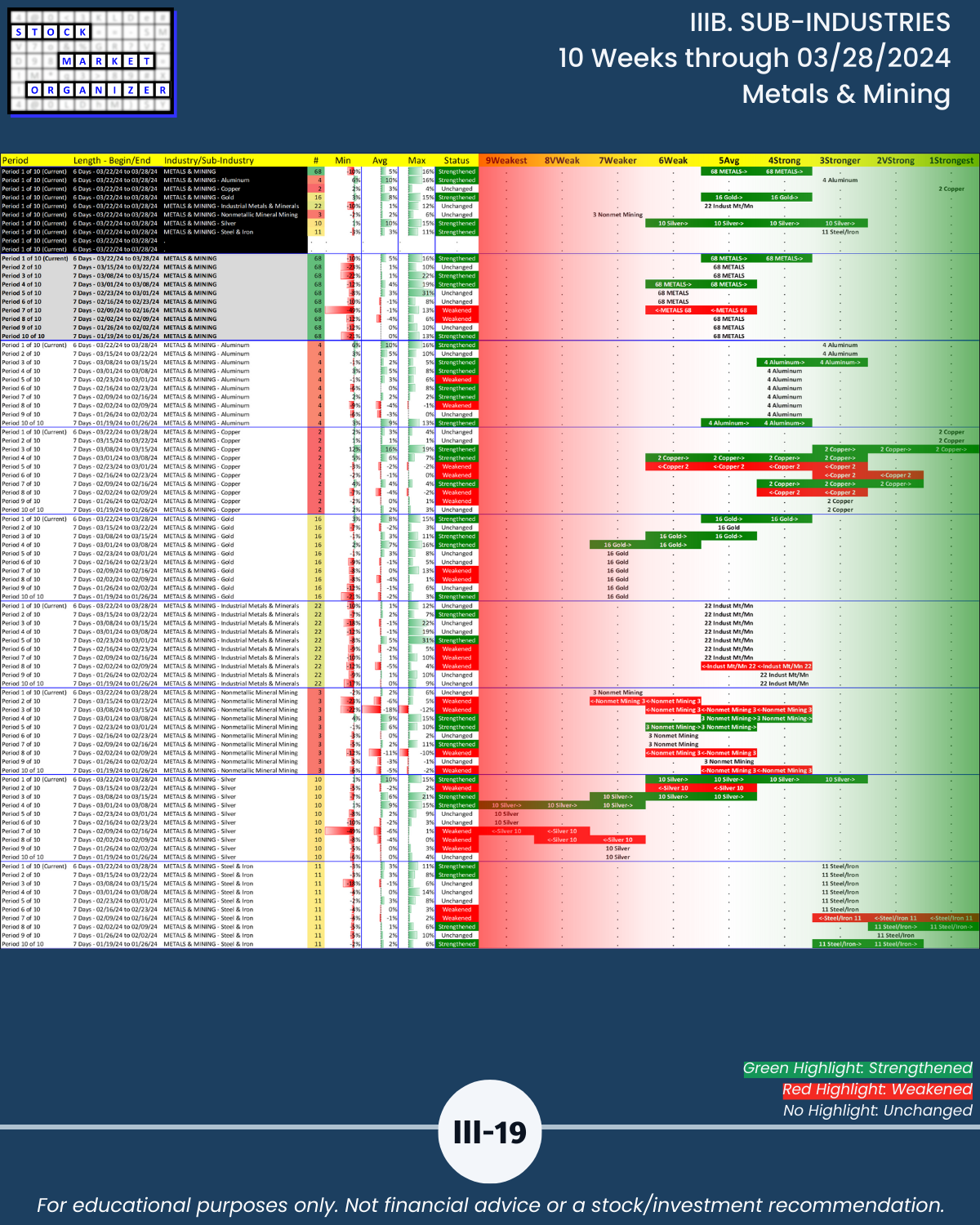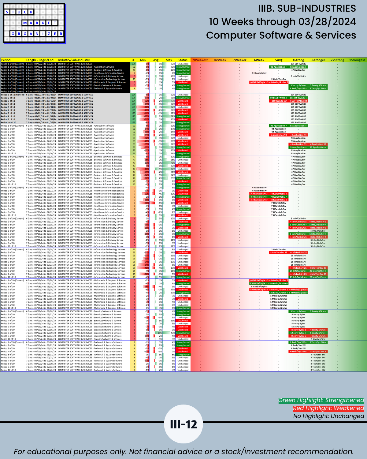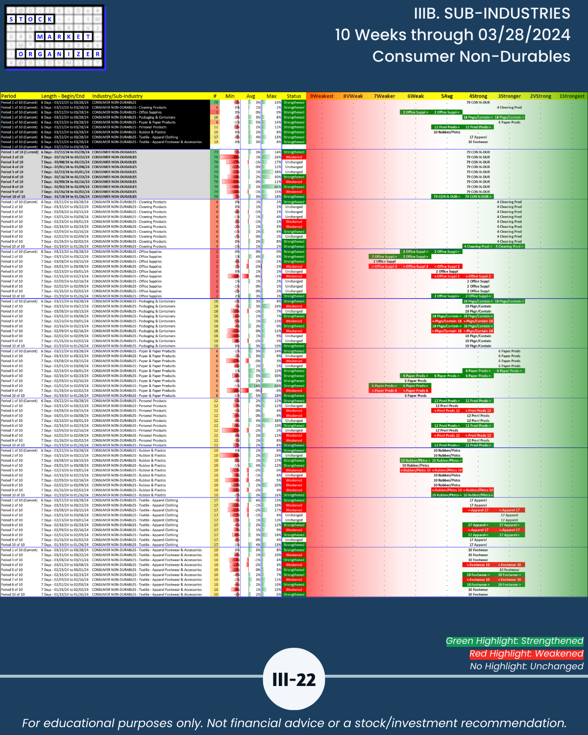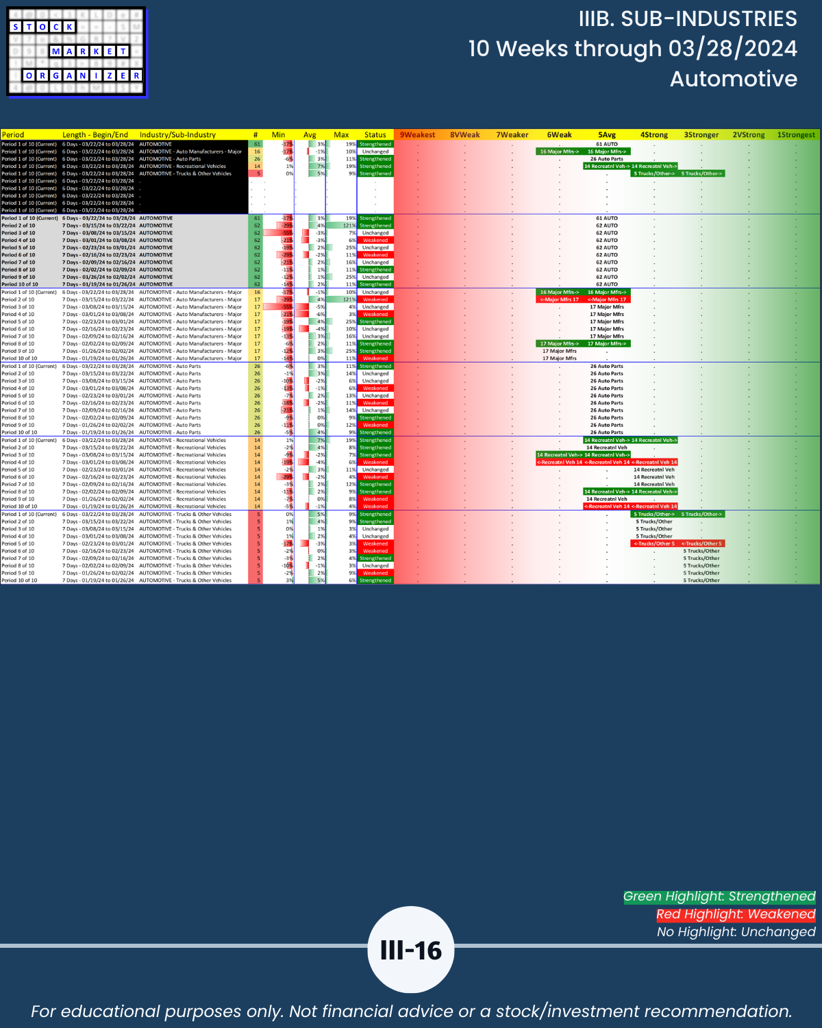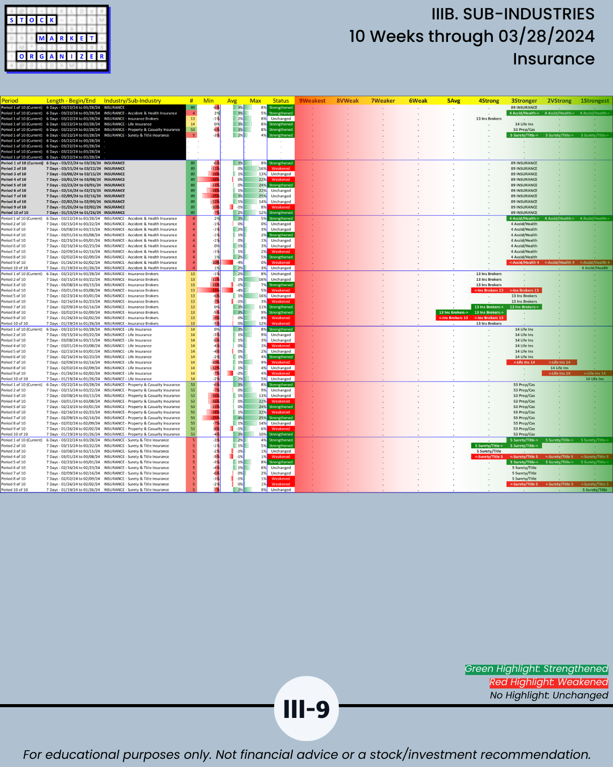 IIIB. SUB-INDUSTRIES 10-Week Strengthening/Weakening