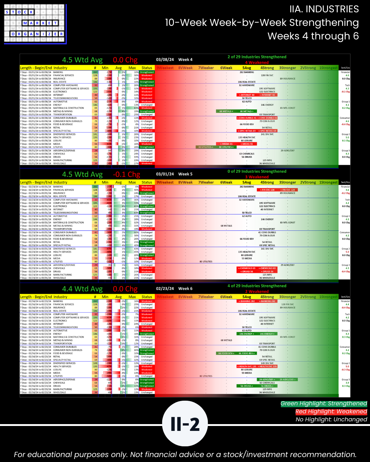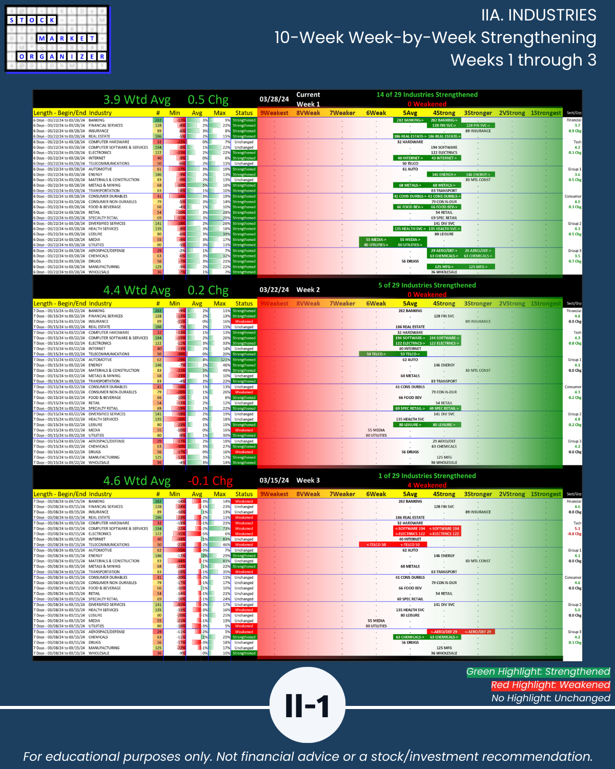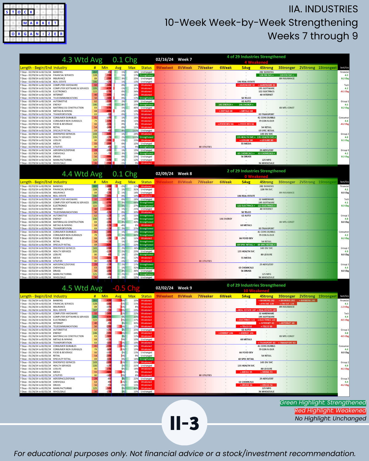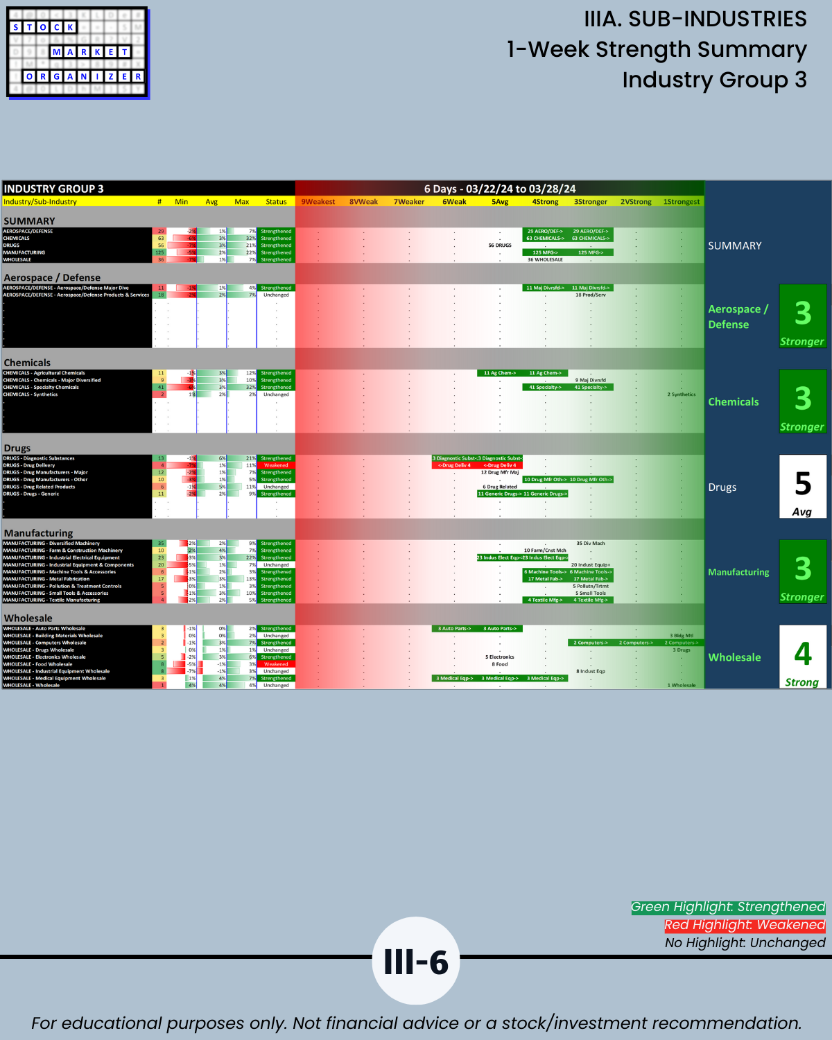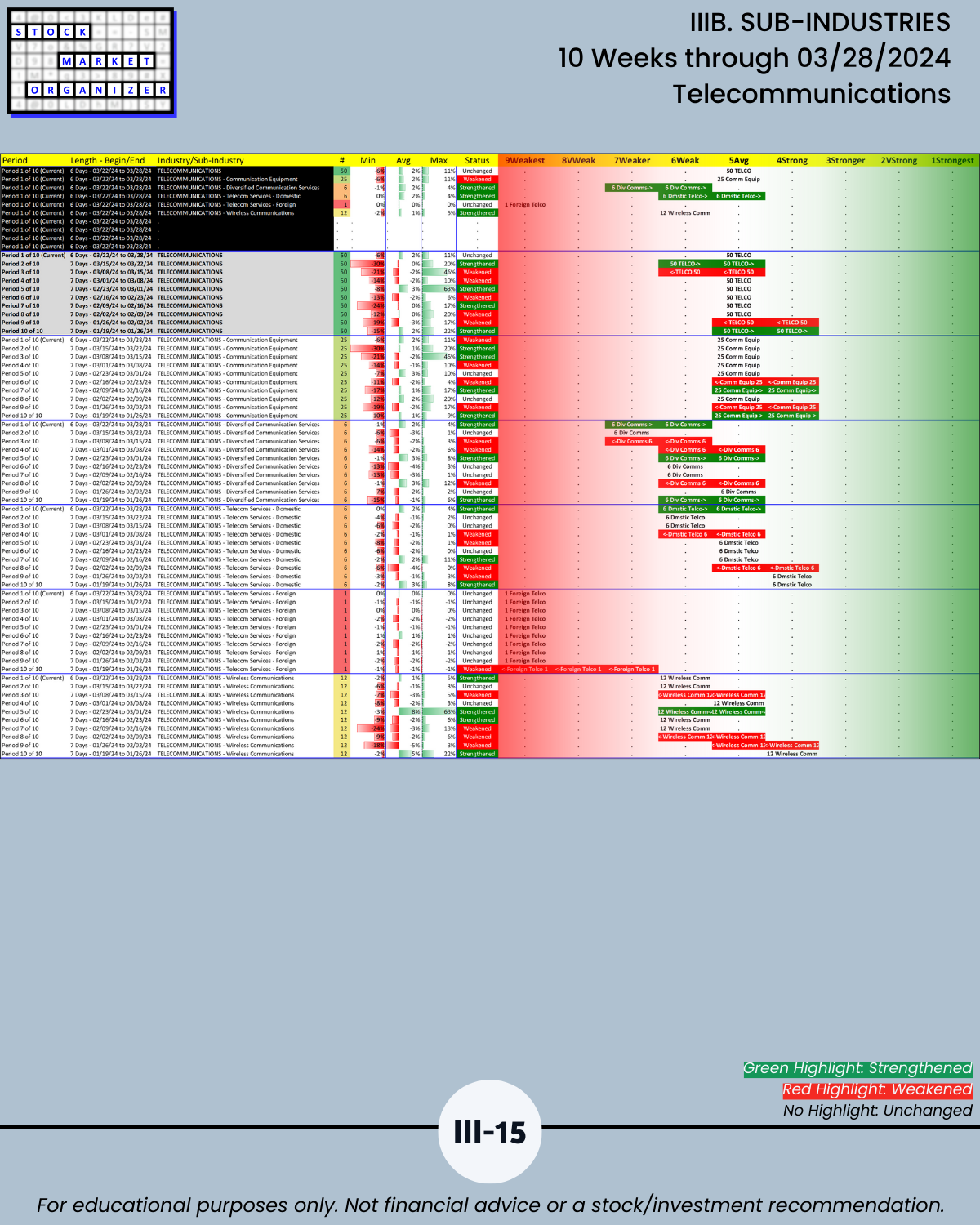 IIIB. SUB-INDUSTRIES 10-Week Strengthening/Weakening