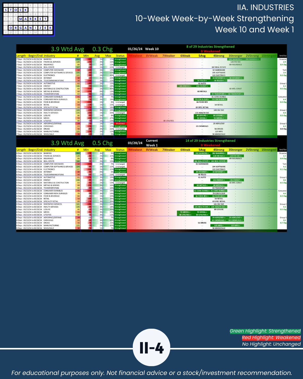 🔹 25 of 29 industries strengthened, 14 enough to increase at least one strength level rating