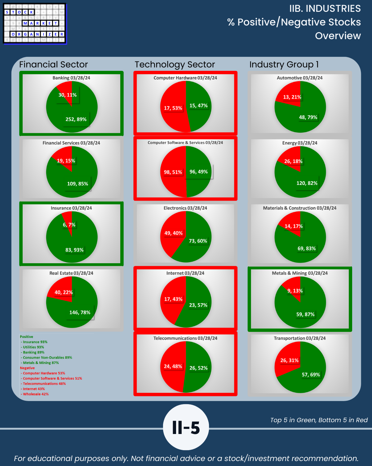 IIB. INDUSTRIES % Positive/Negative Stocks