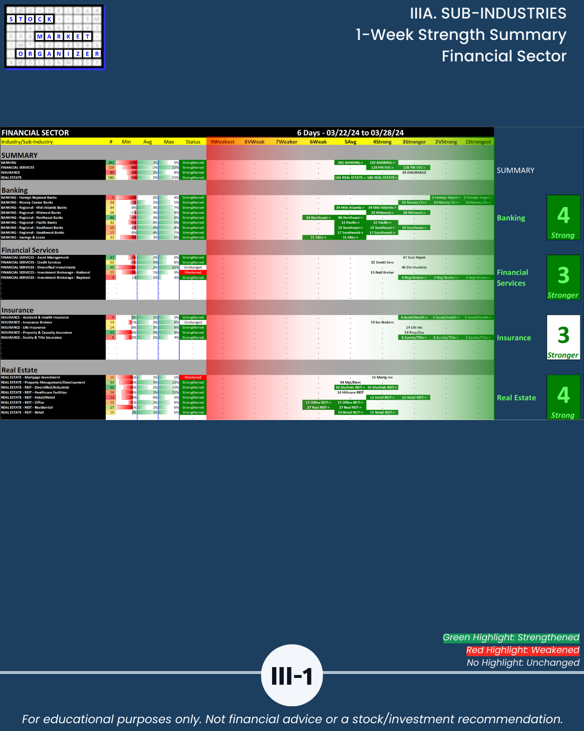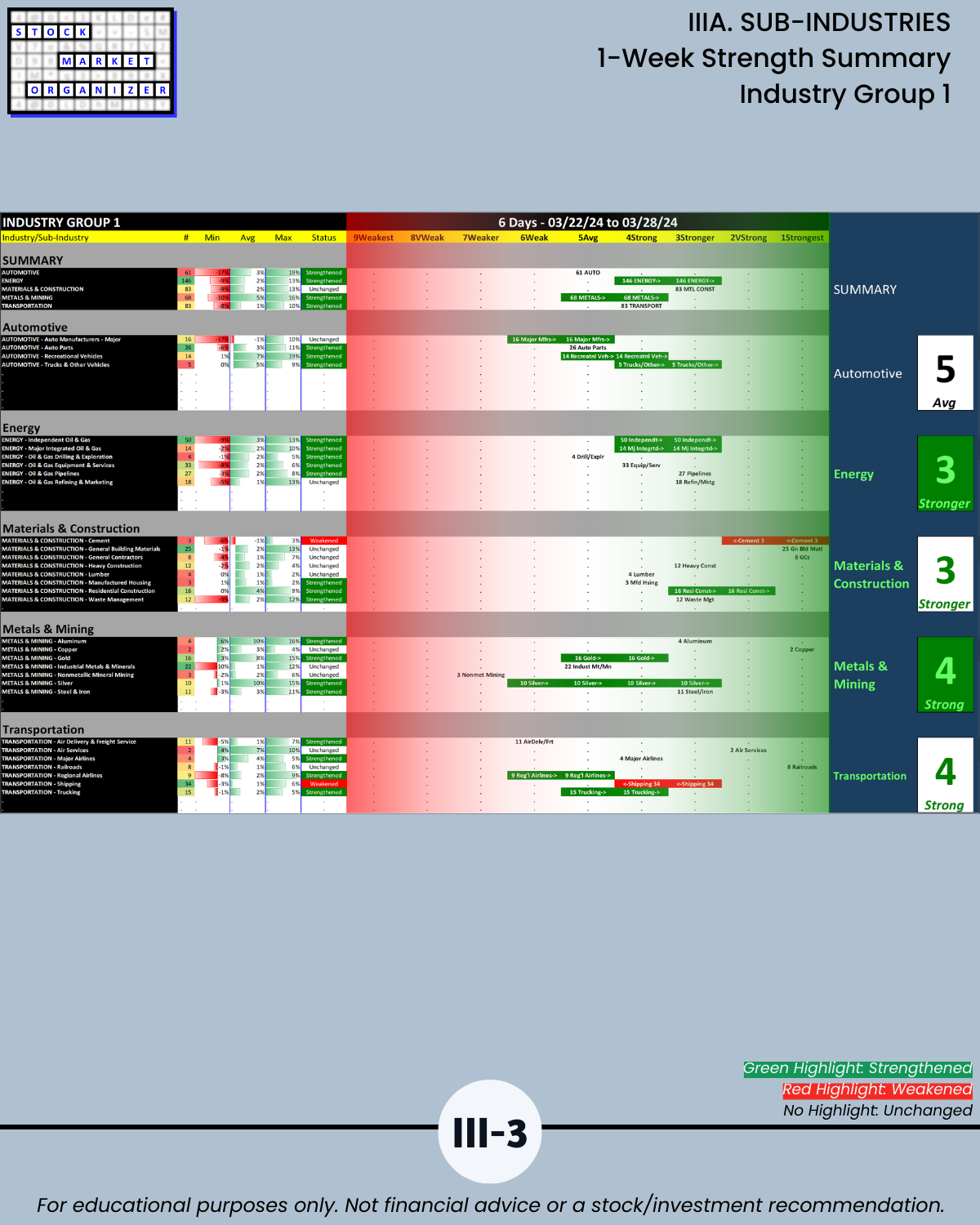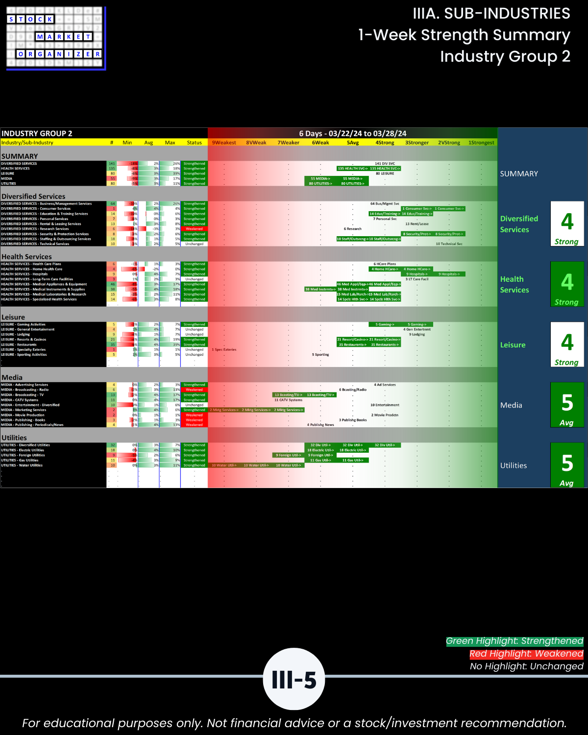 IIIA. SUB-INDUSTRIES 1-Week Strength Summary