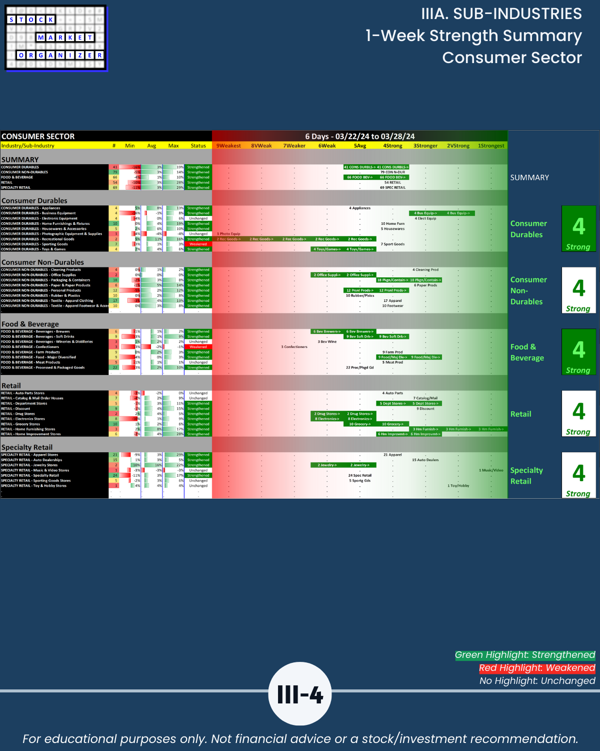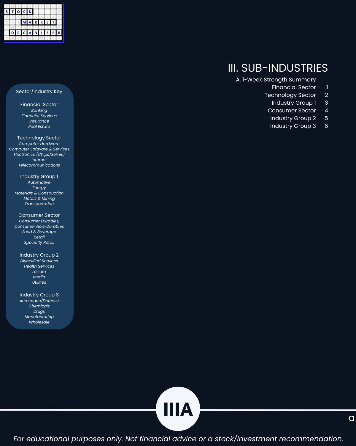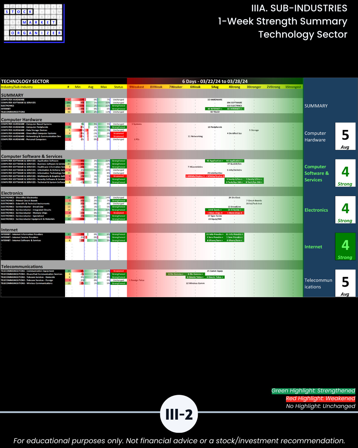 IIIA. SUB-INDUSTRIES 1-Week Strength Summary