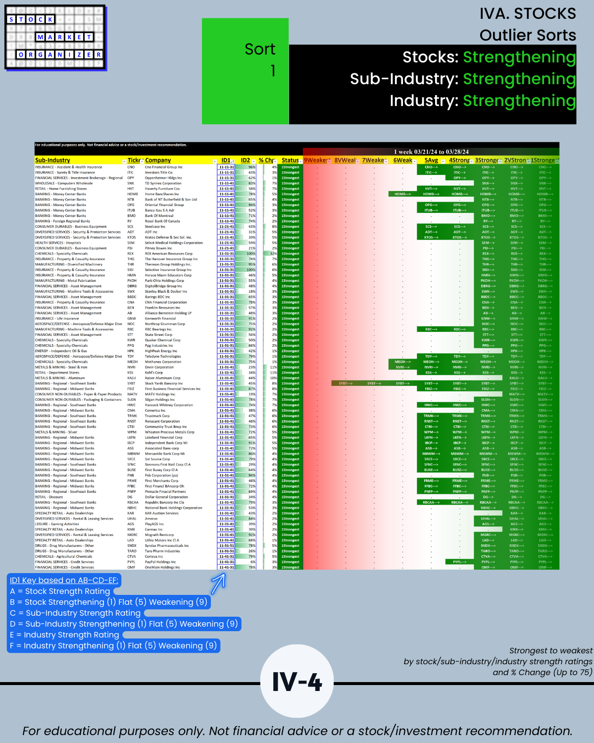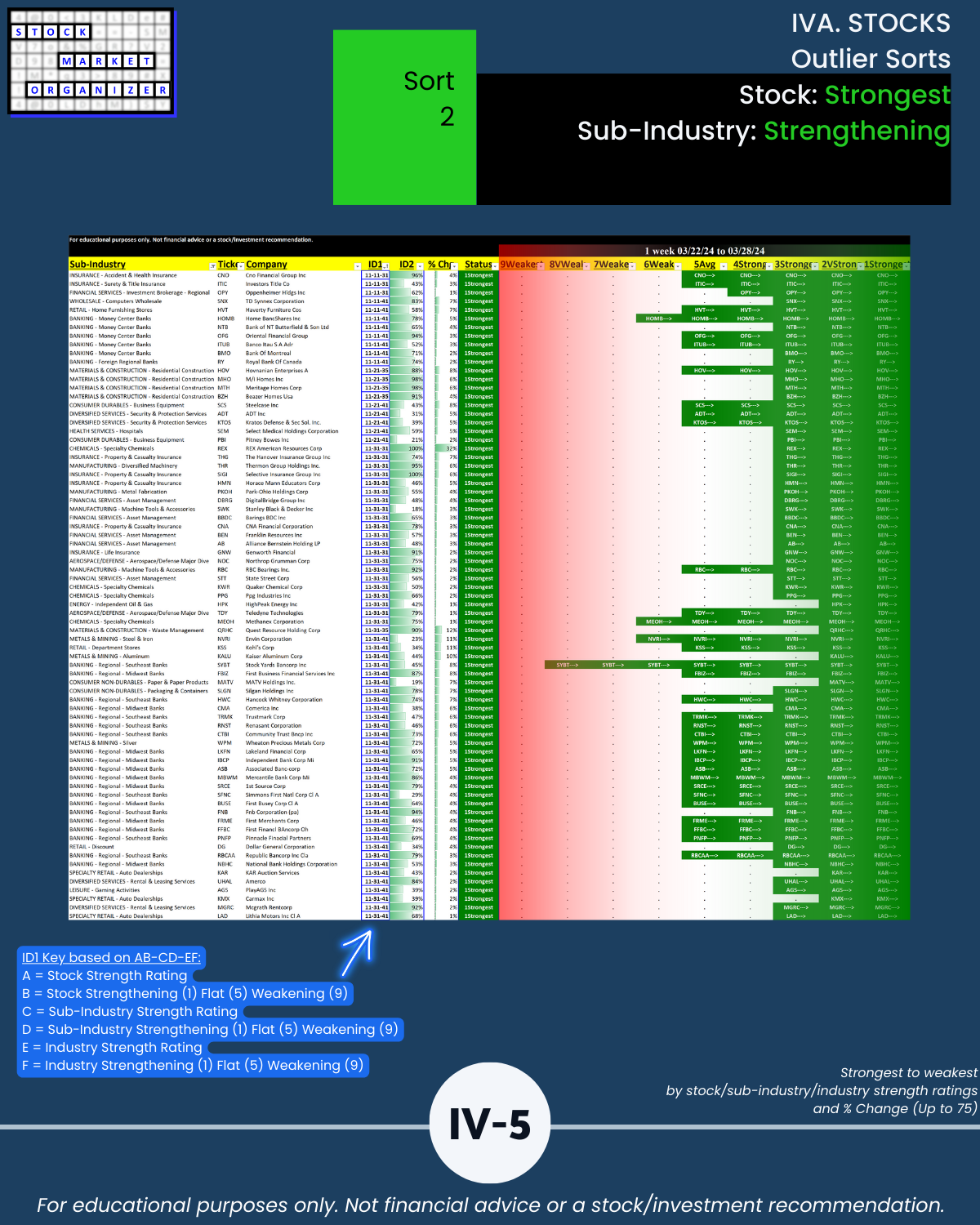 🔹 Longtime industry leaders Insurance and Materials & Construction were joined at the Stronger rating (3rd strongest of 9 strength levels) by the following 5 industries: