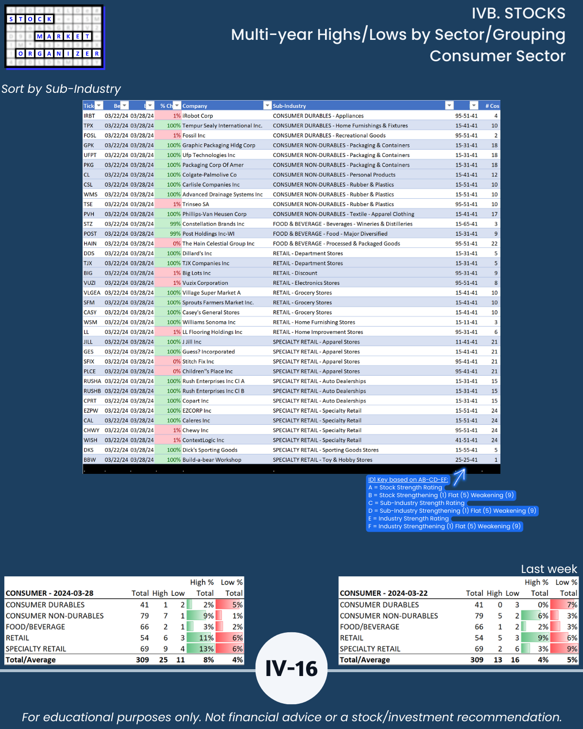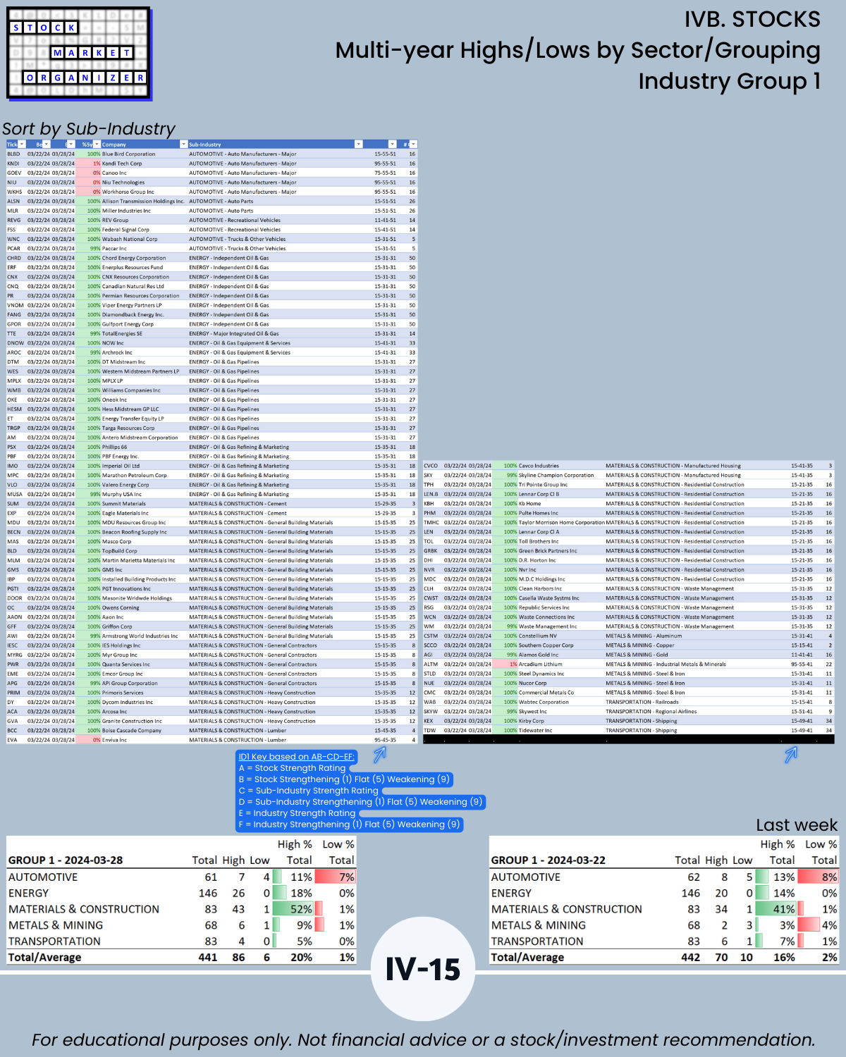 IVB. STOCKS Multi-Year Highs/Lows by Sector/Grouping
