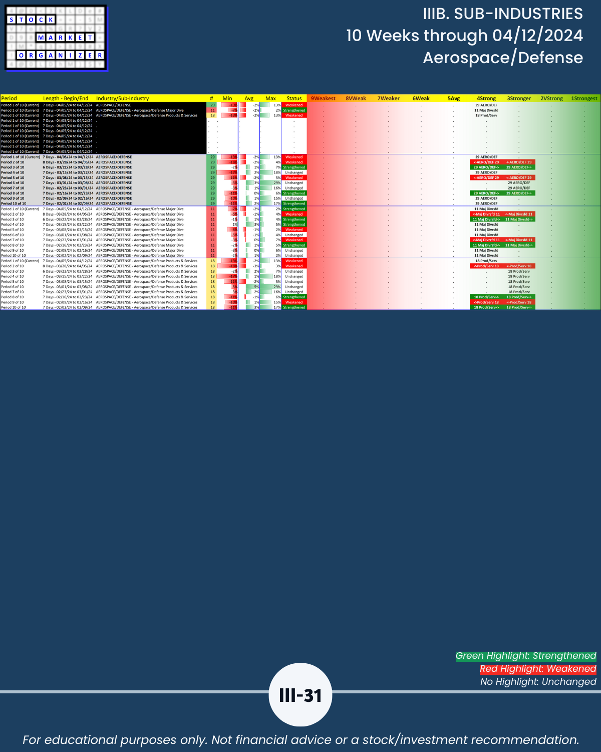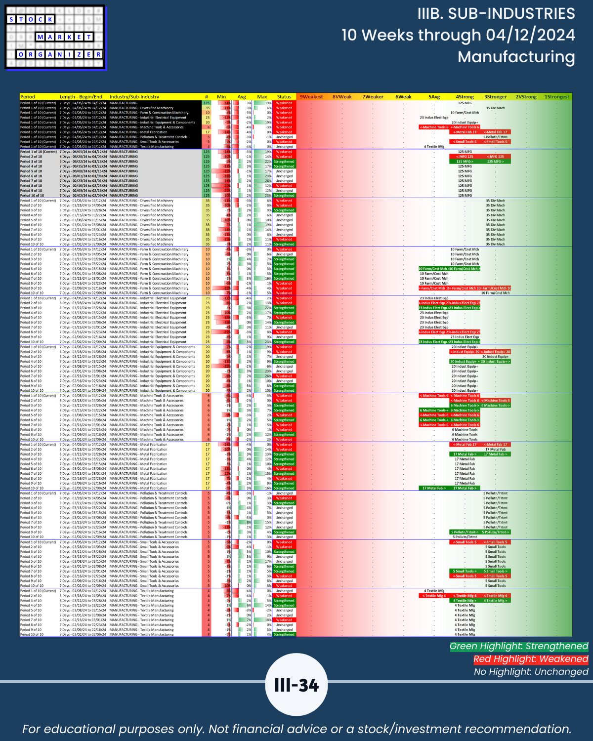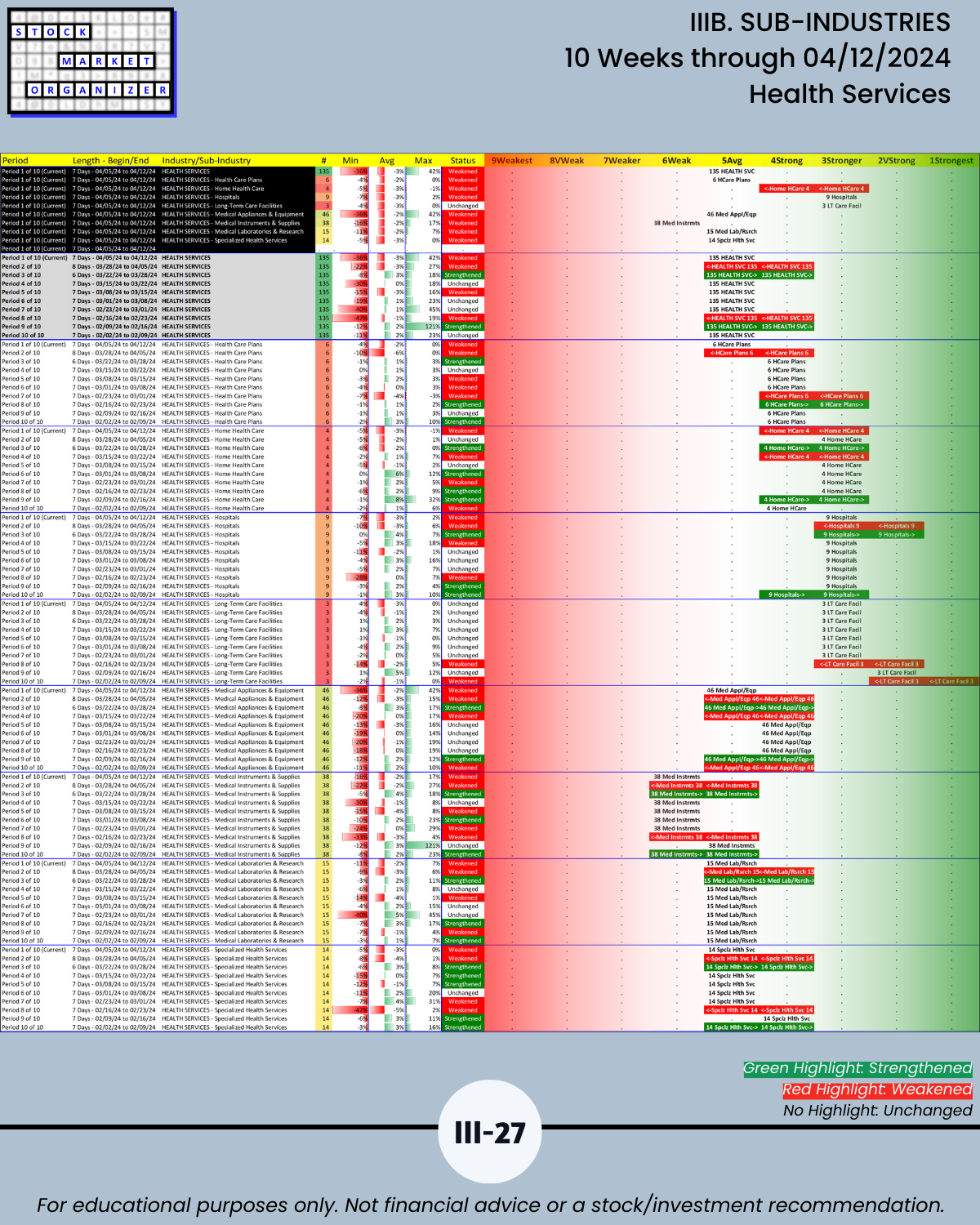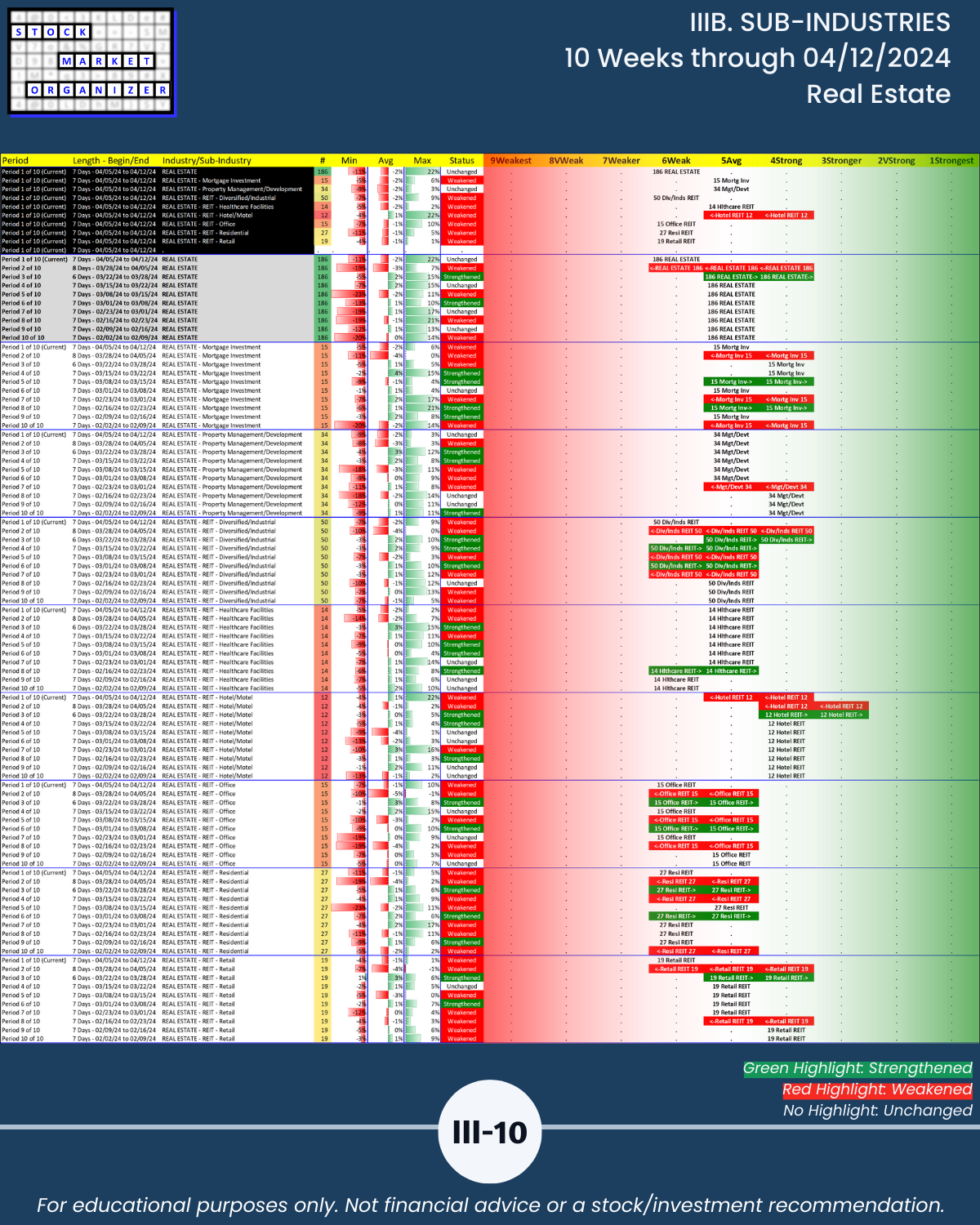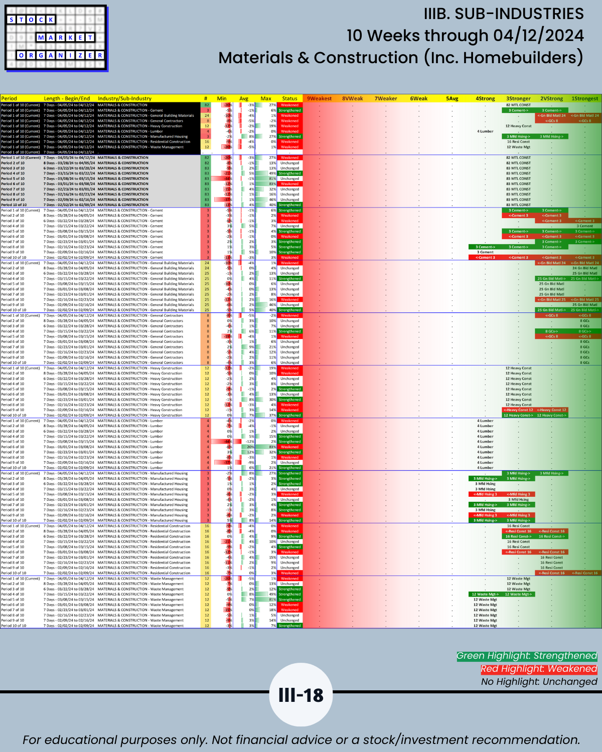 IIIB. SUB-INDUSTRIES 10-Week Strengthening/Weakening