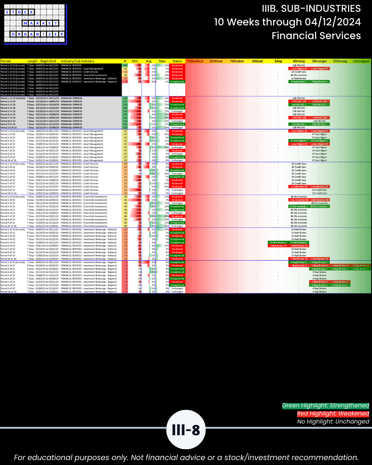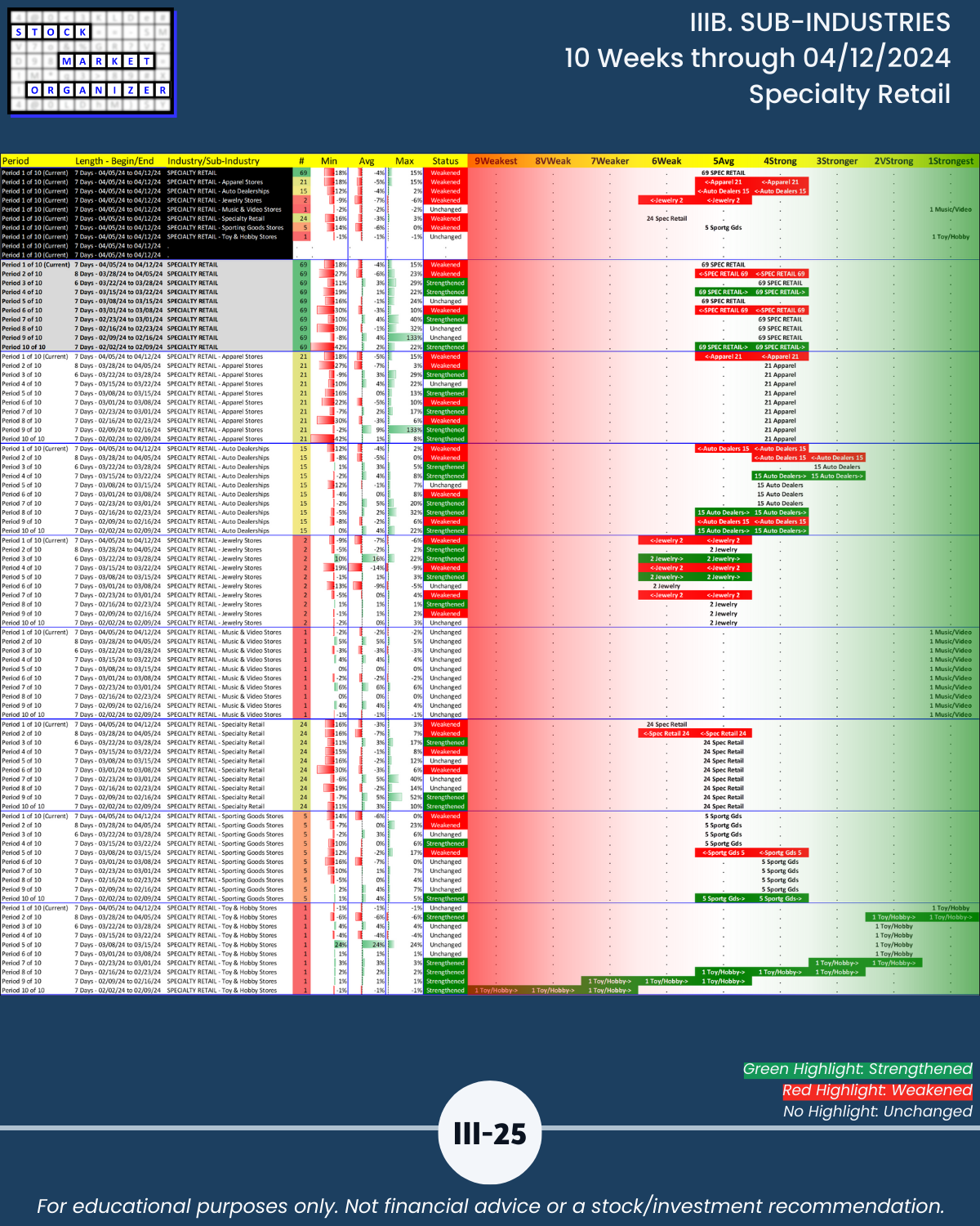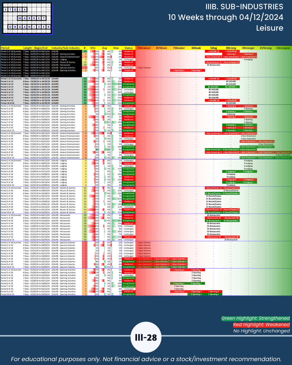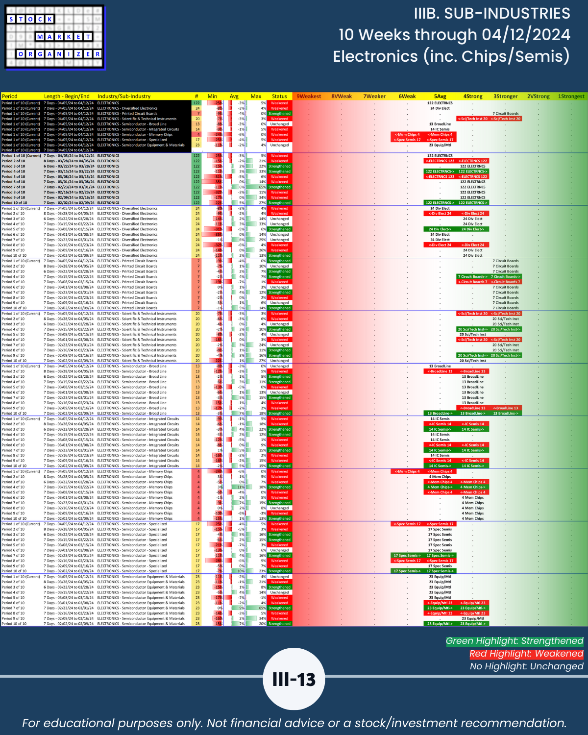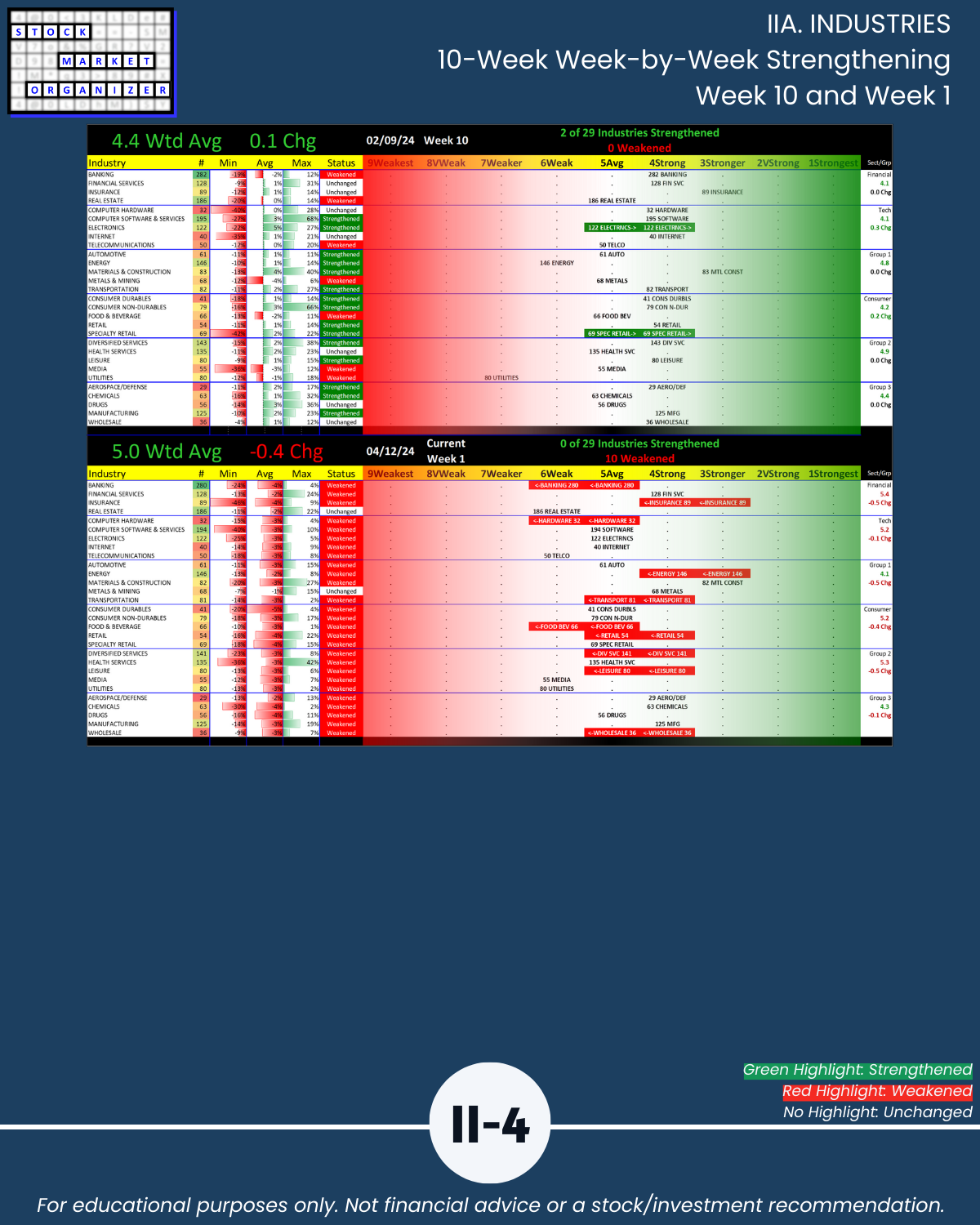 IIIB. SUB-INDUSTRIES 10-Week Strengthening/Weakening
