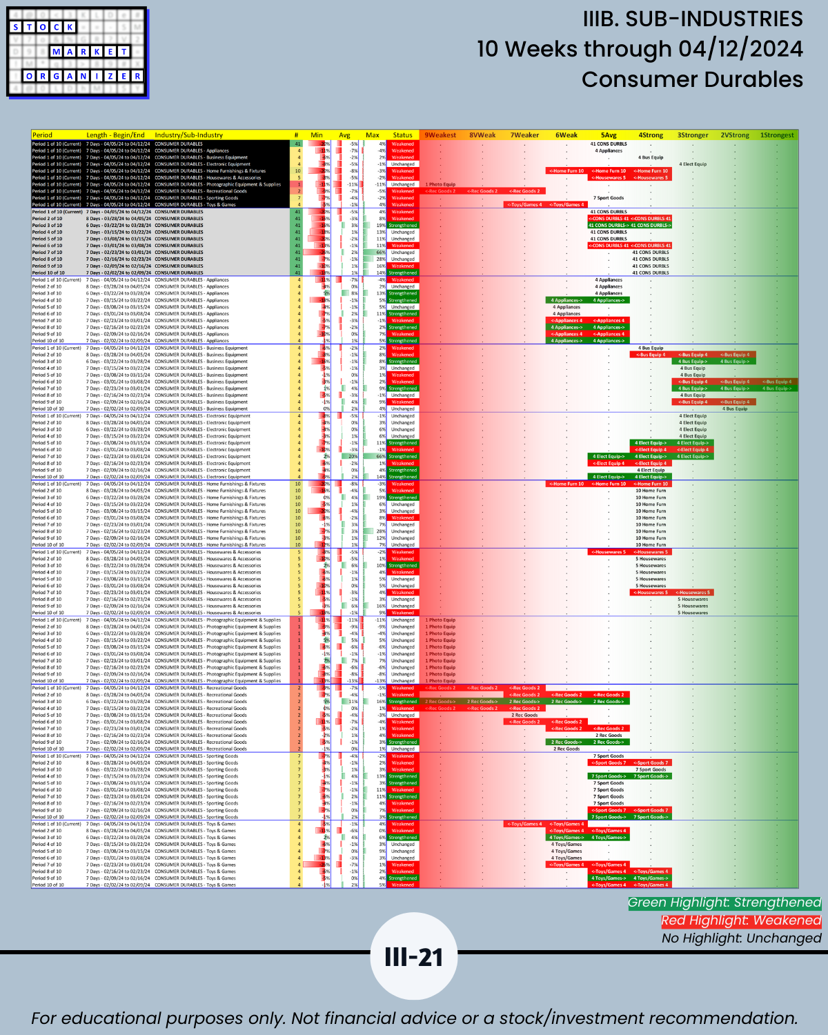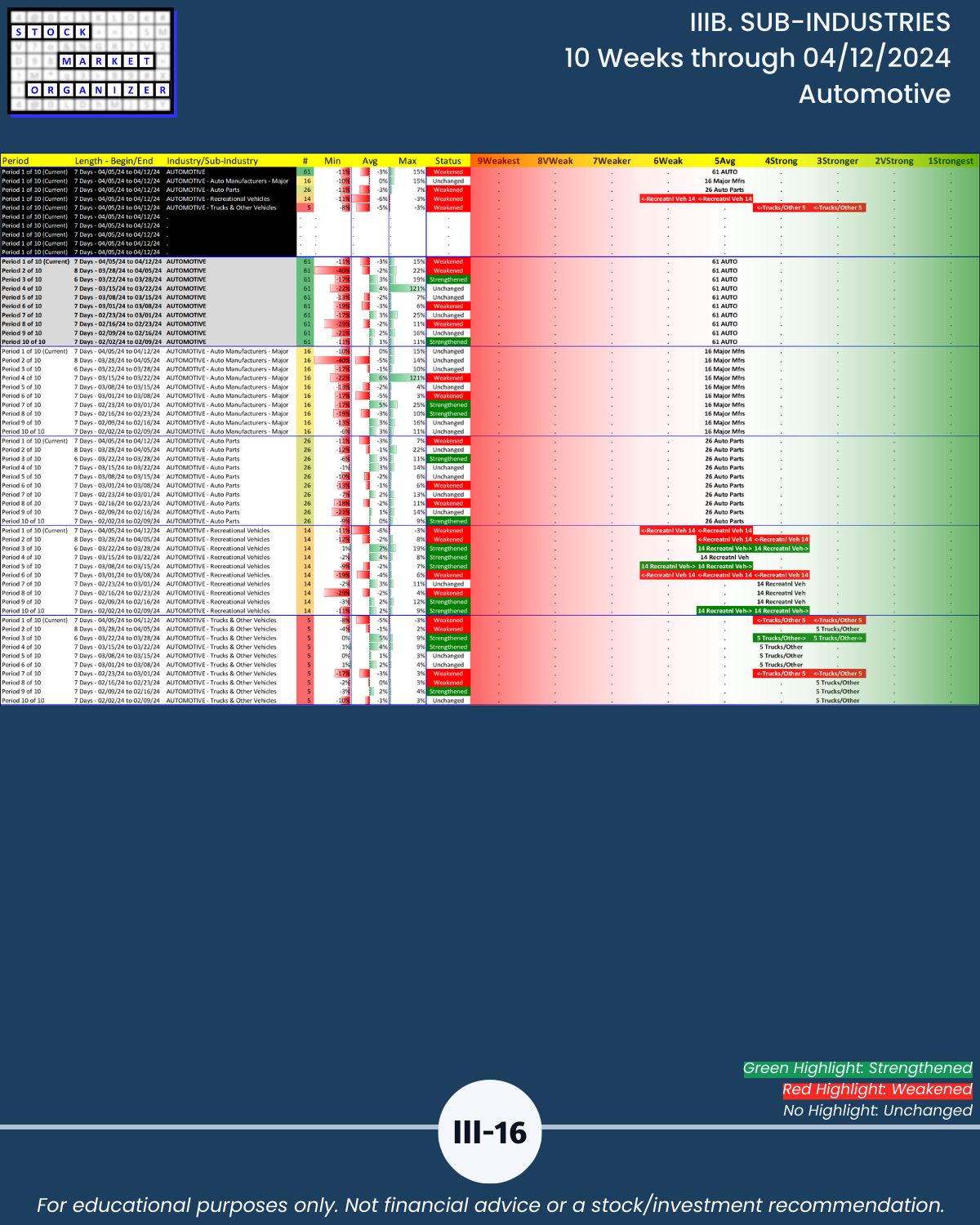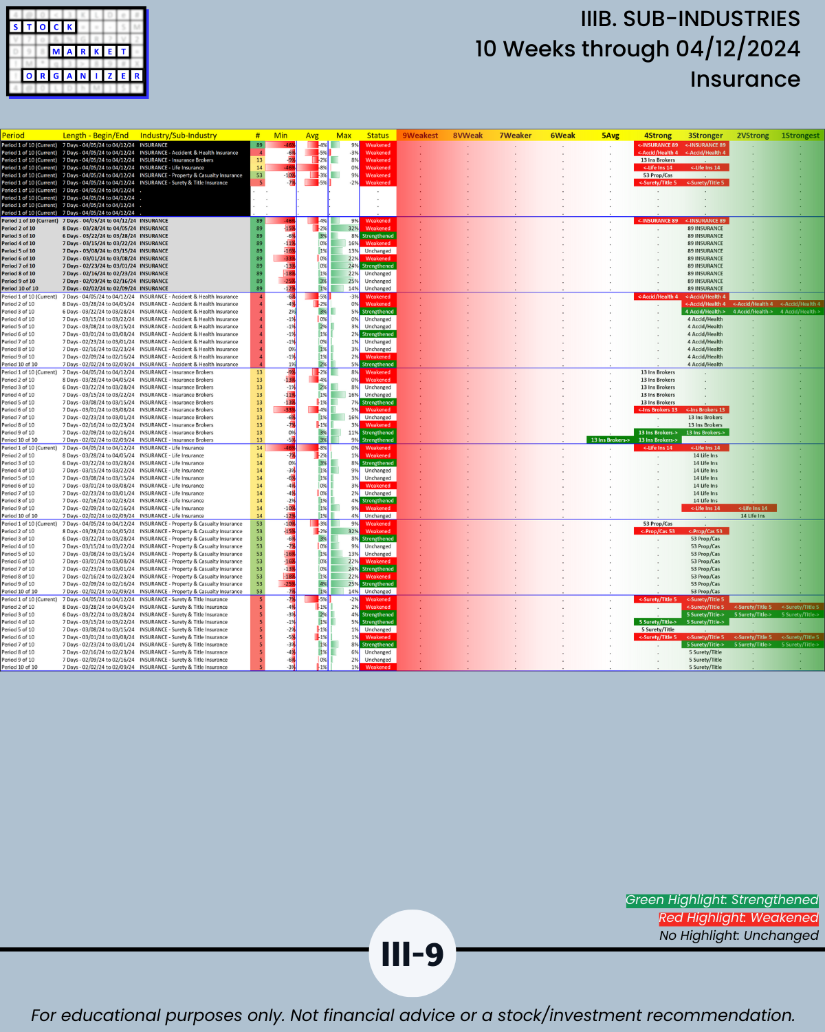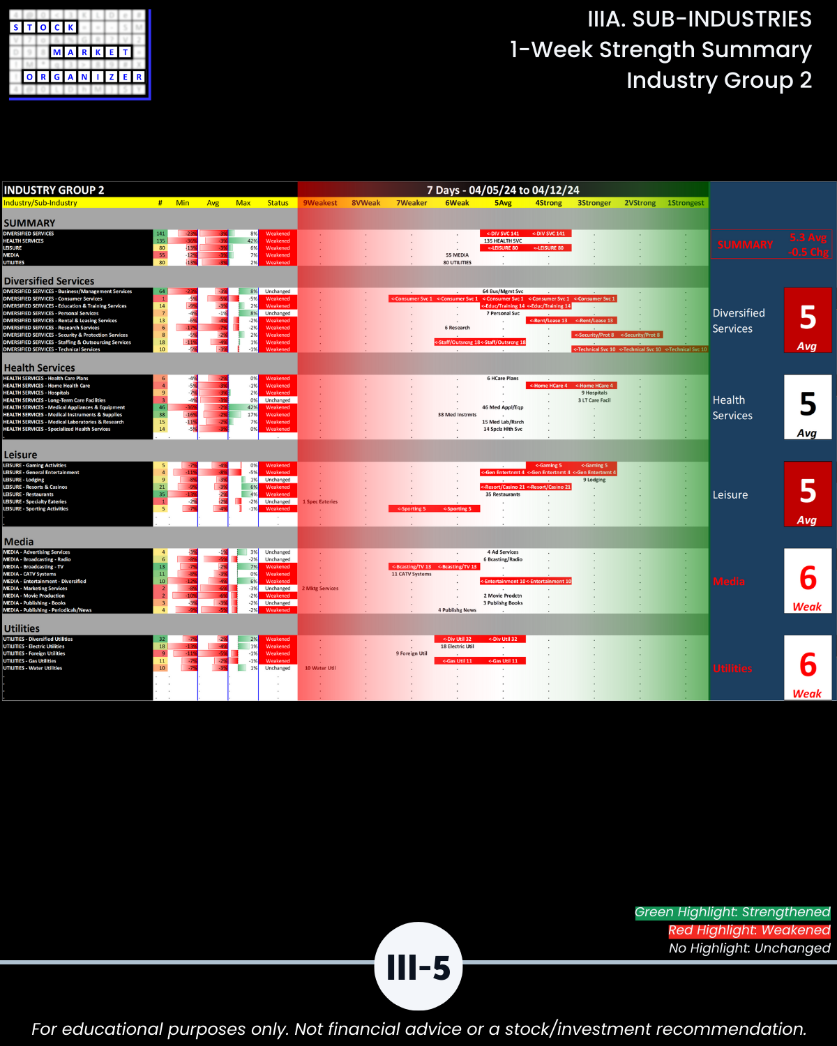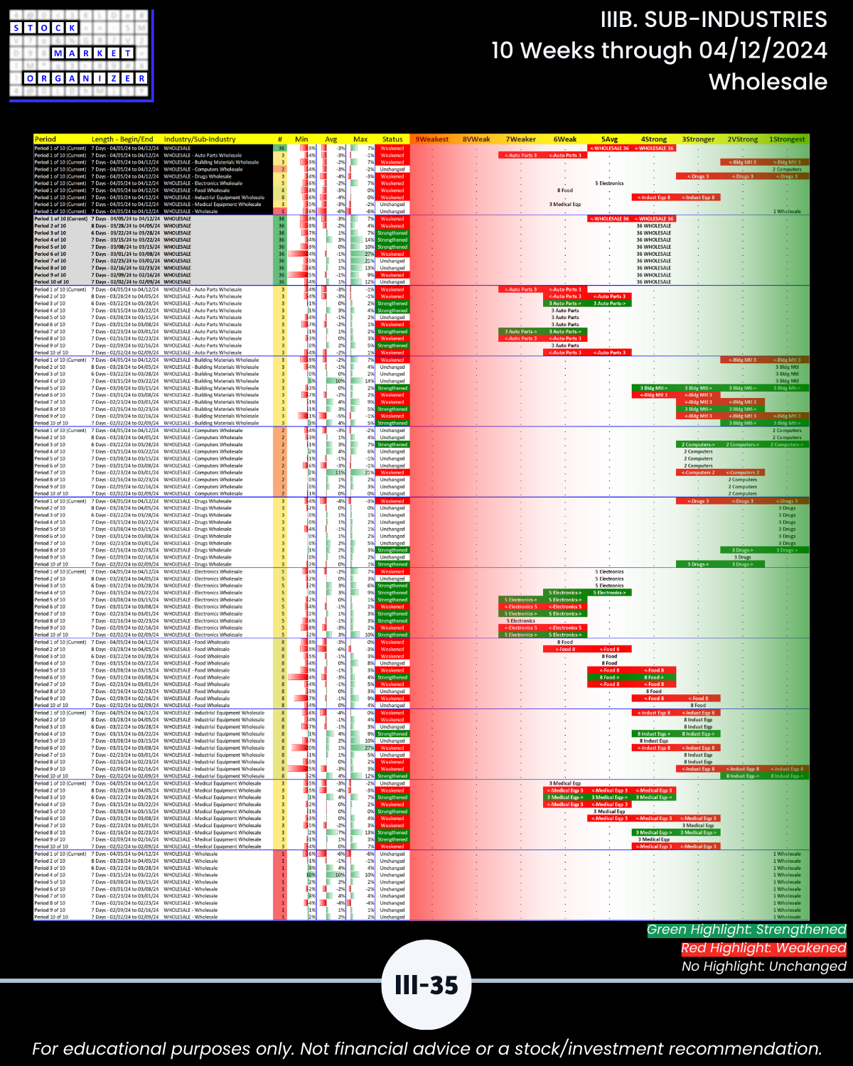 IIIB. SUB-INDUSTRIES 10-Week Strengthening/Weakening