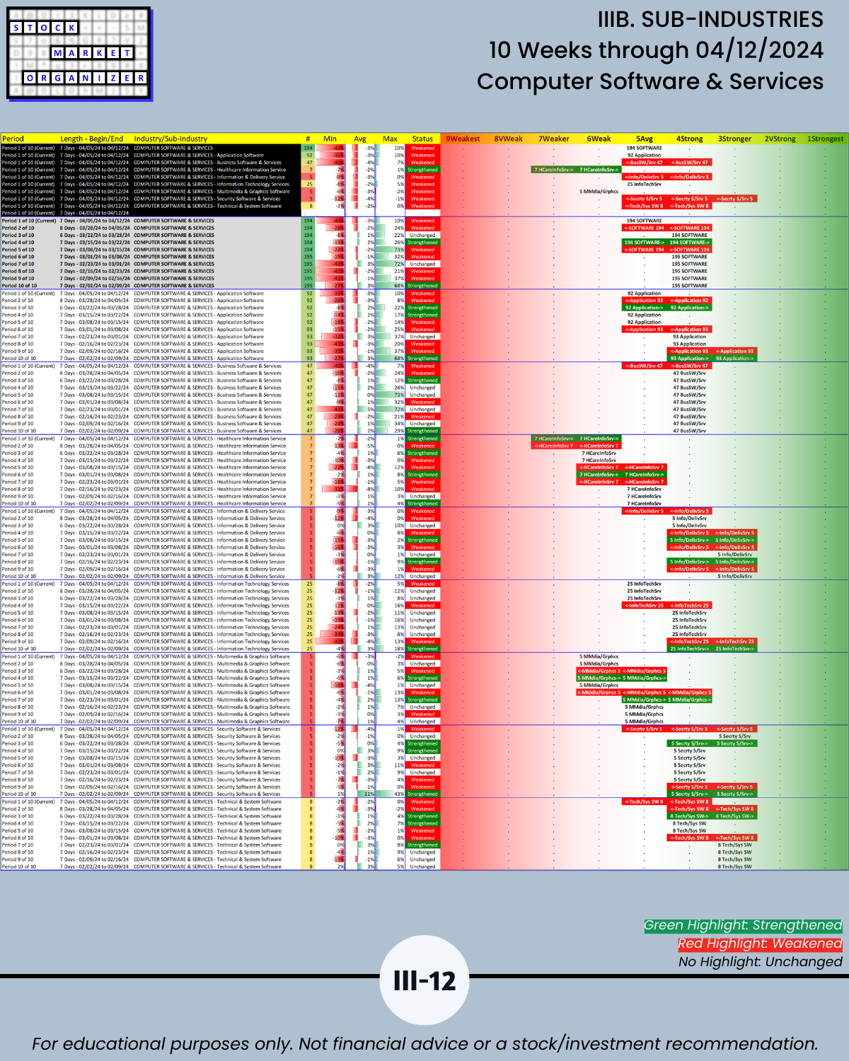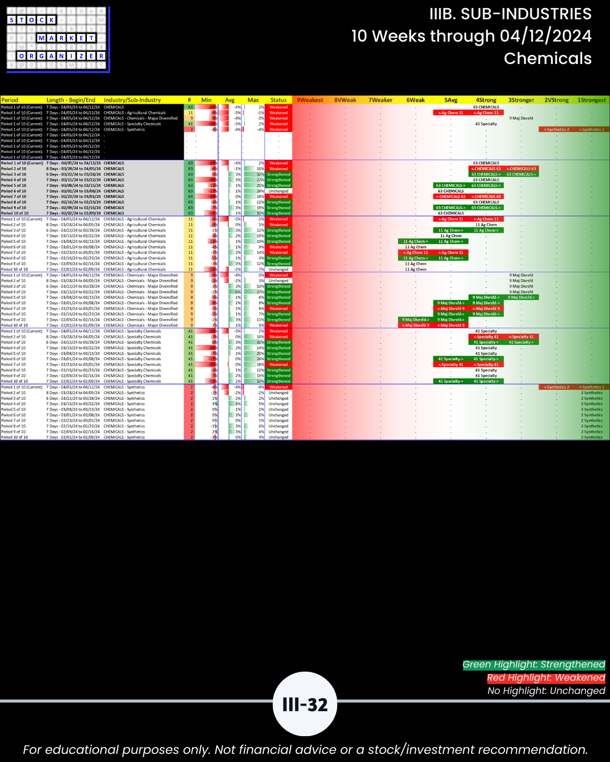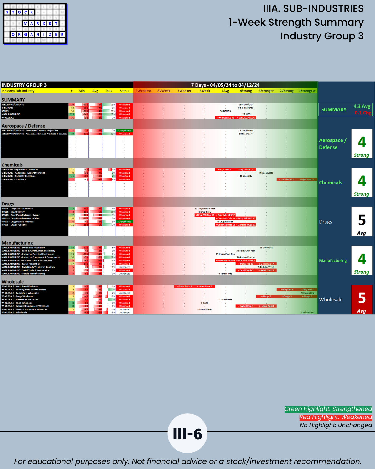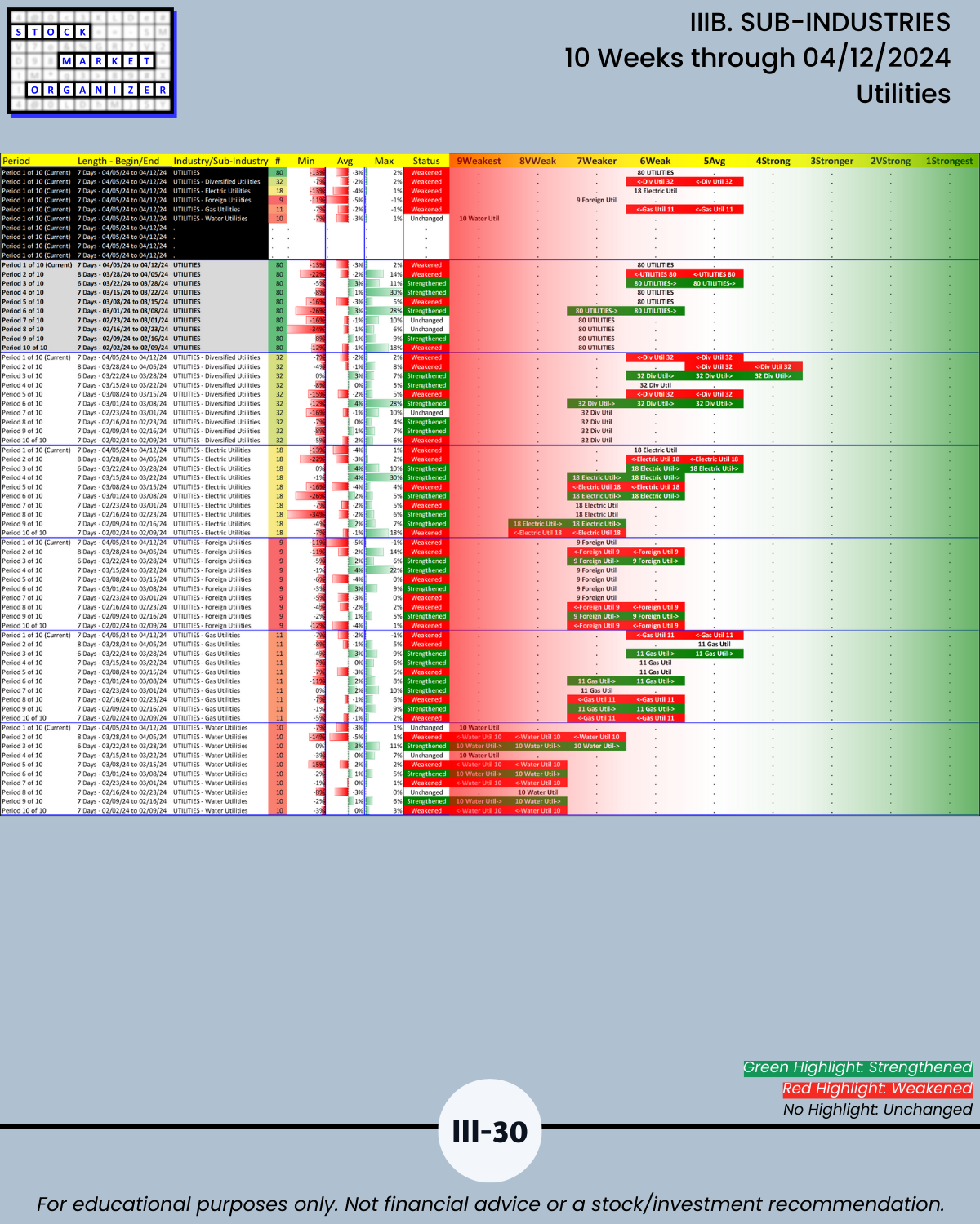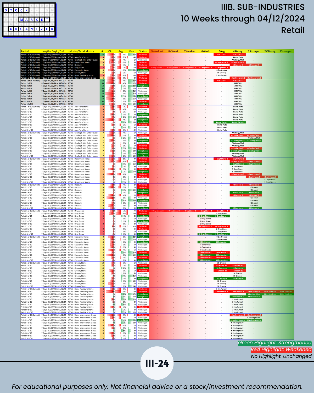 IIIB. SUB-INDUSTRIES 10-Week Strengthening/Weakening