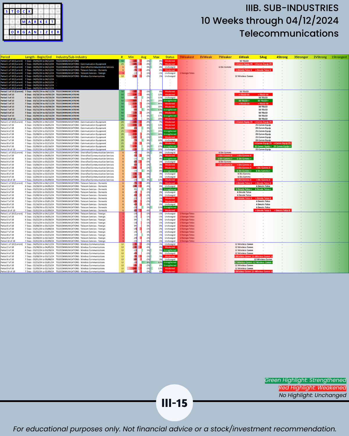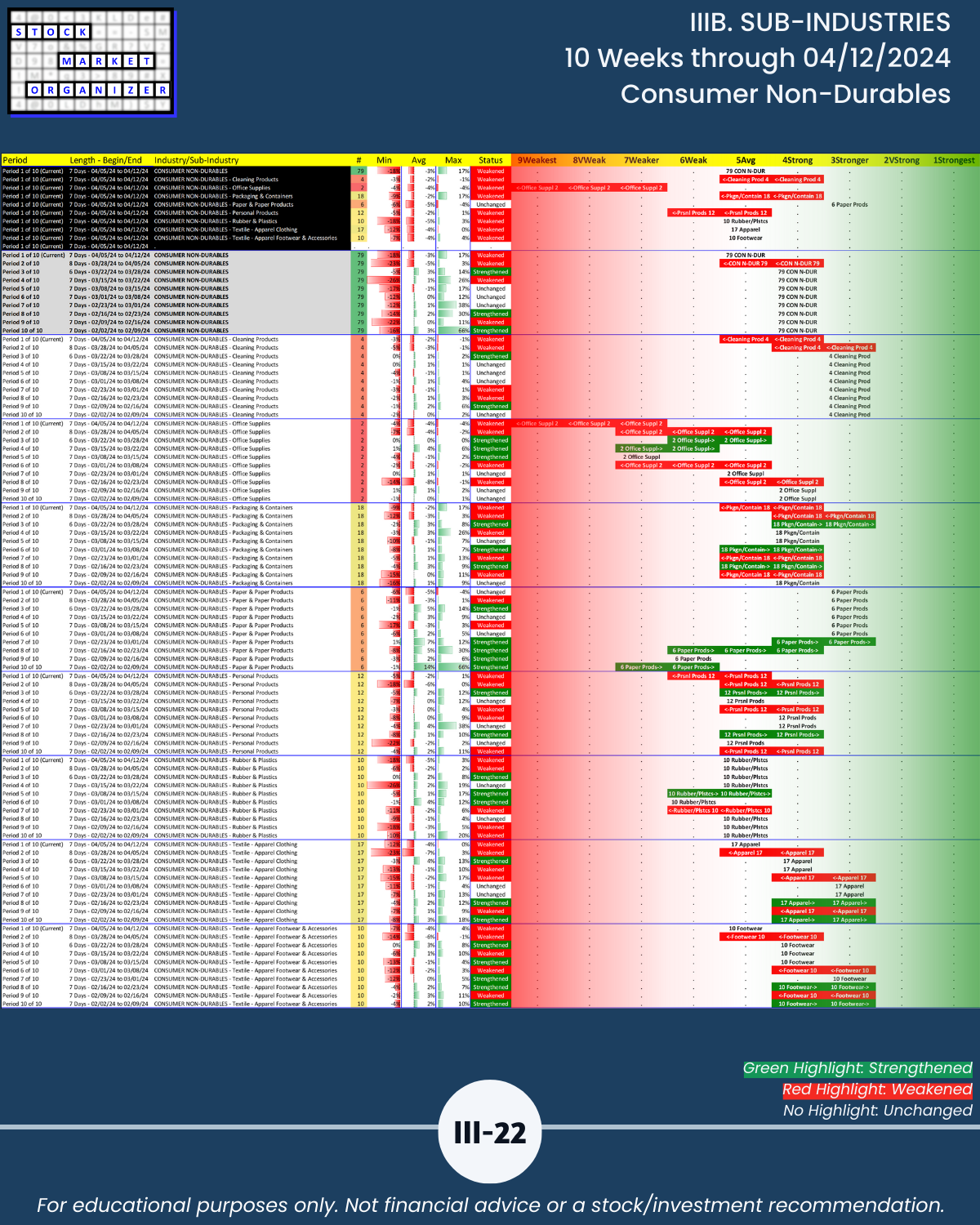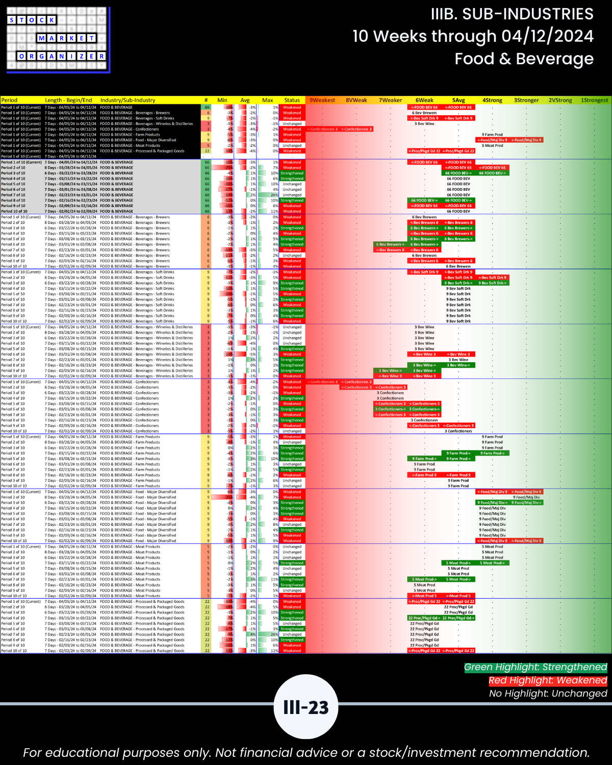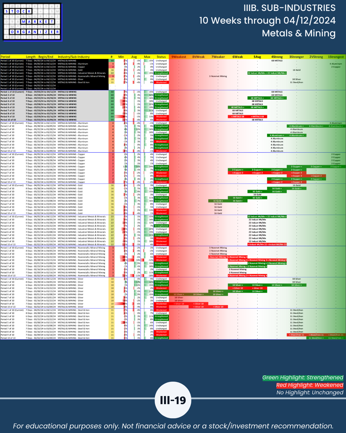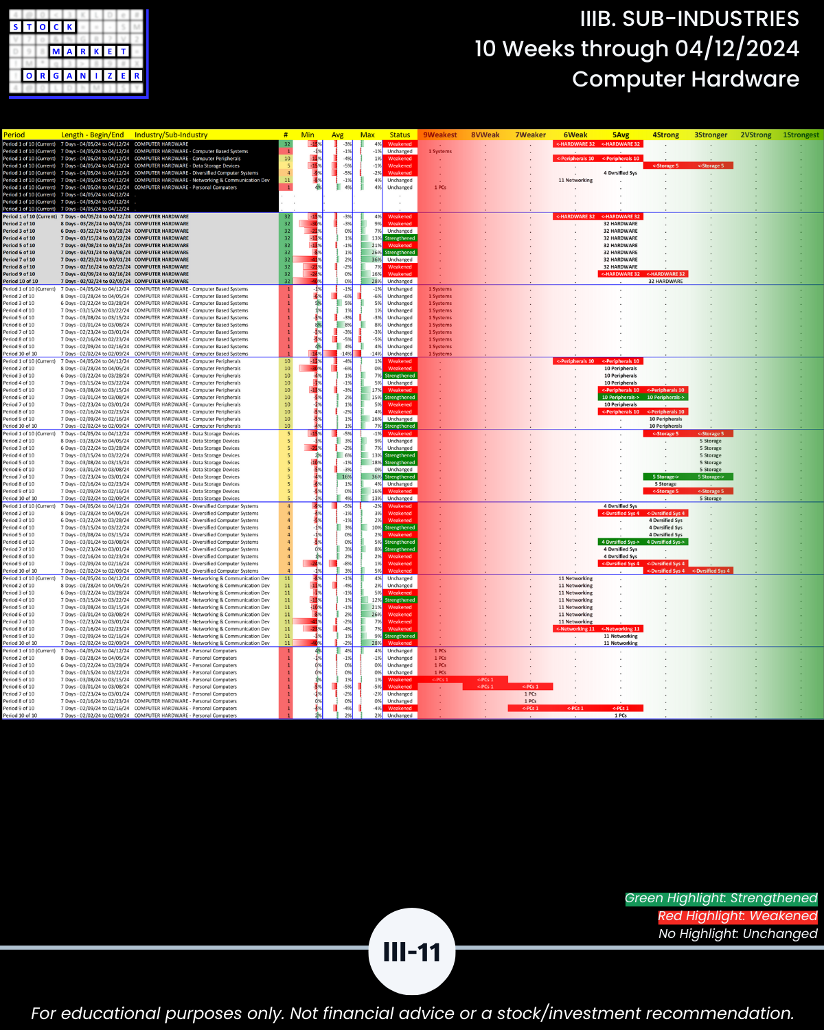 IIIB. SUB-INDUSTRIES 10-Week Strengthening/Weakening