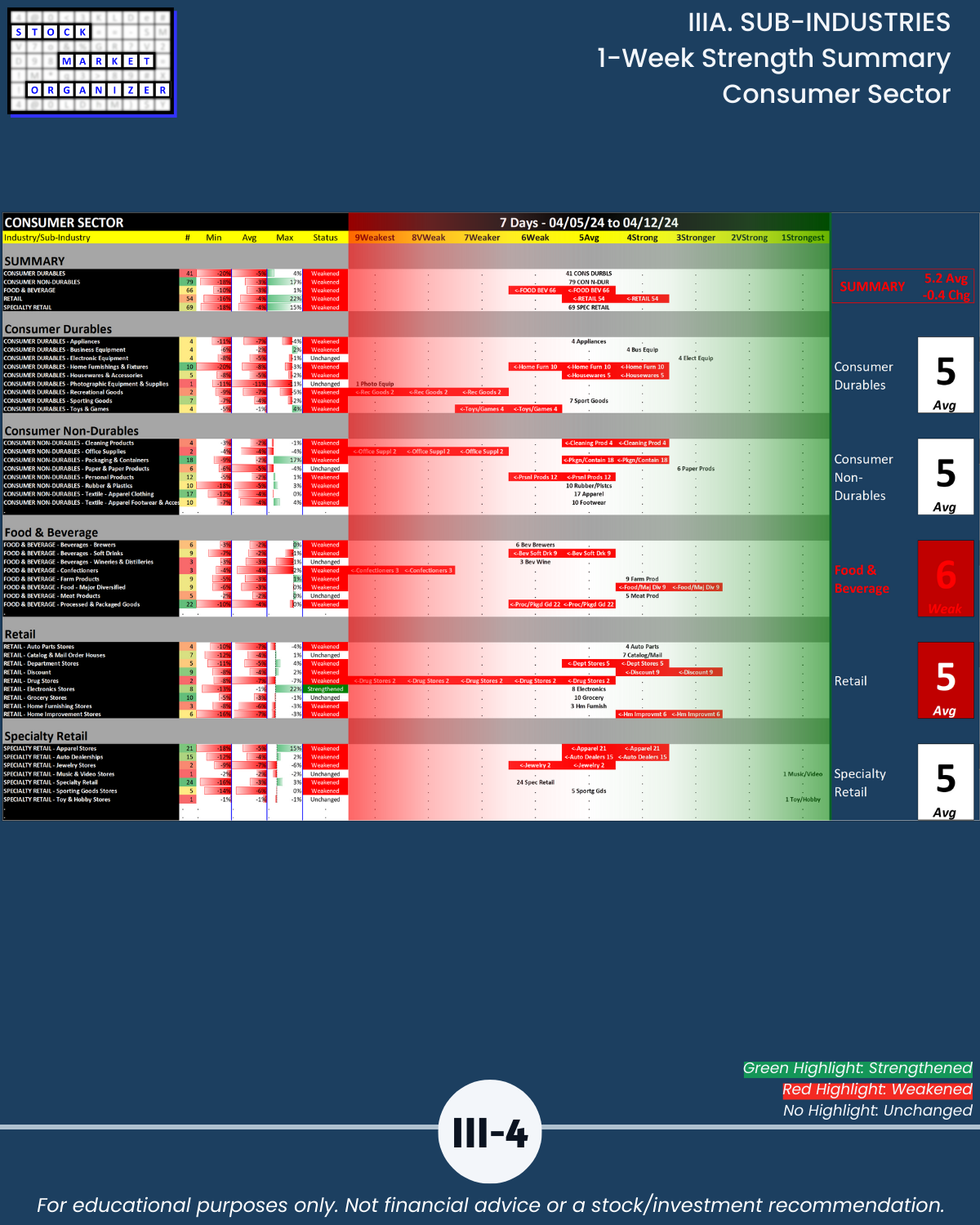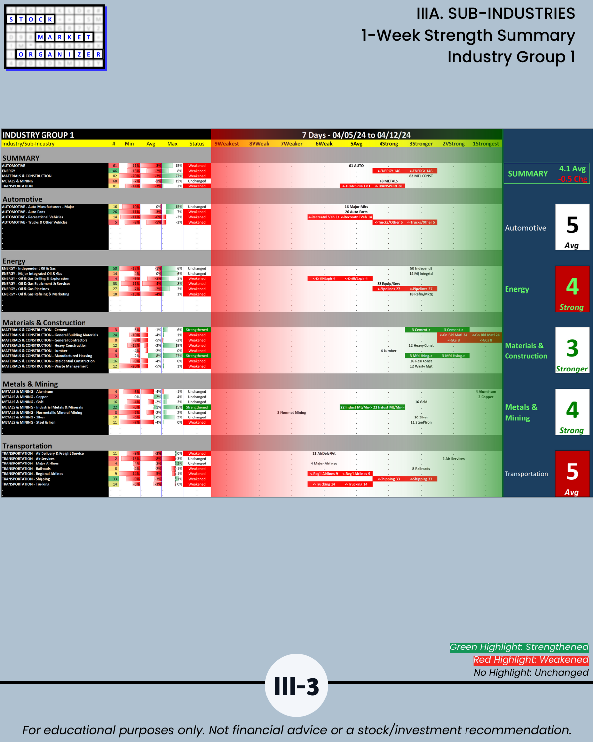 IIIA. SUB-INDUSTRIES 1-Week Strength Summary