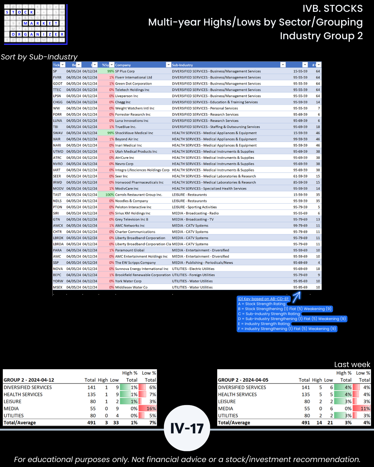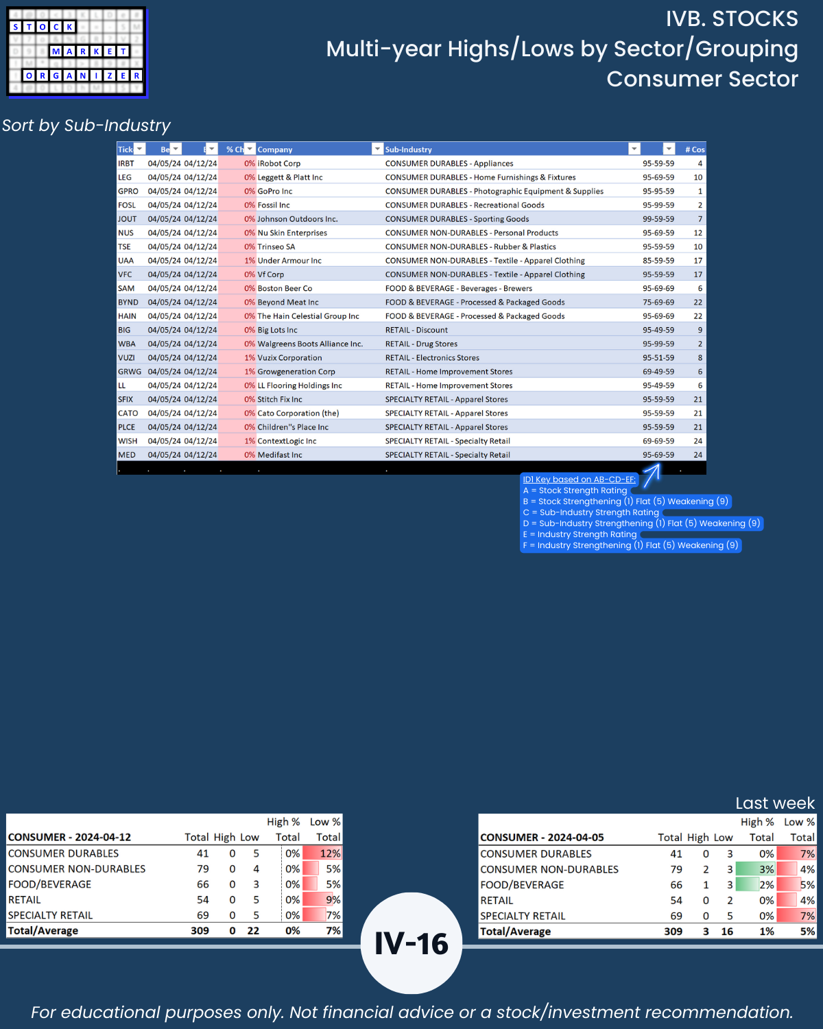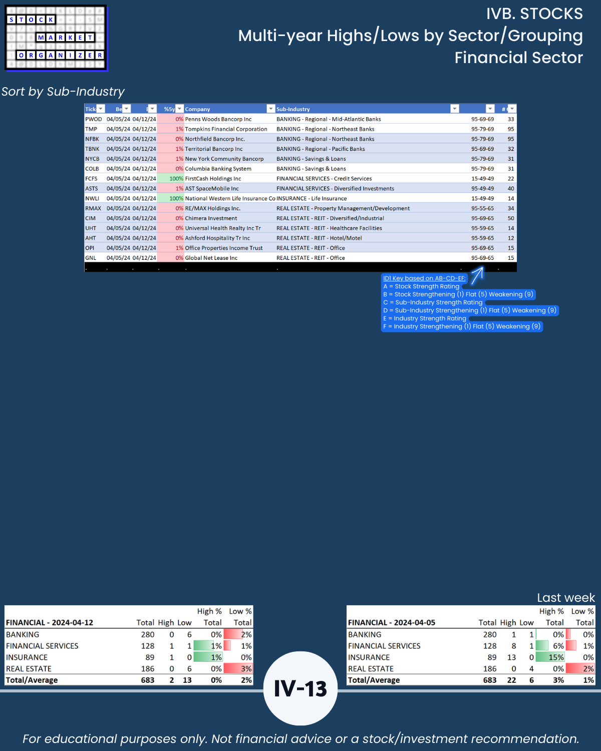 IVB. STOCKS Multi-Year Highs/Lows by Sector/Grouping