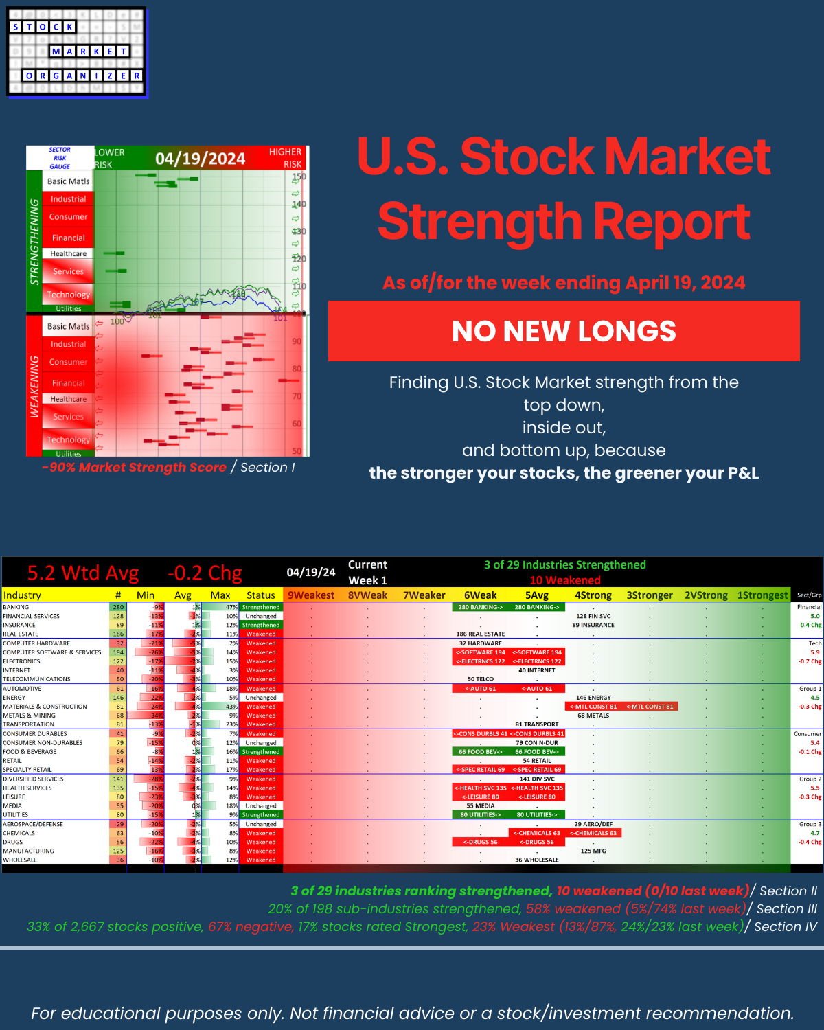 SMO Exclusive: U.S. Stock Market Strength Report 2024-04-19 (no new Longs)
