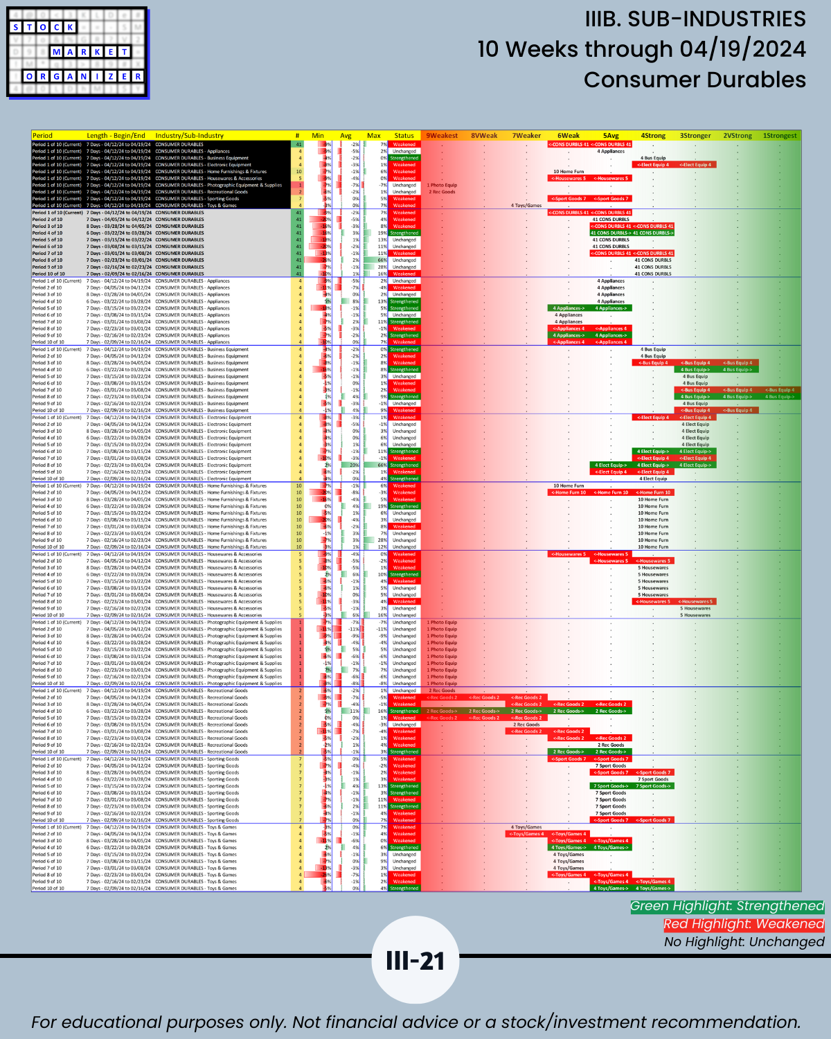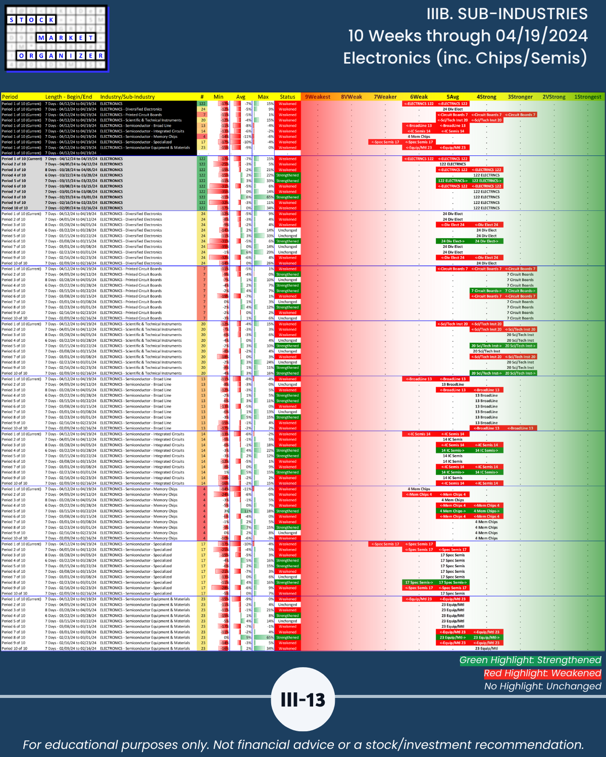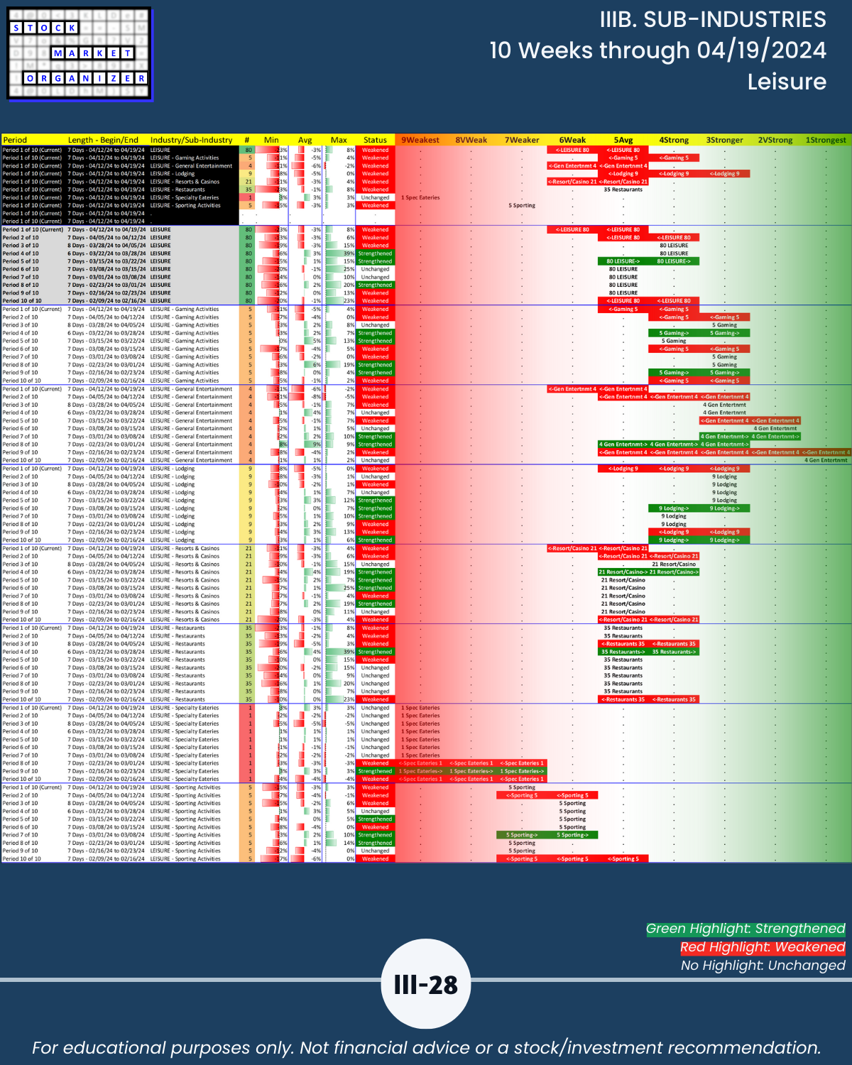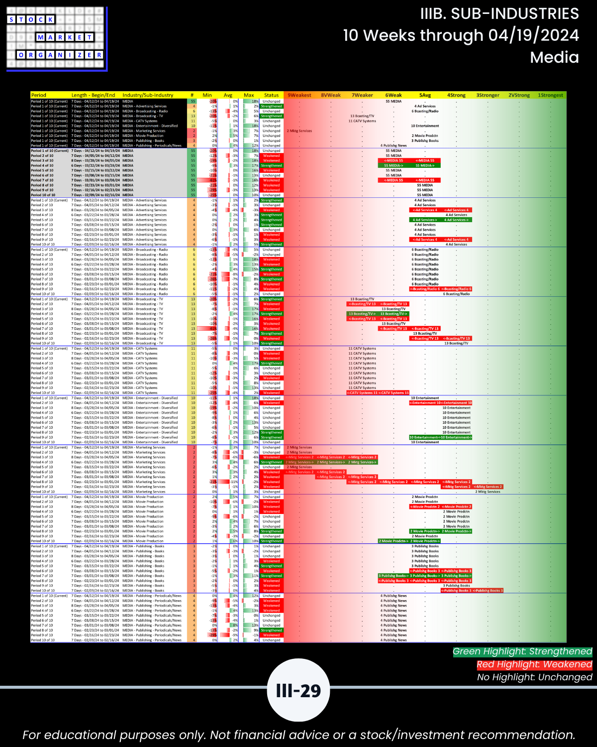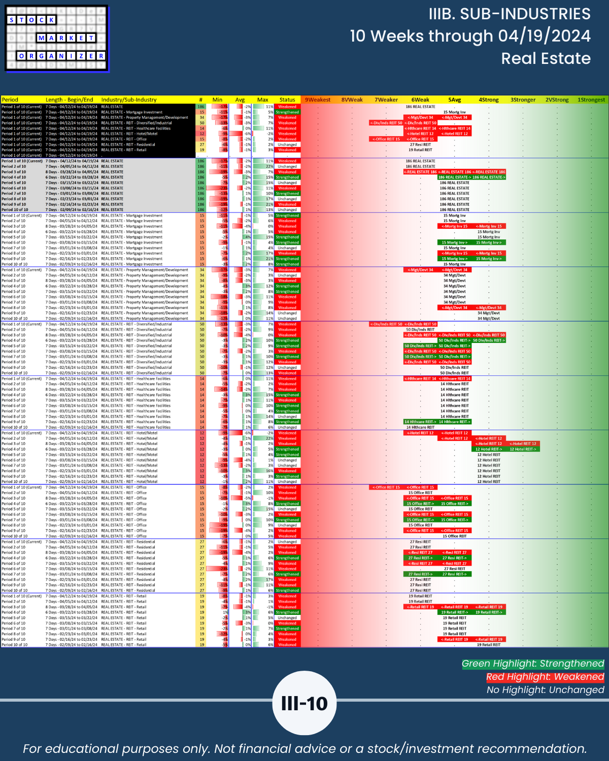 IIIB. SUB-INDUSTRIES 10-Week Strengthening/Weakening