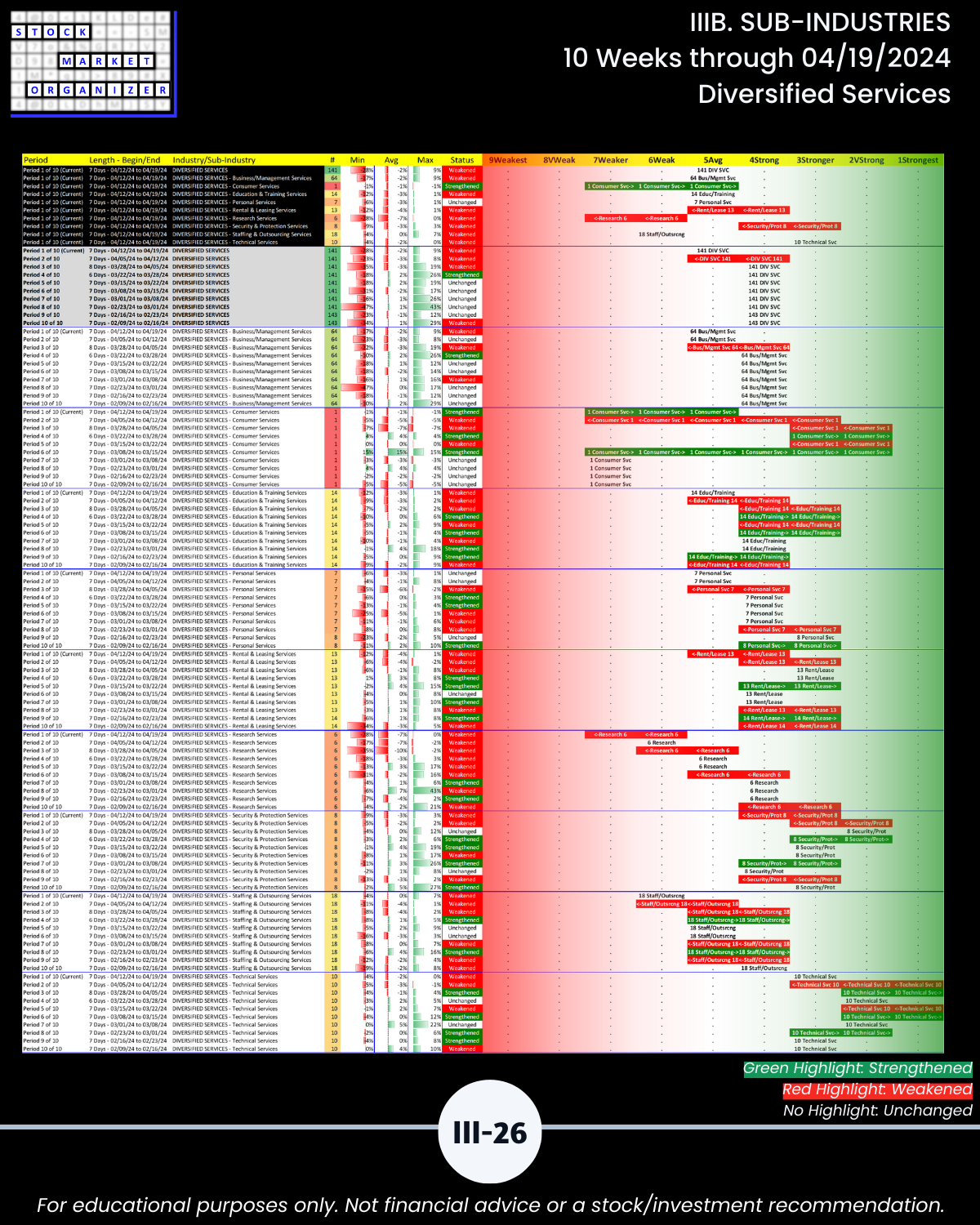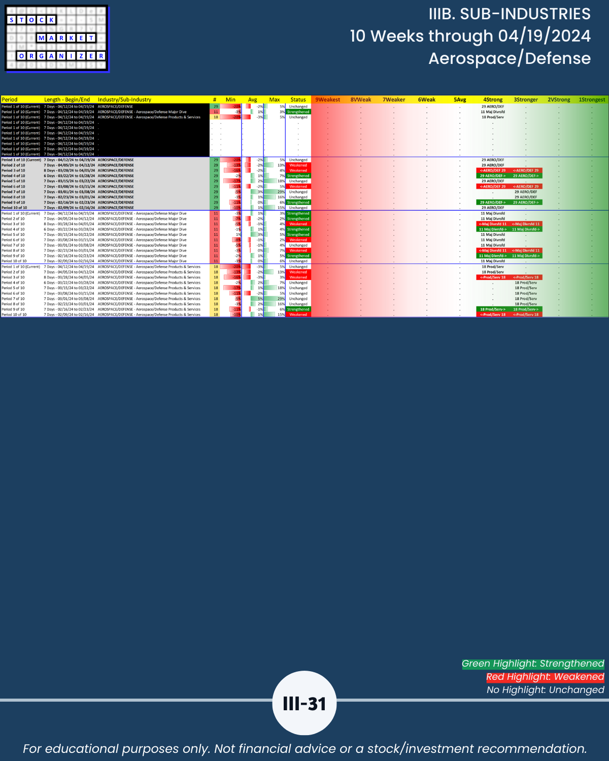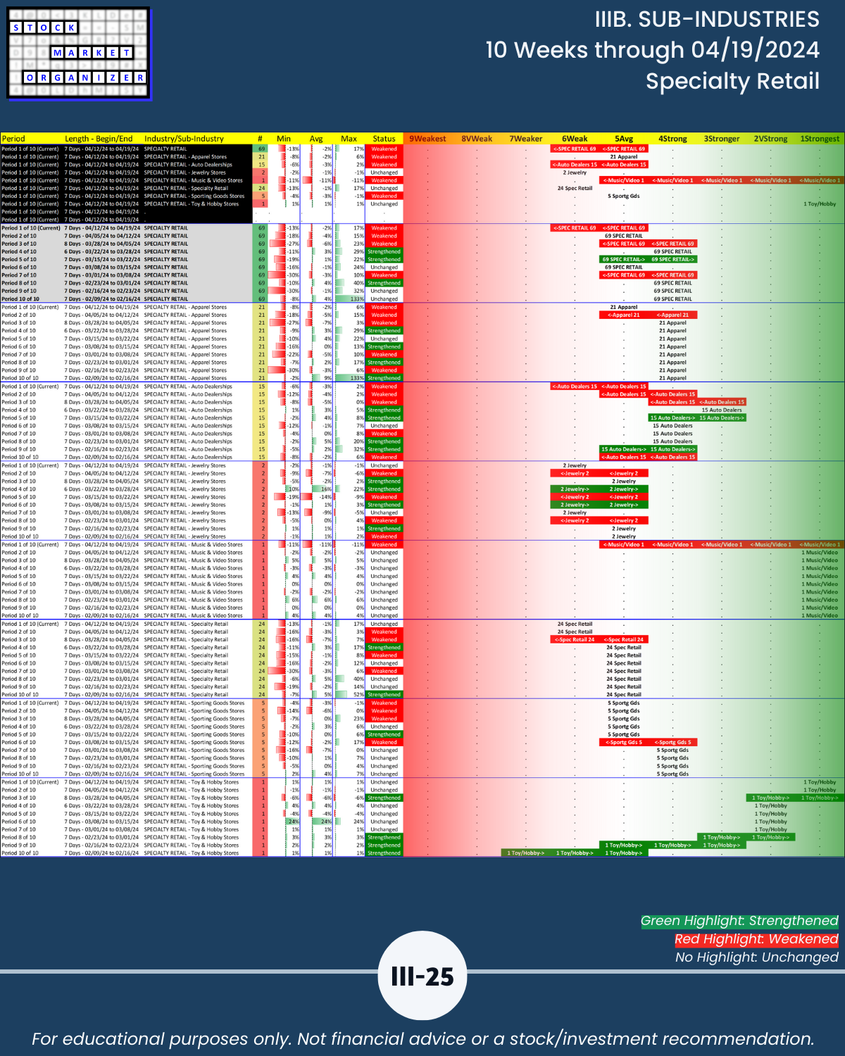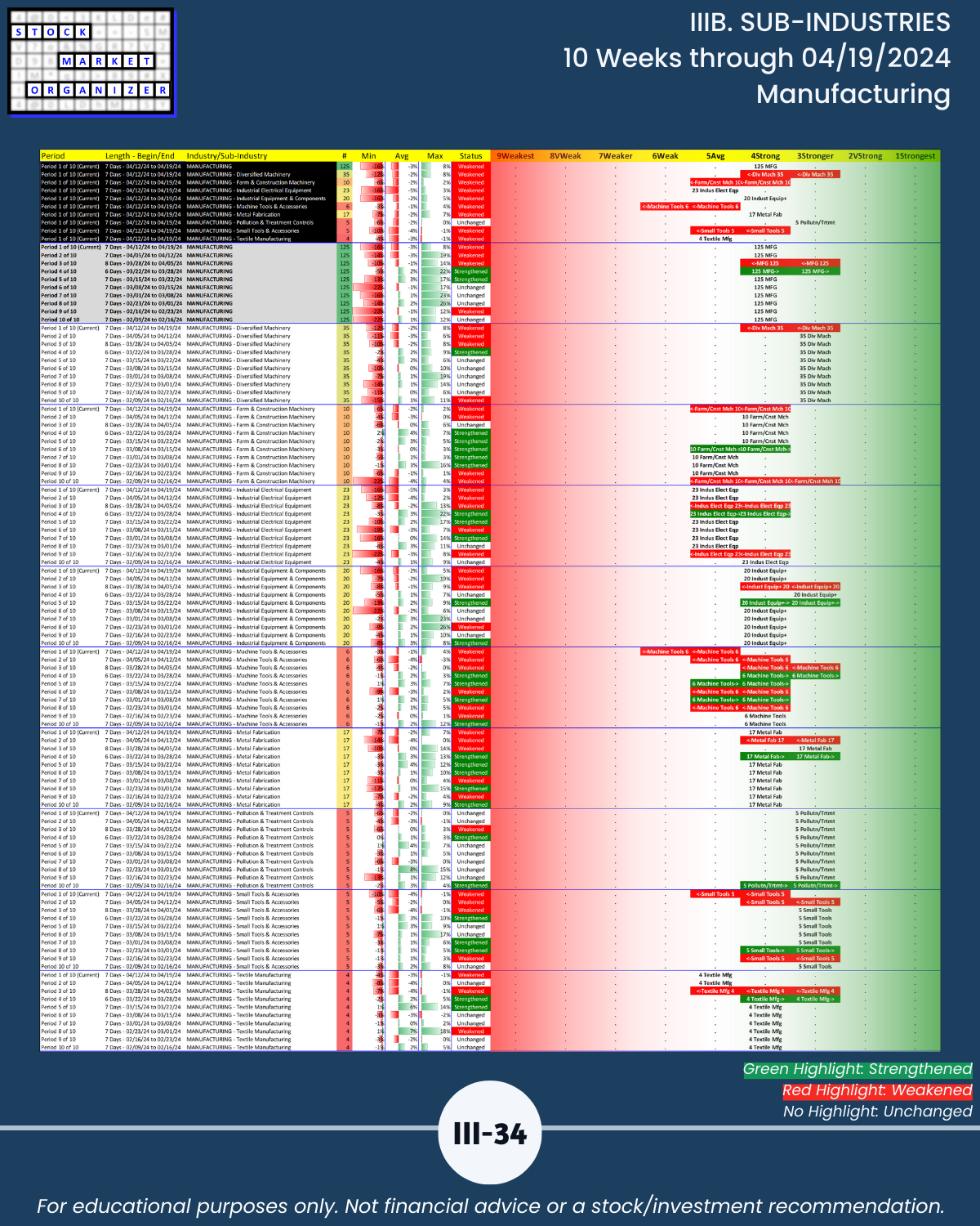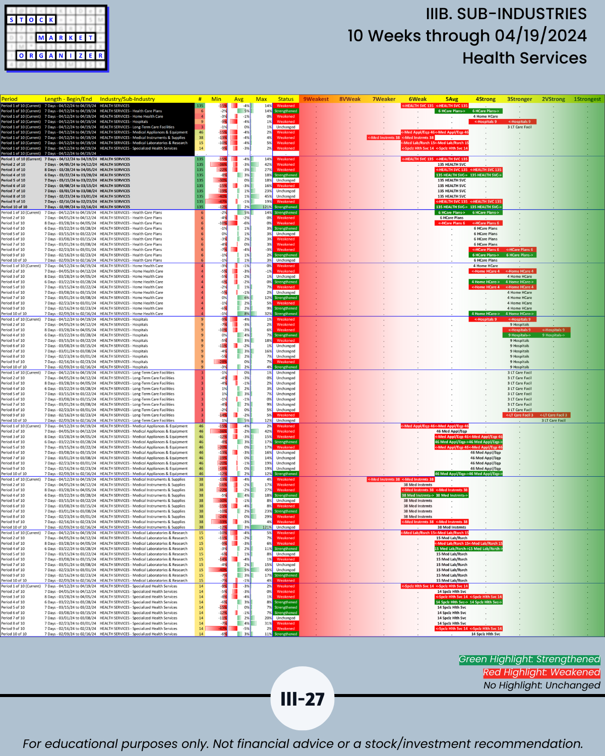 IIIB. SUB-INDUSTRIES 10-Week Strengthening/Weakening