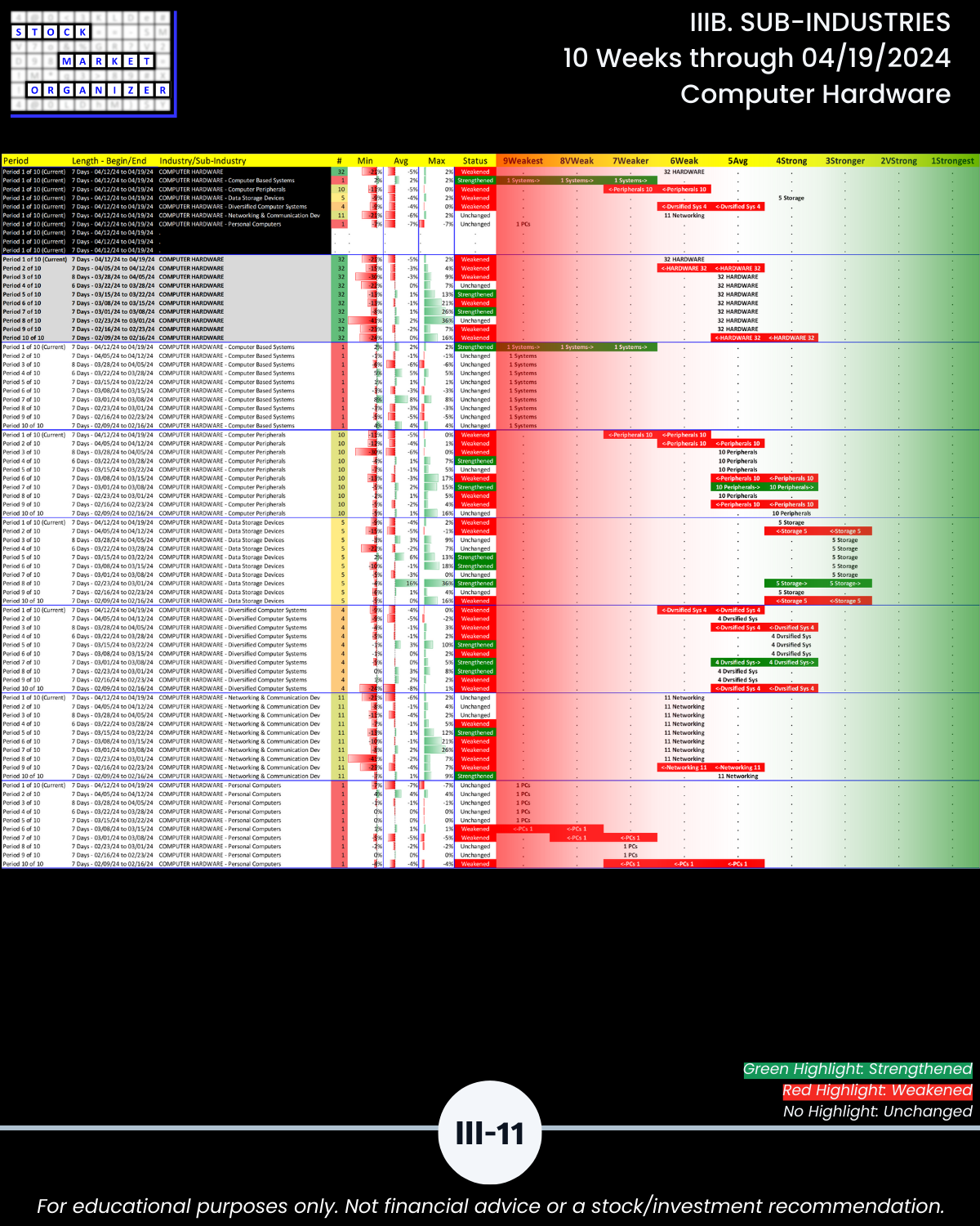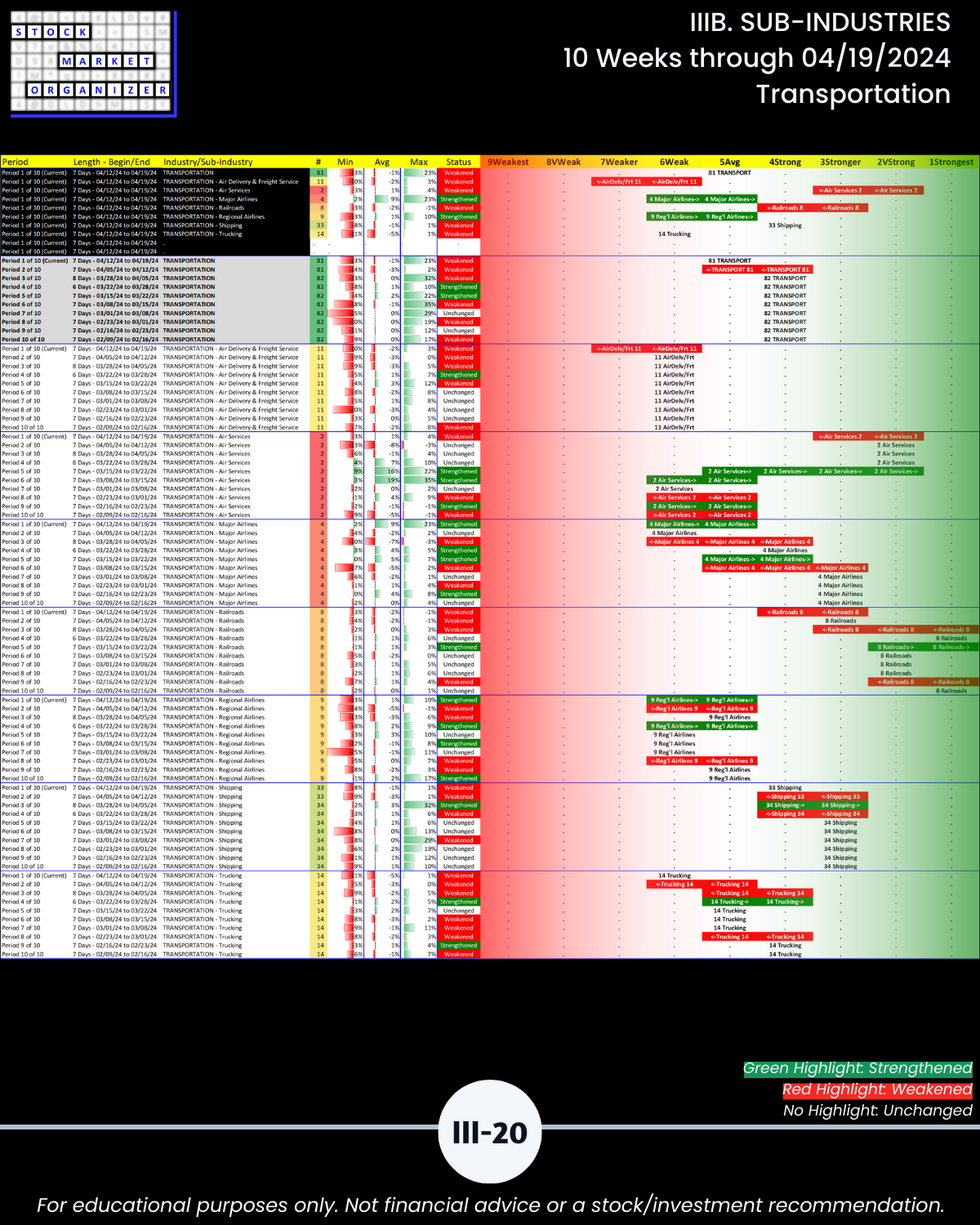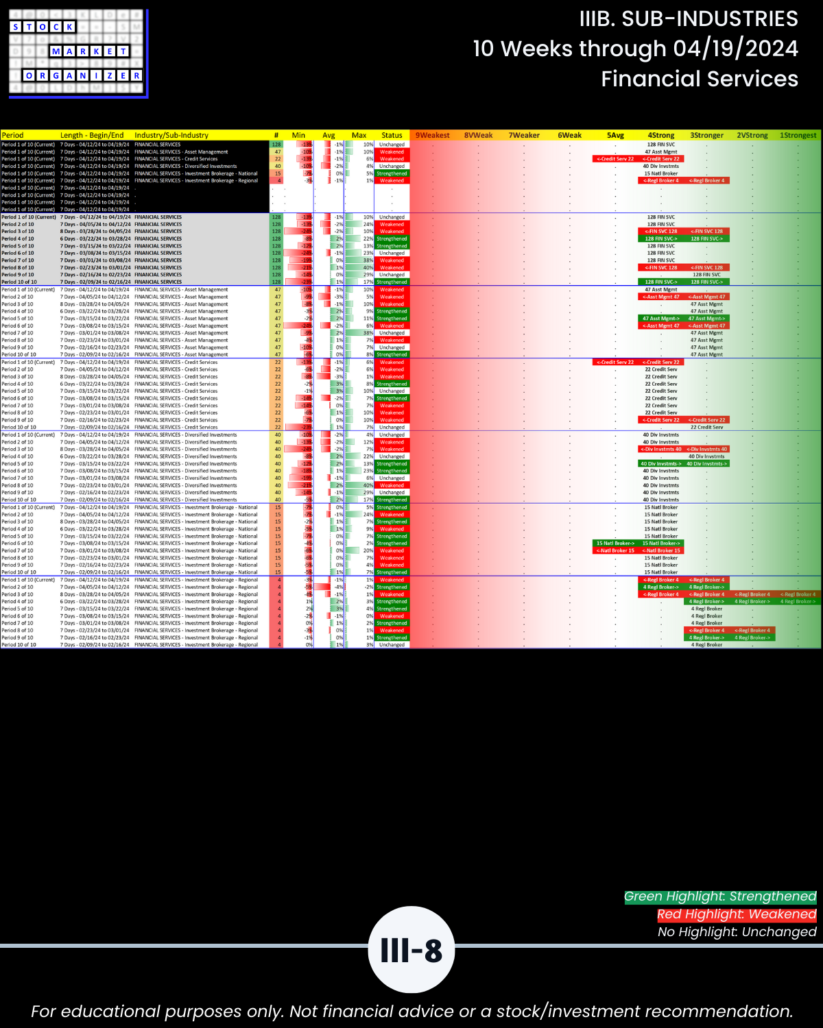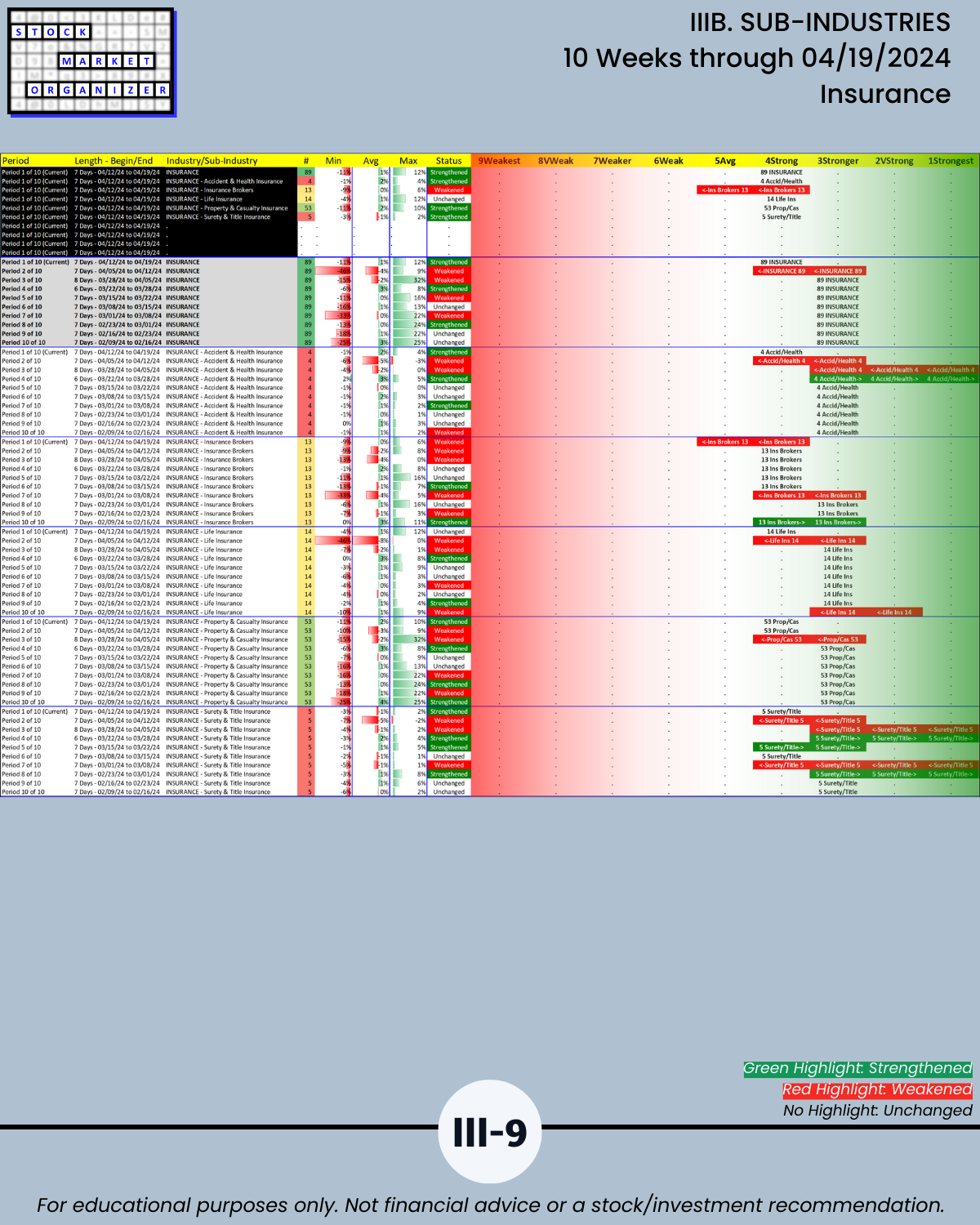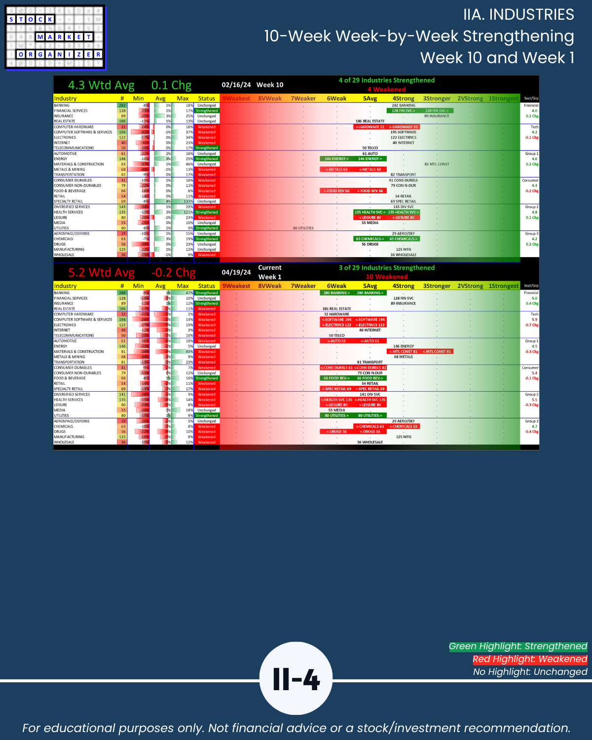 IIIB. SUB-INDUSTRIES 10-Week Strengthening/Weakening