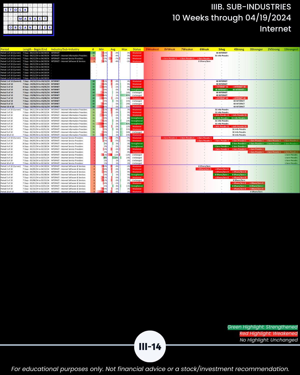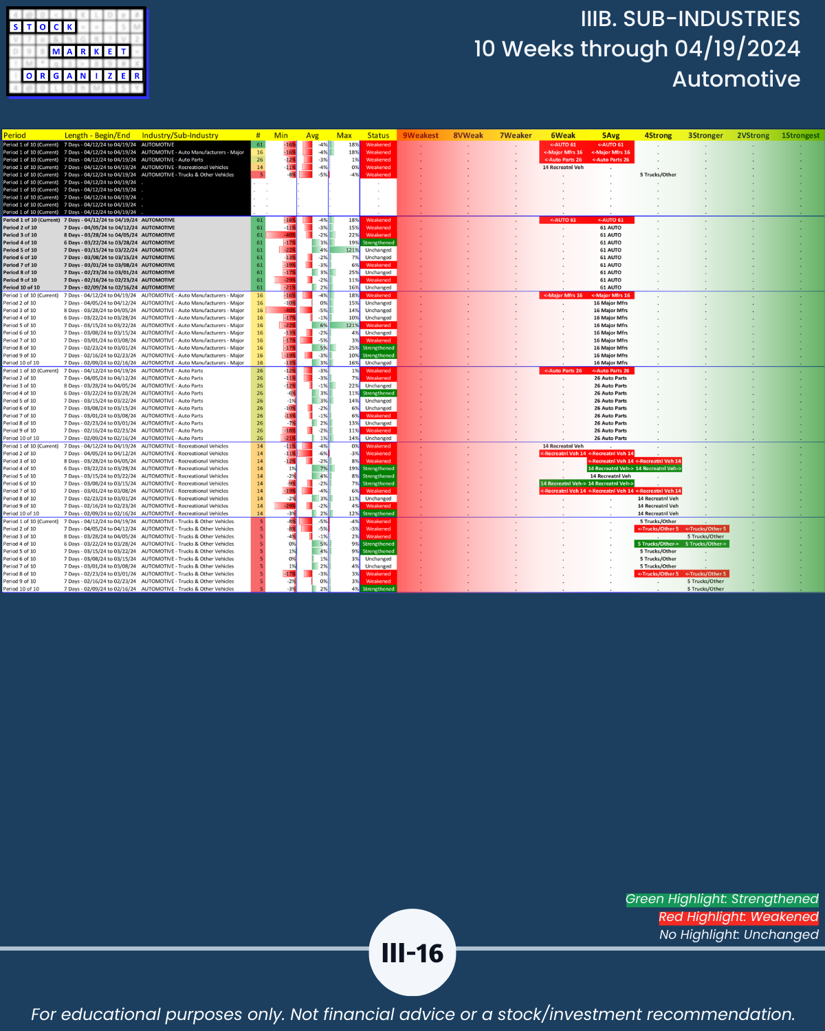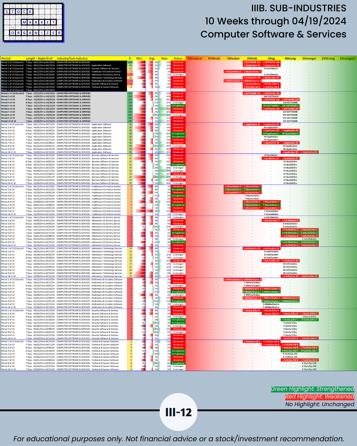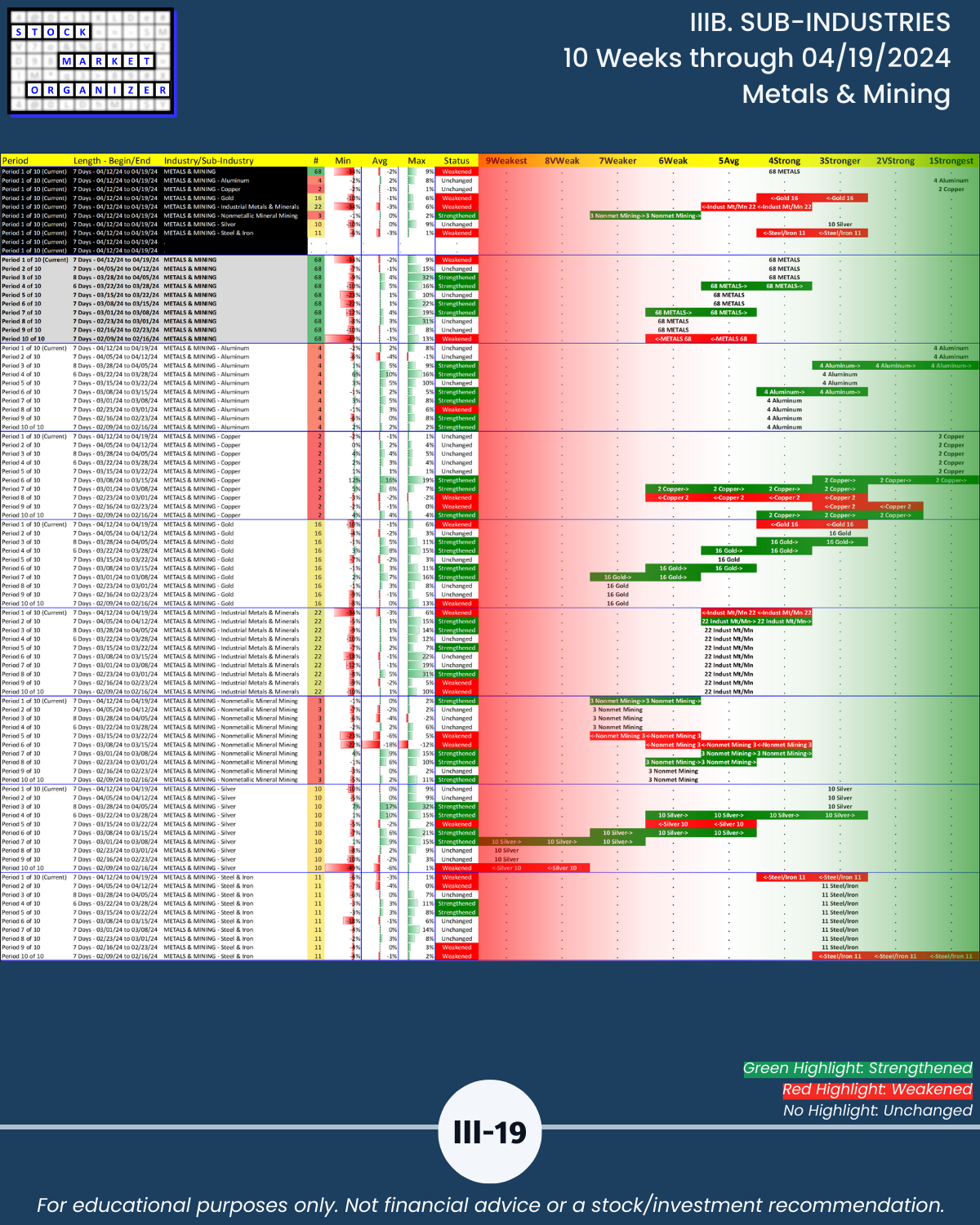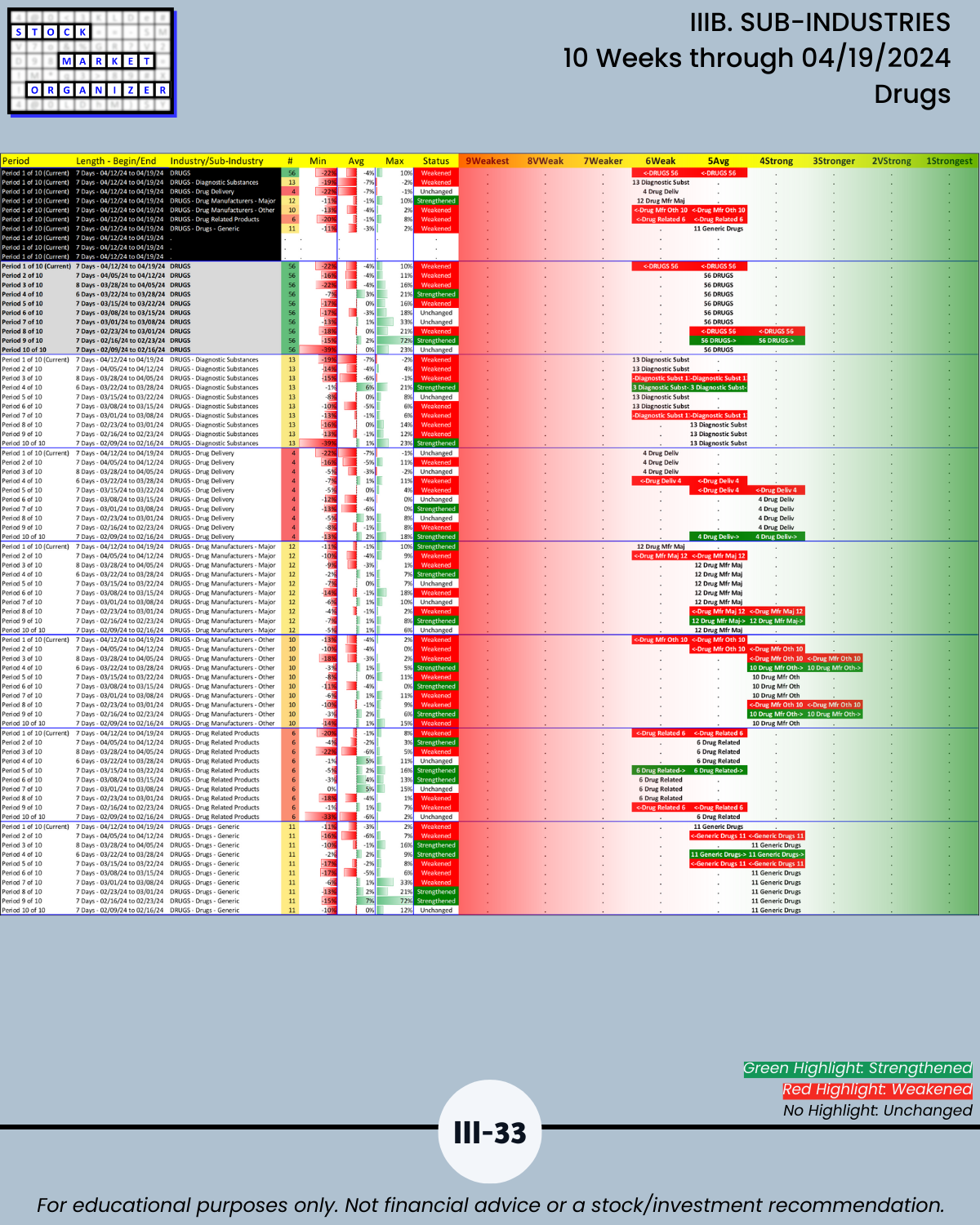 IIIB. SUB-INDUSTRIES 10-Week Strengthening/Weakening