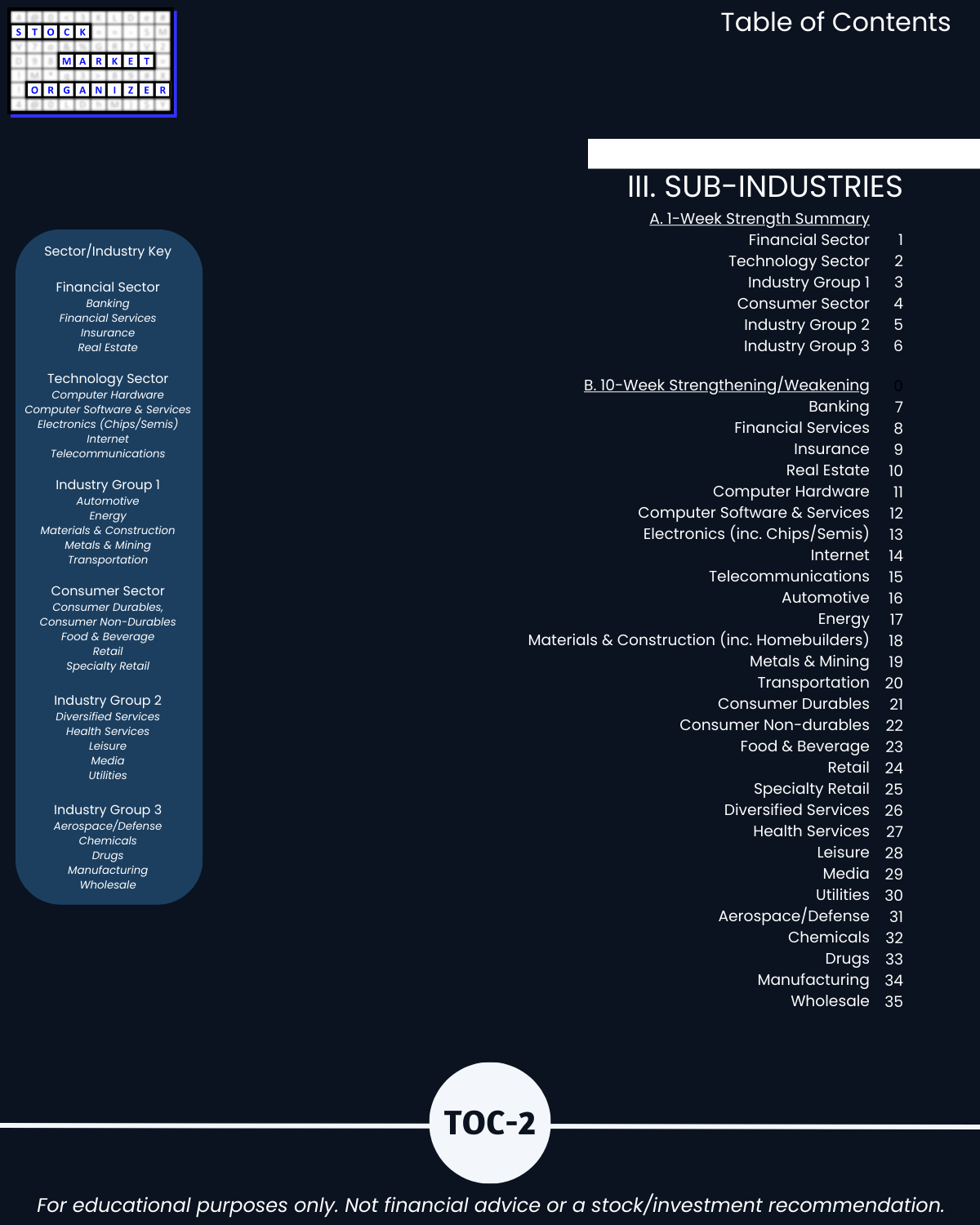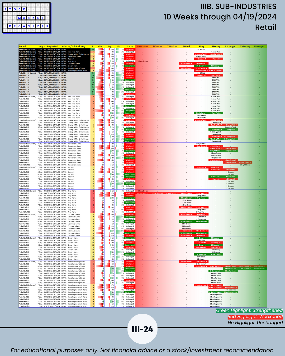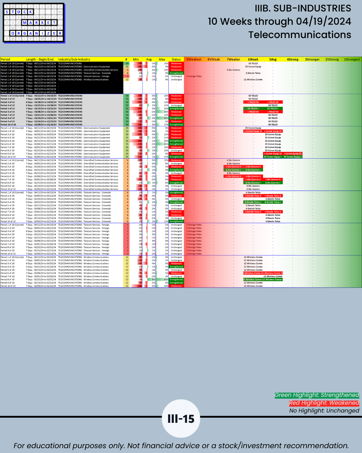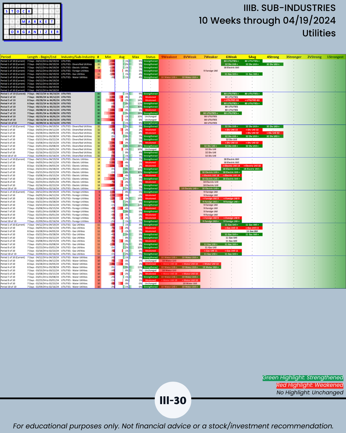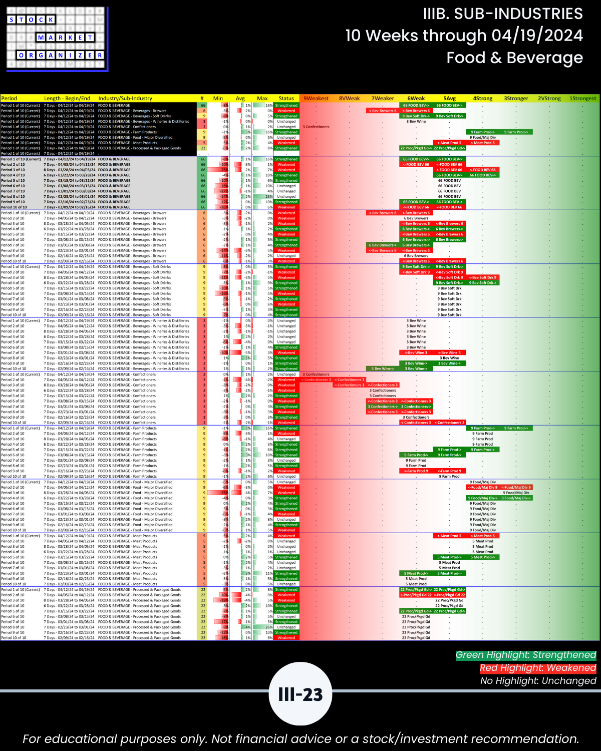 IIIB. SUB-INDUSTRIES 10-Week Strengthening/Weakening