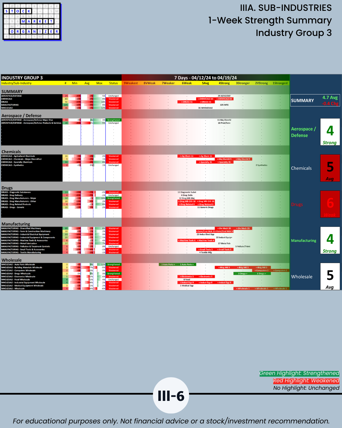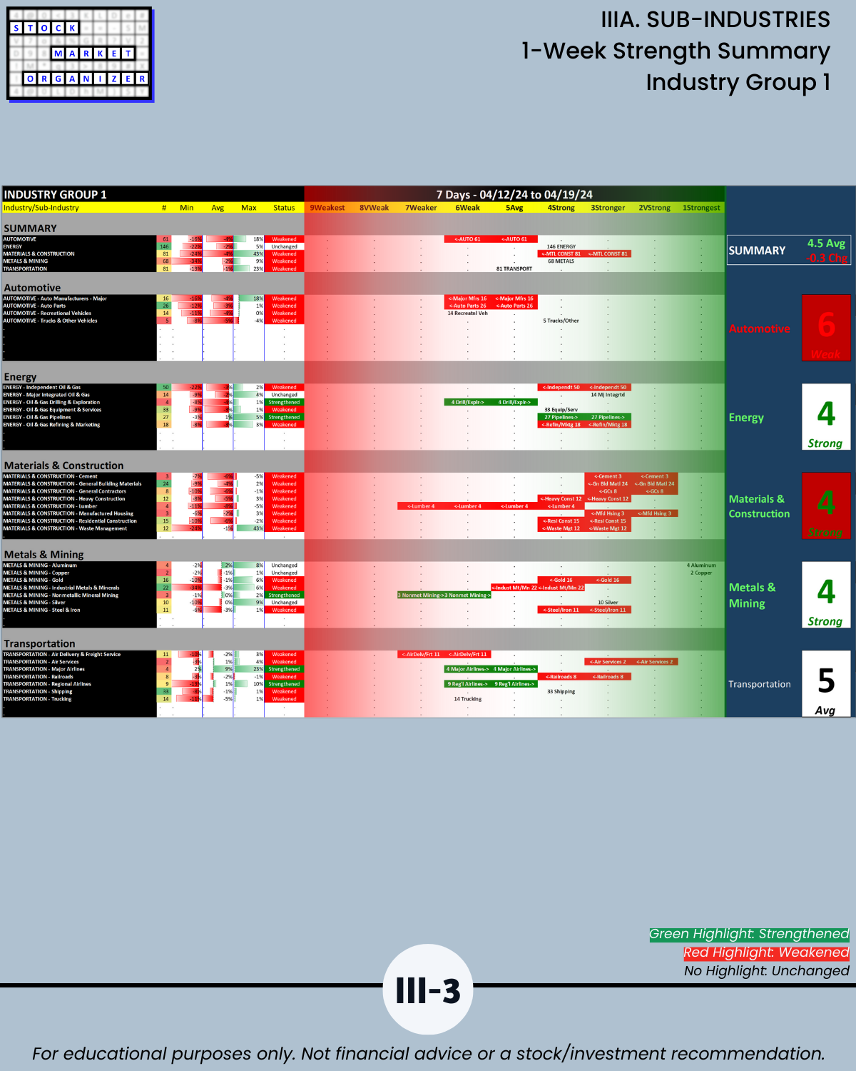 IIIA. SUB-INDUSTRIES 1-Week Strength Summary