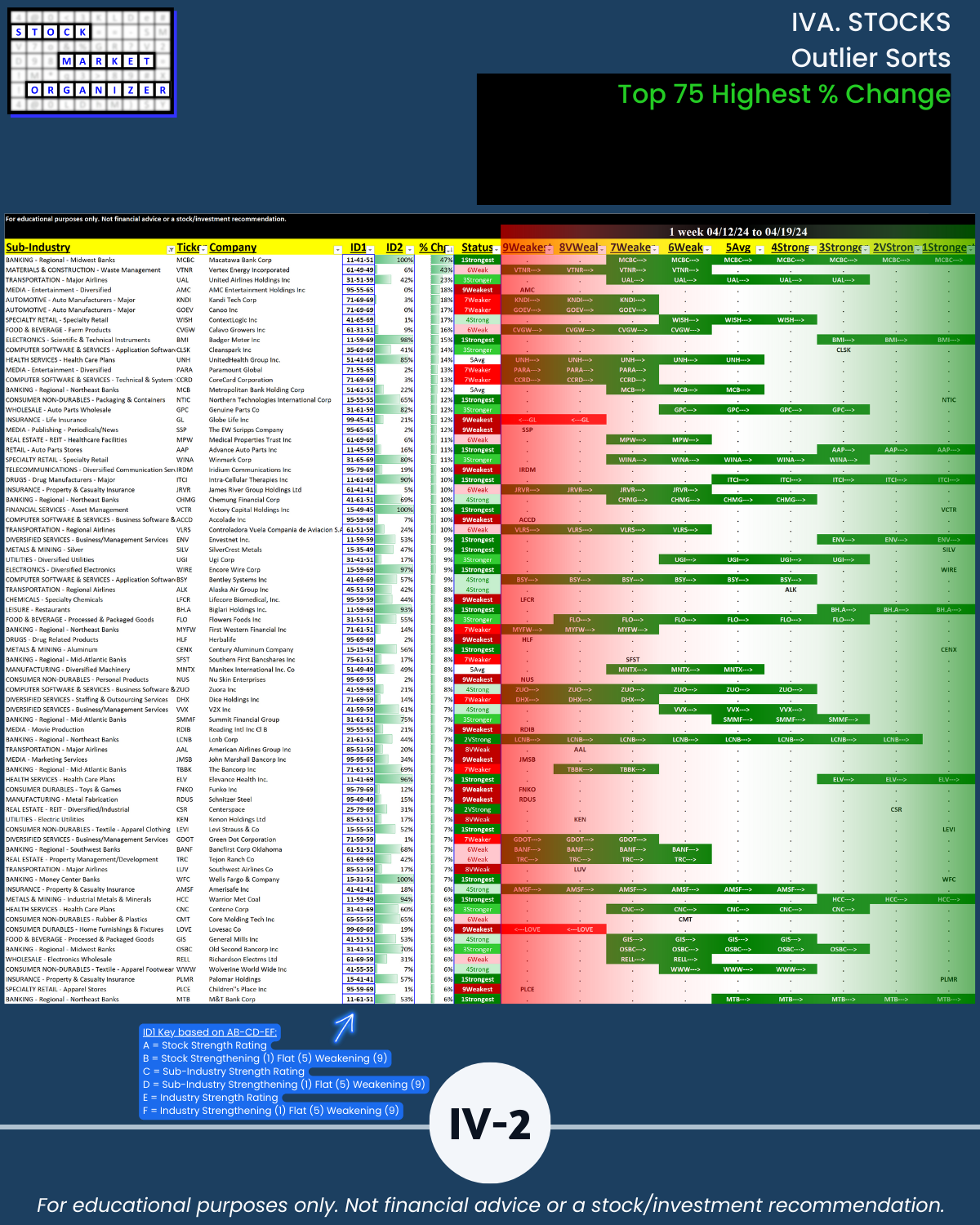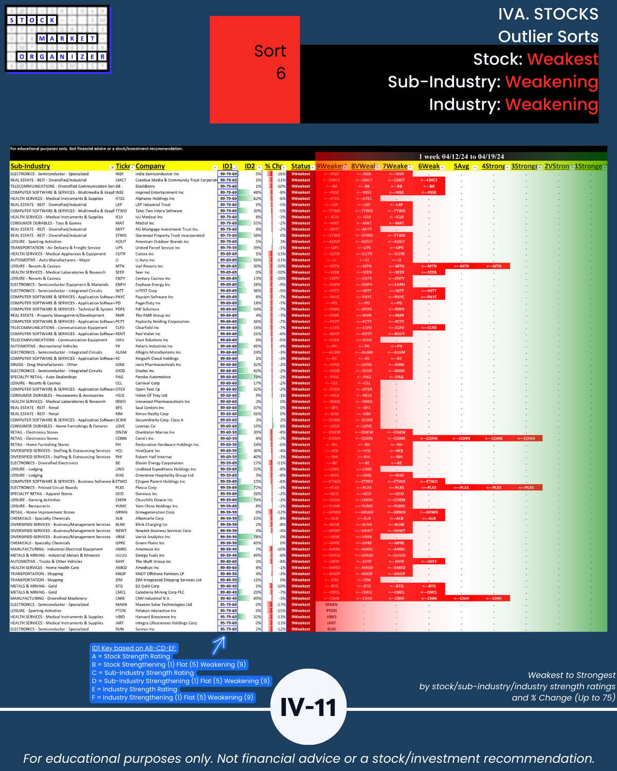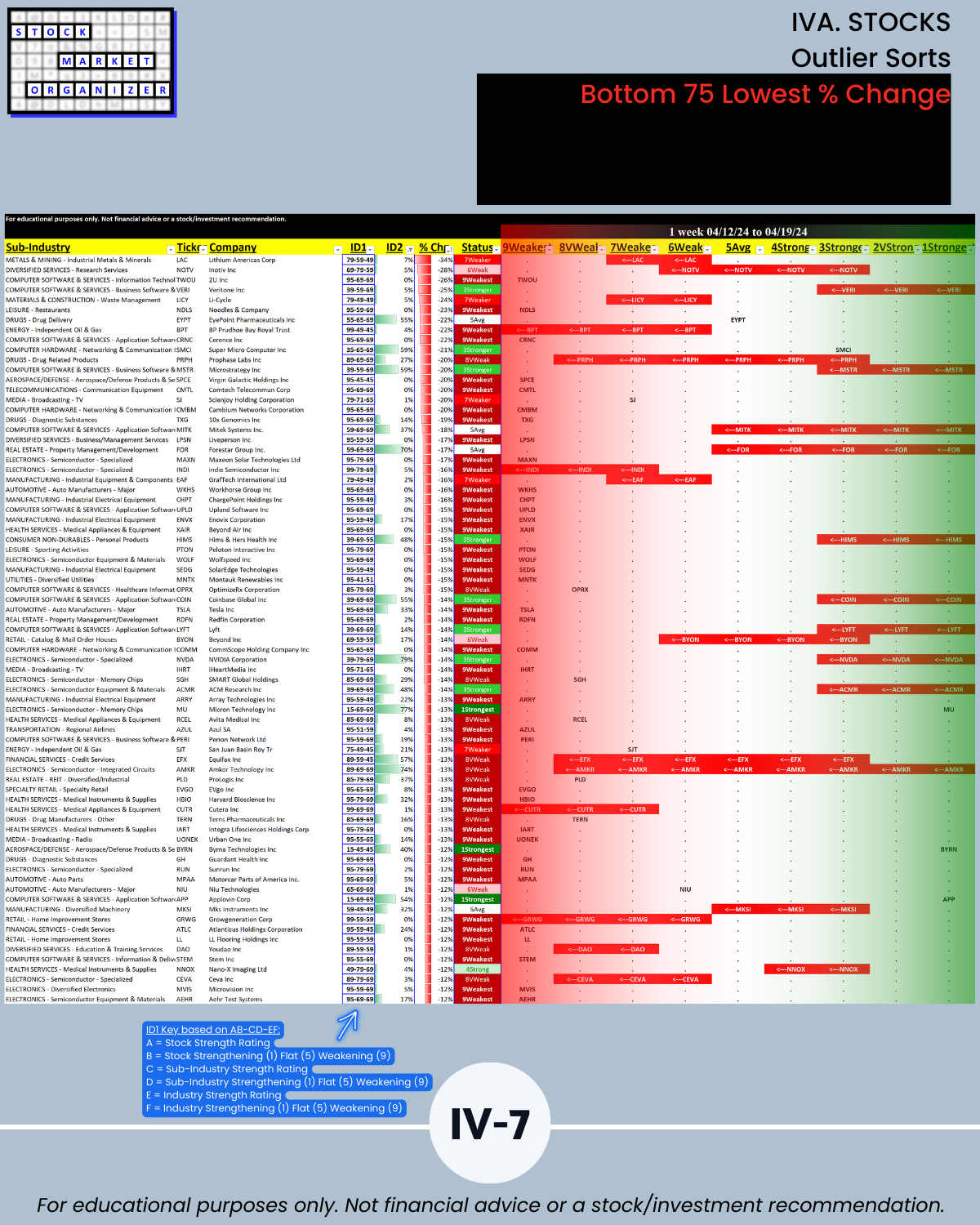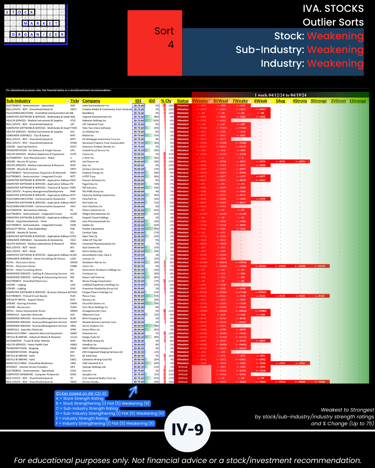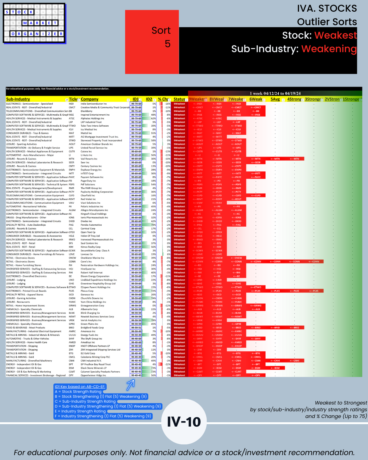 πΉ Stocks rated Weakest 34% to 46% (SAME AS last week 36% to 45%)