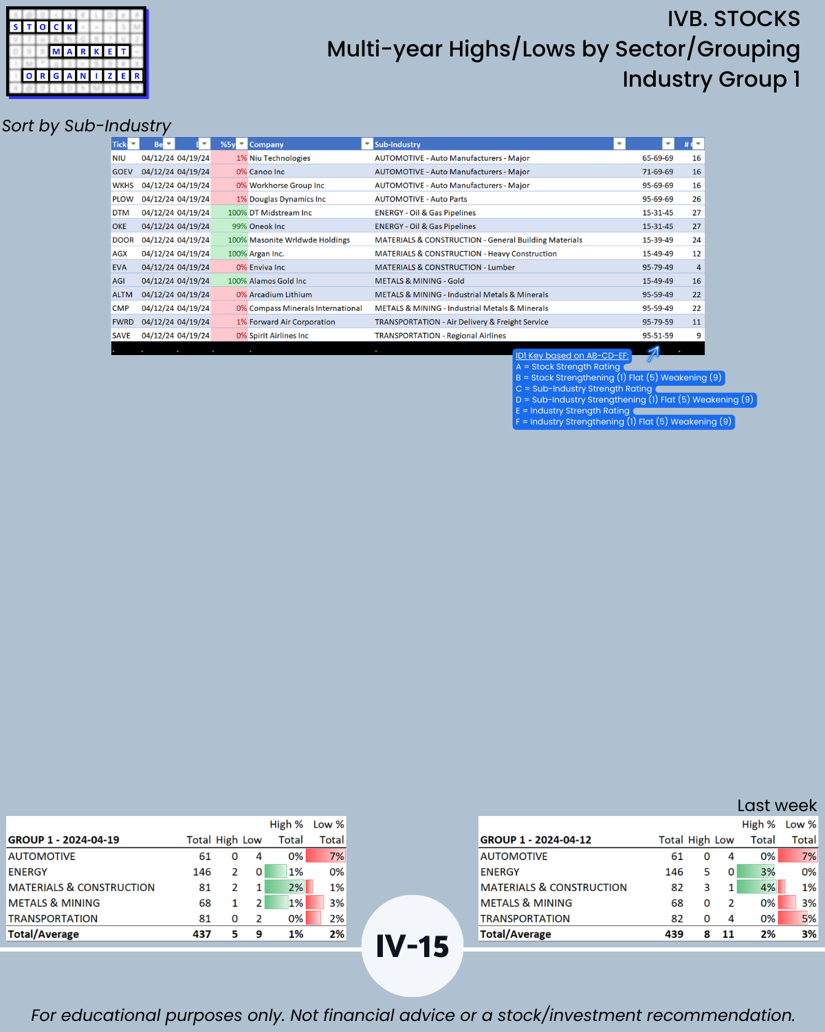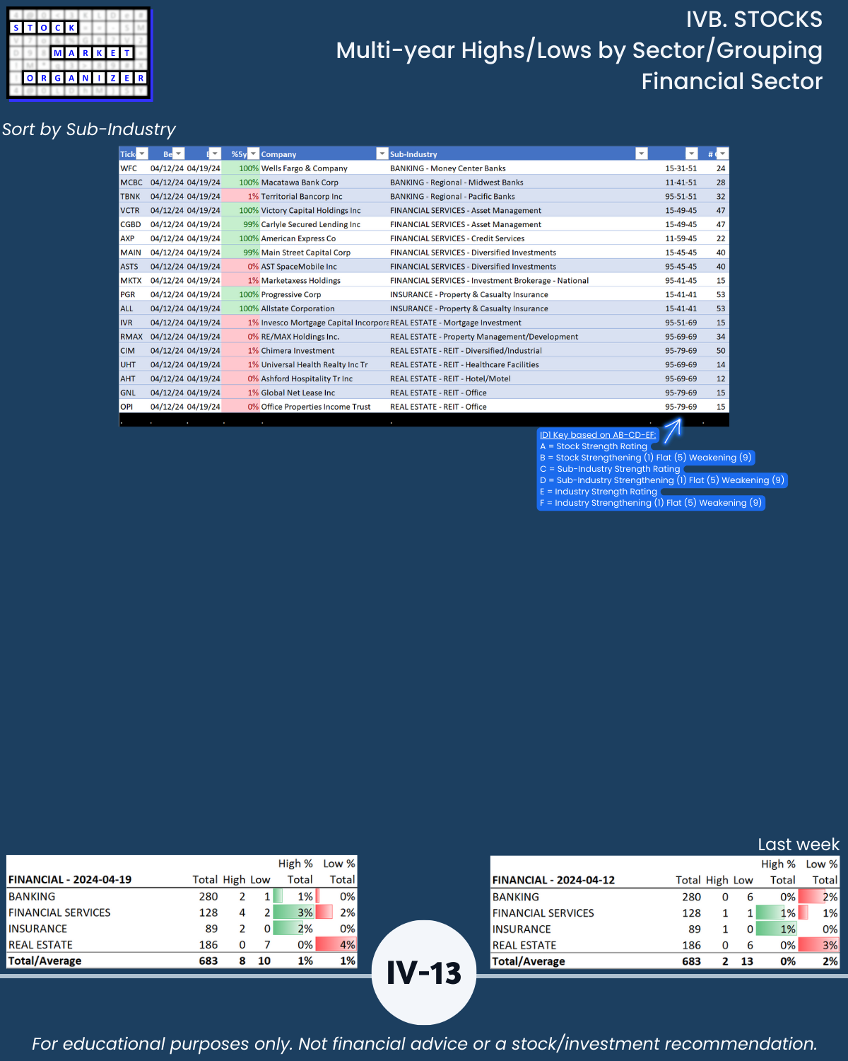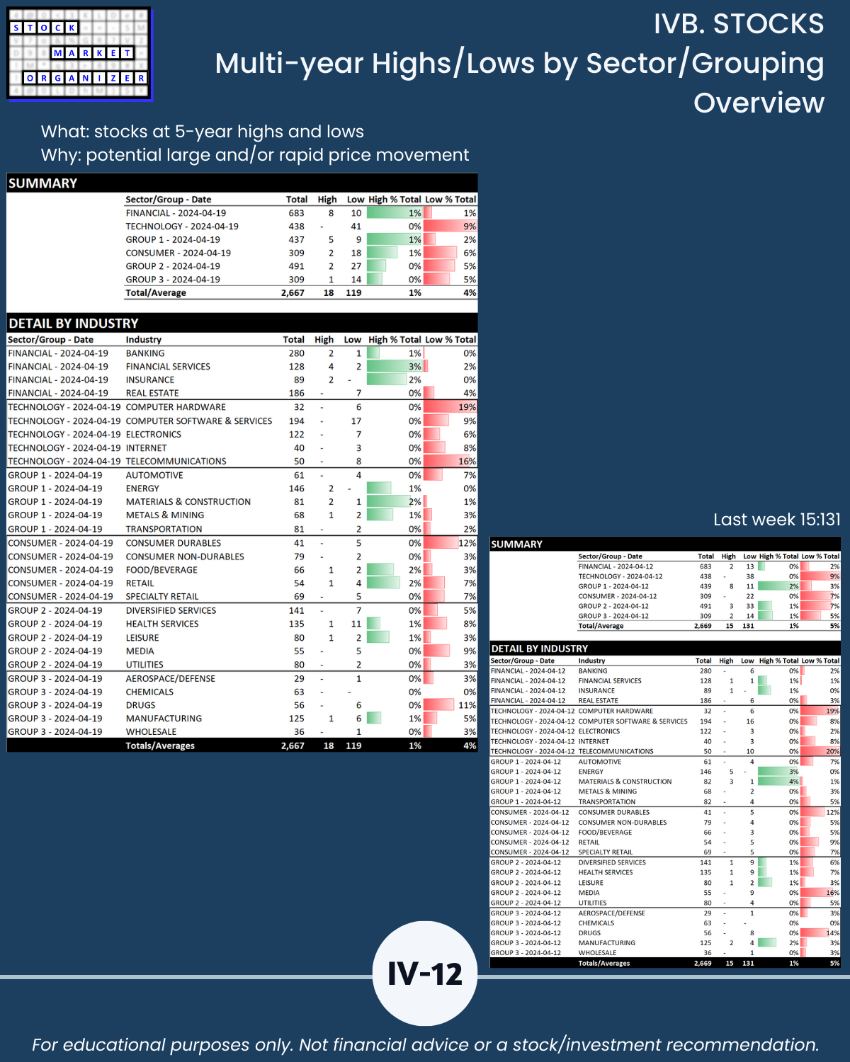 IVB. STOCKS Multi-Year Highs/Lows by Sector/Grouping