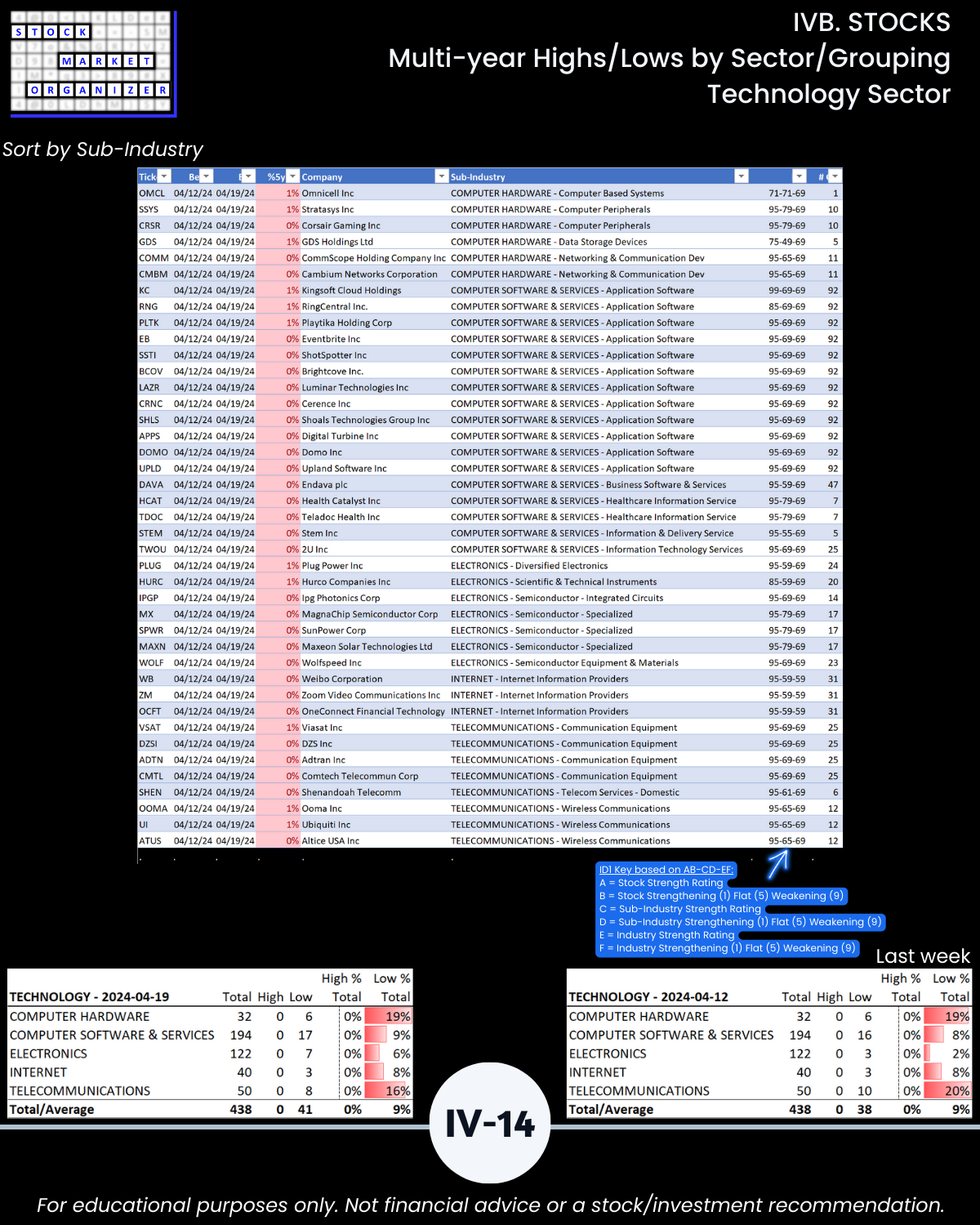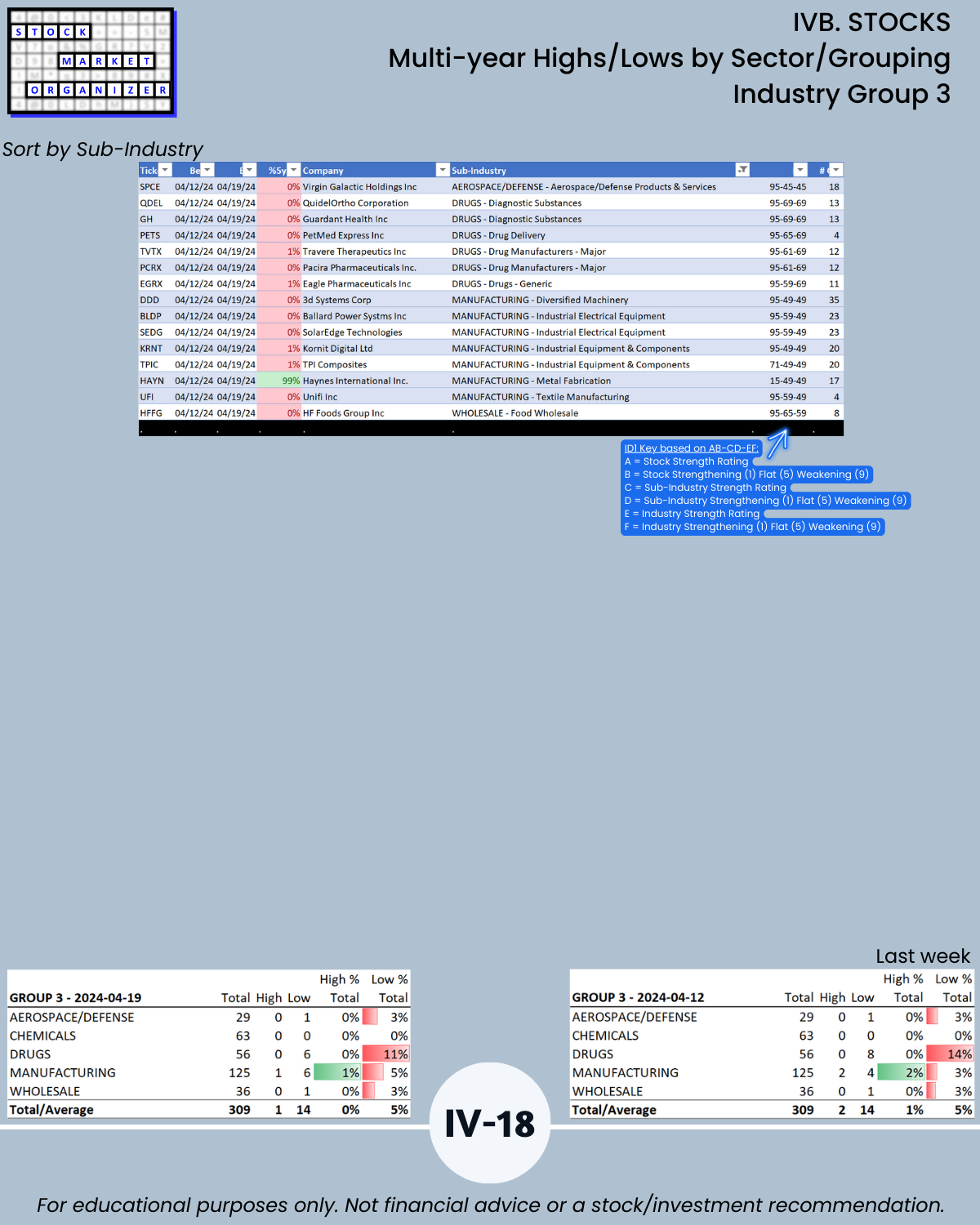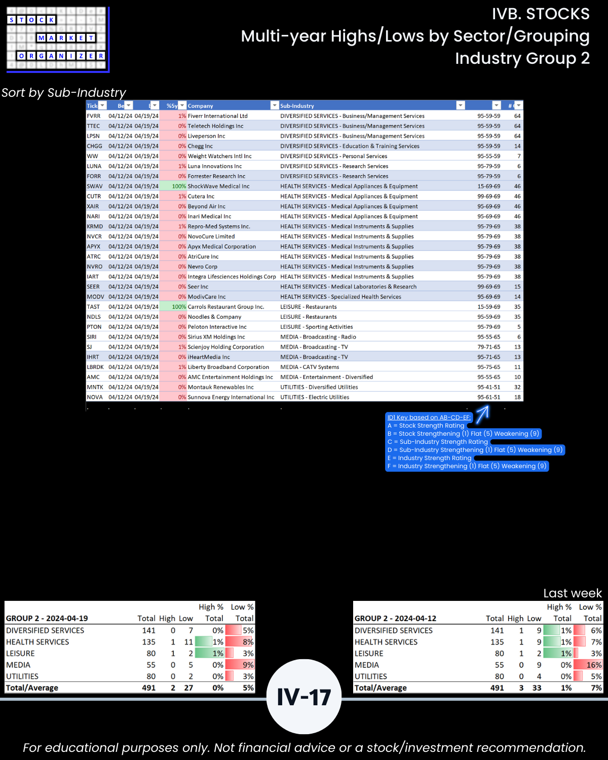 IVB. STOCKS Multi-Year Highs/Lows by Sector/Grouping