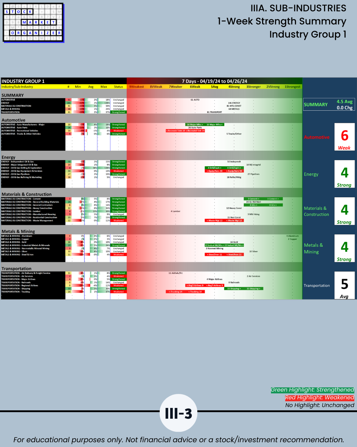 IIIA. SUB-INDUSTRIES 1-Week Strength Summary