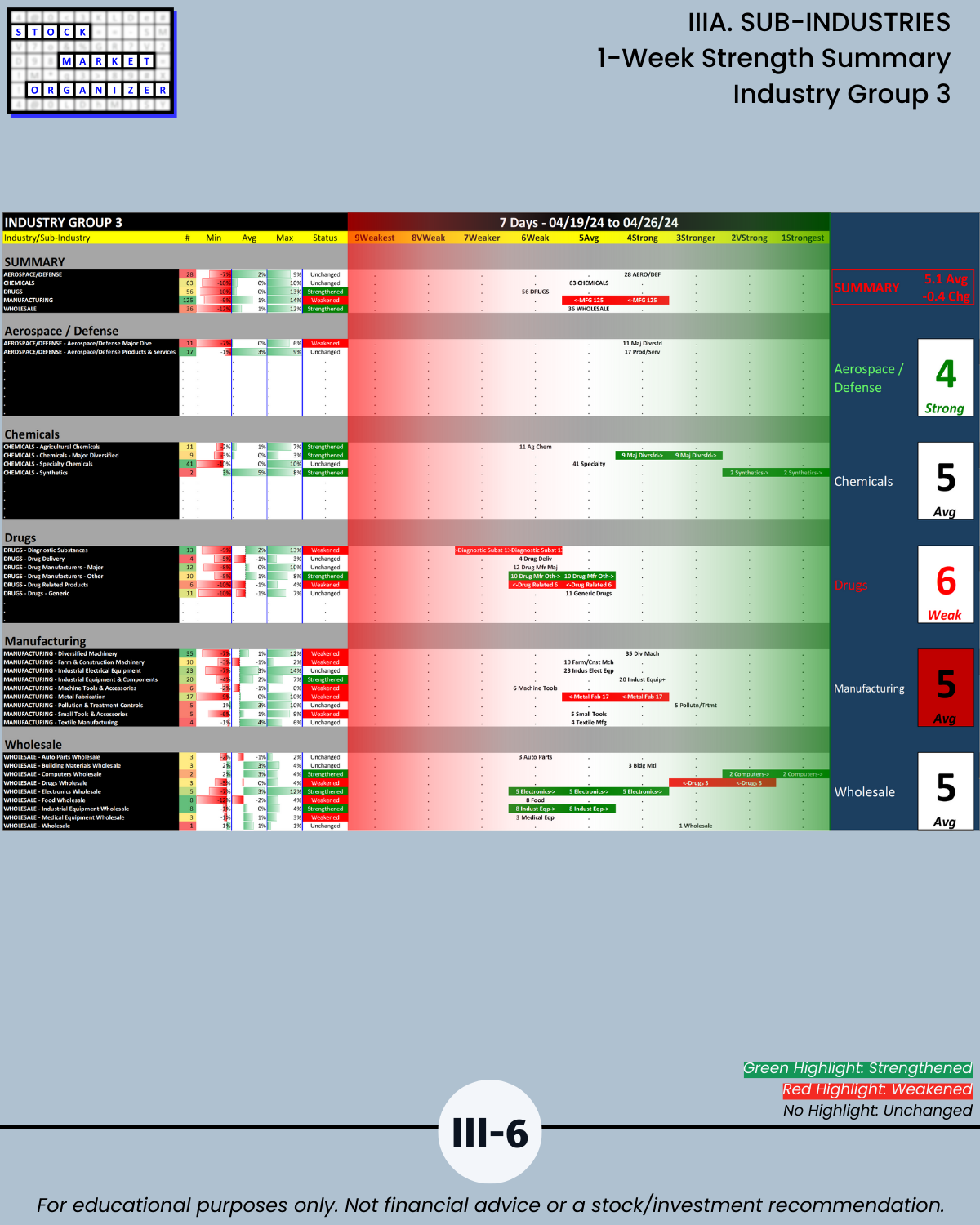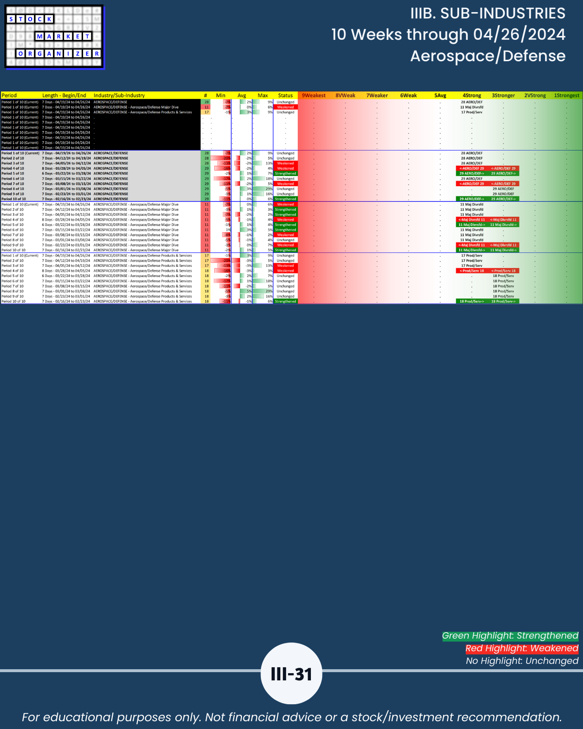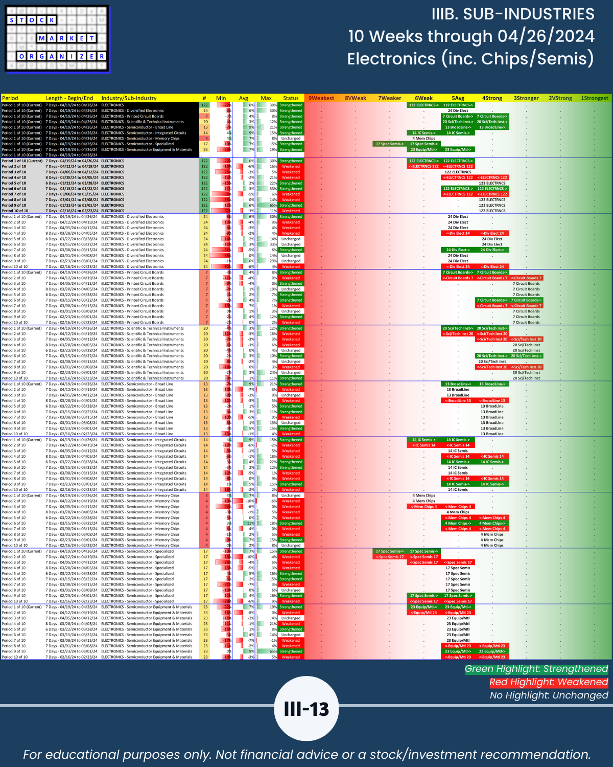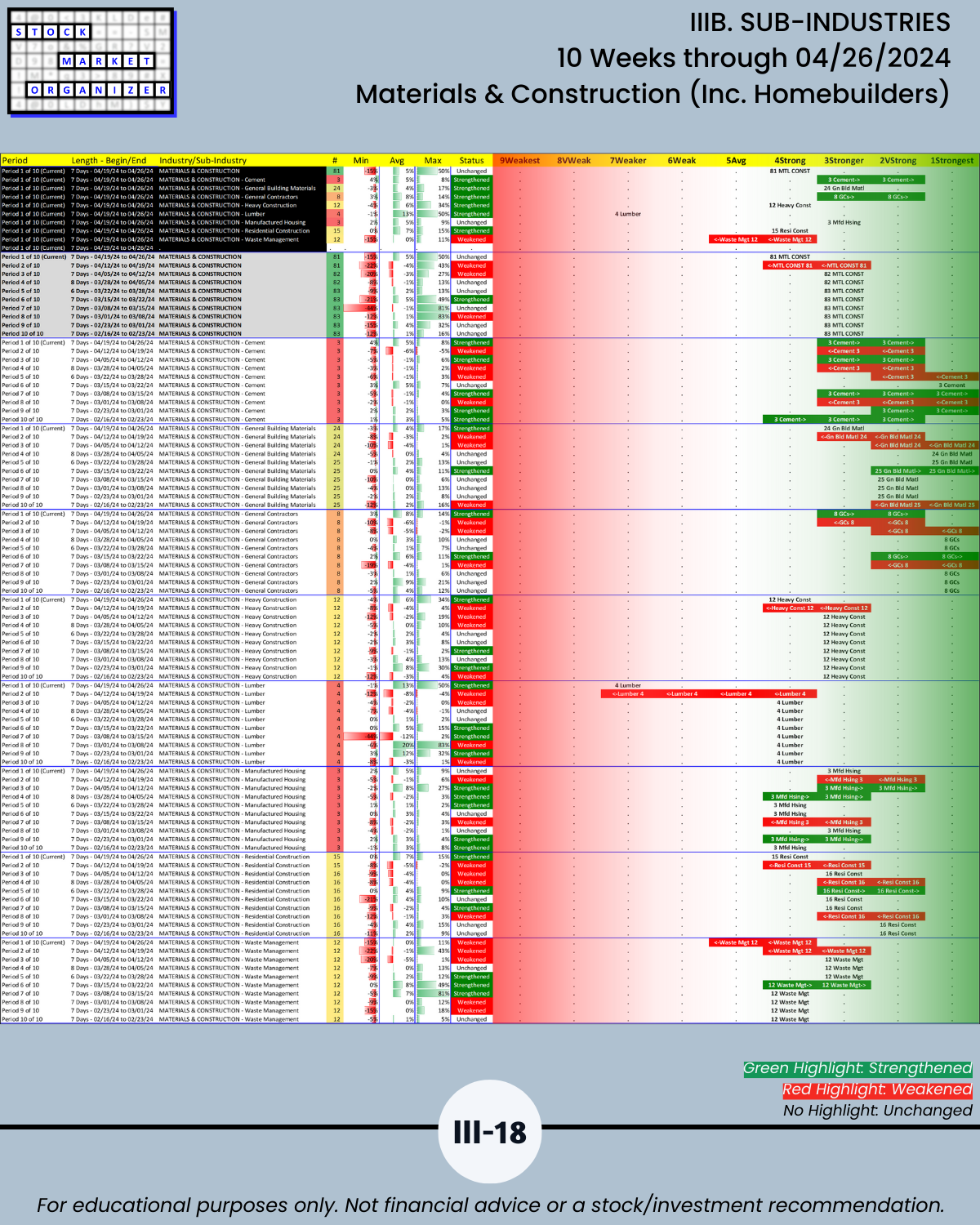 IIIB. SUB-INDUSTRIES 10-Week Strengthening/Weakening