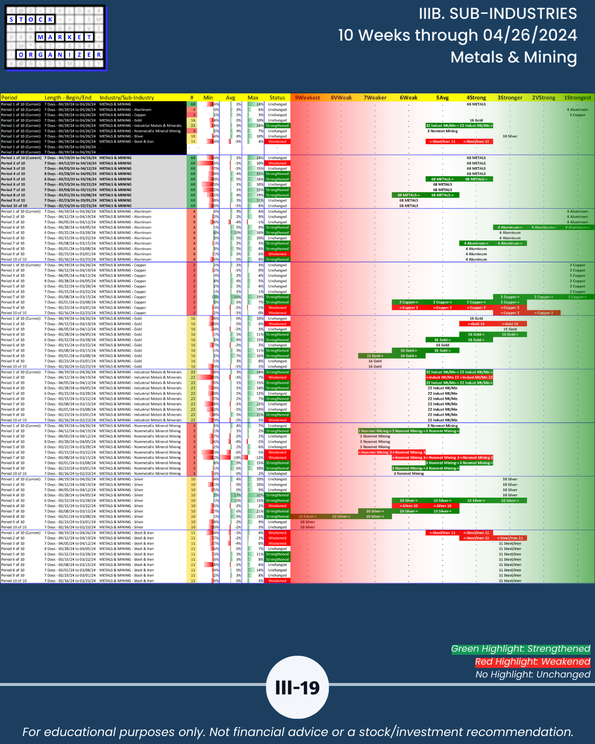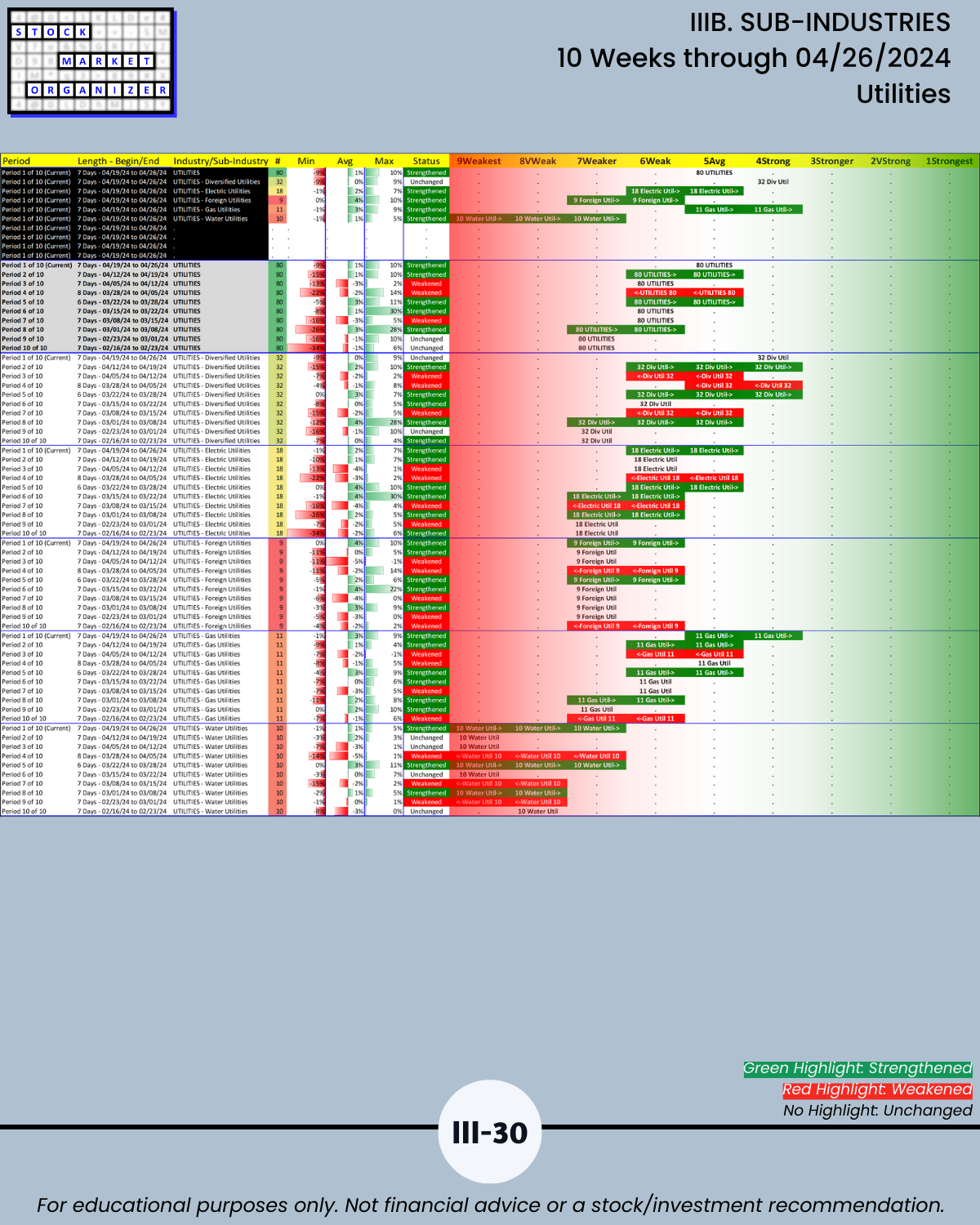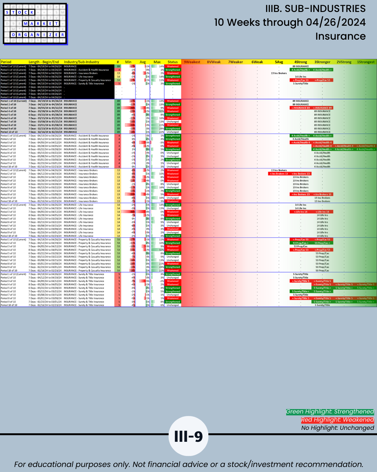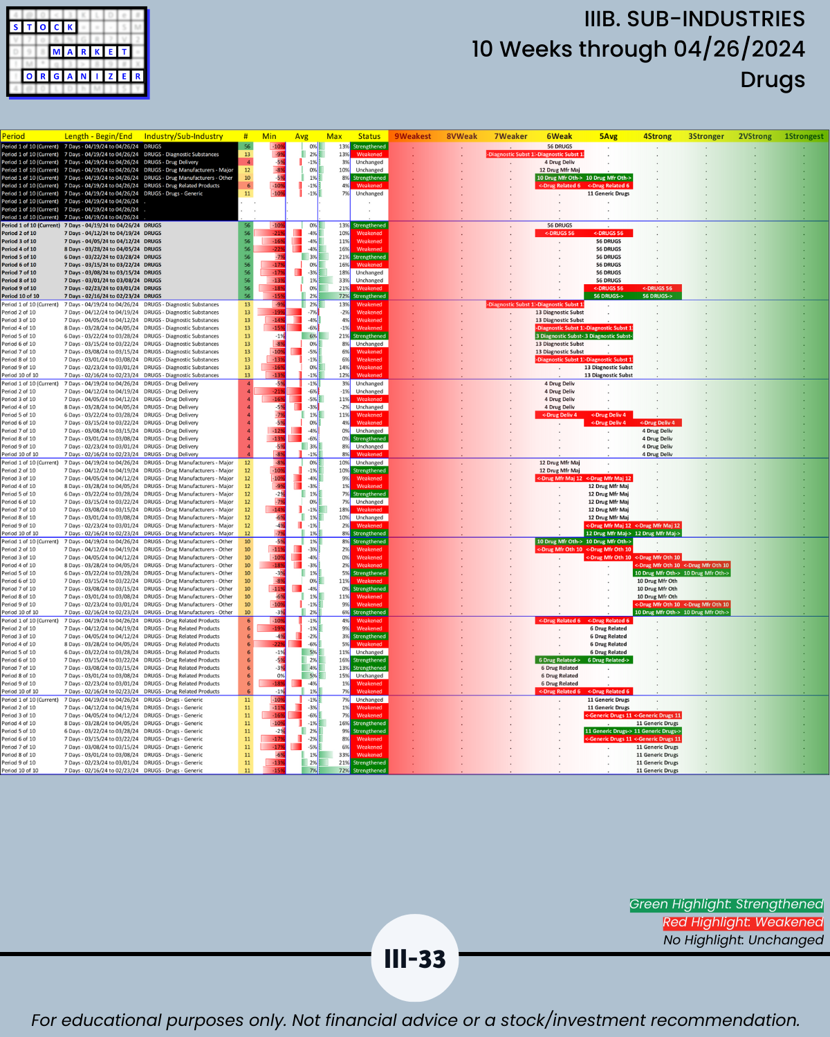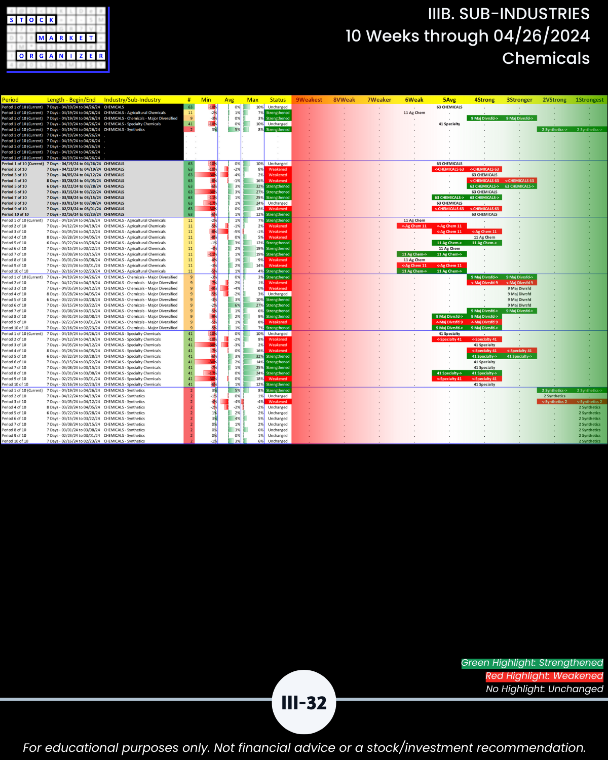 IIIB. SUB-INDUSTRIES 10-Week Strengthening/Weakening